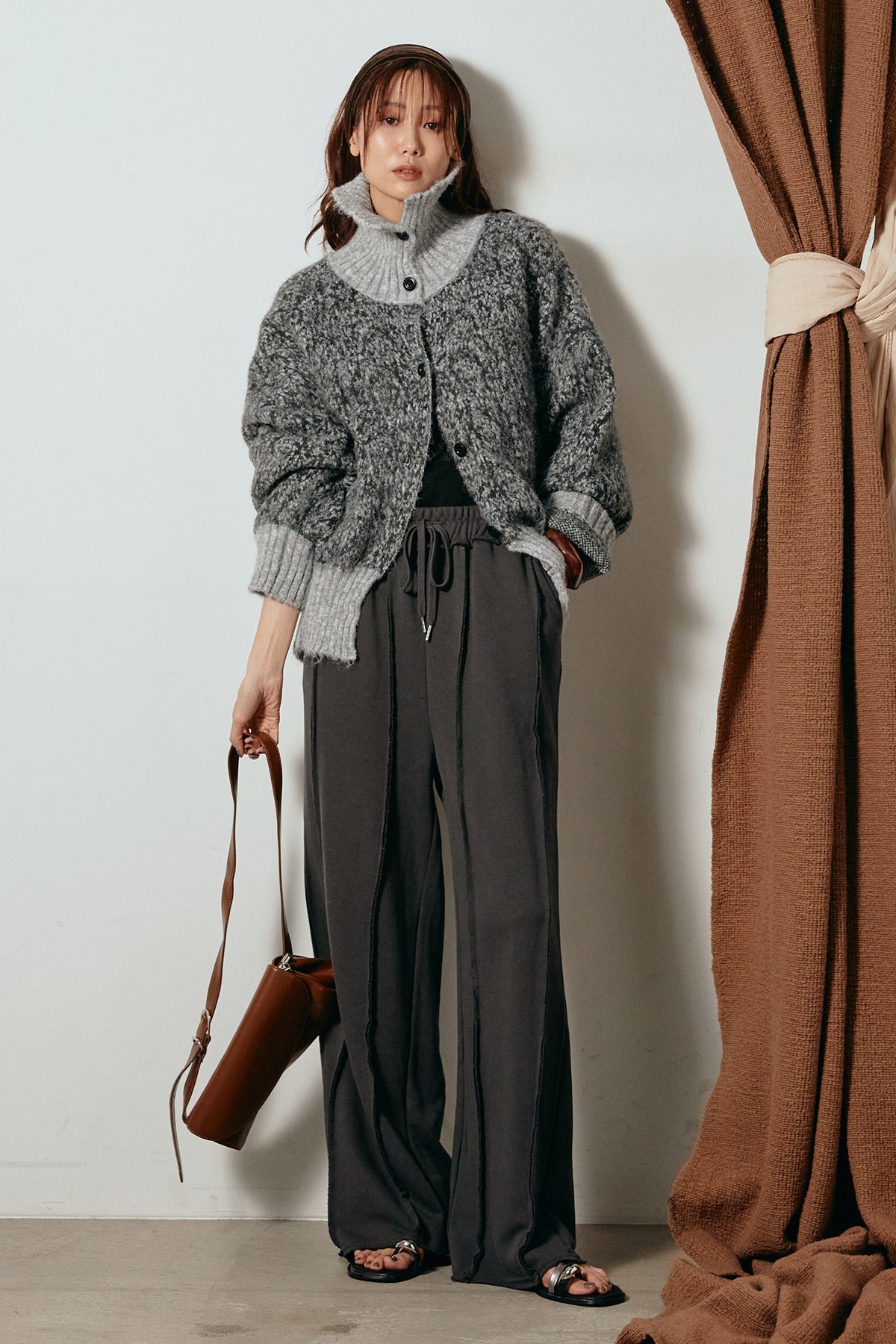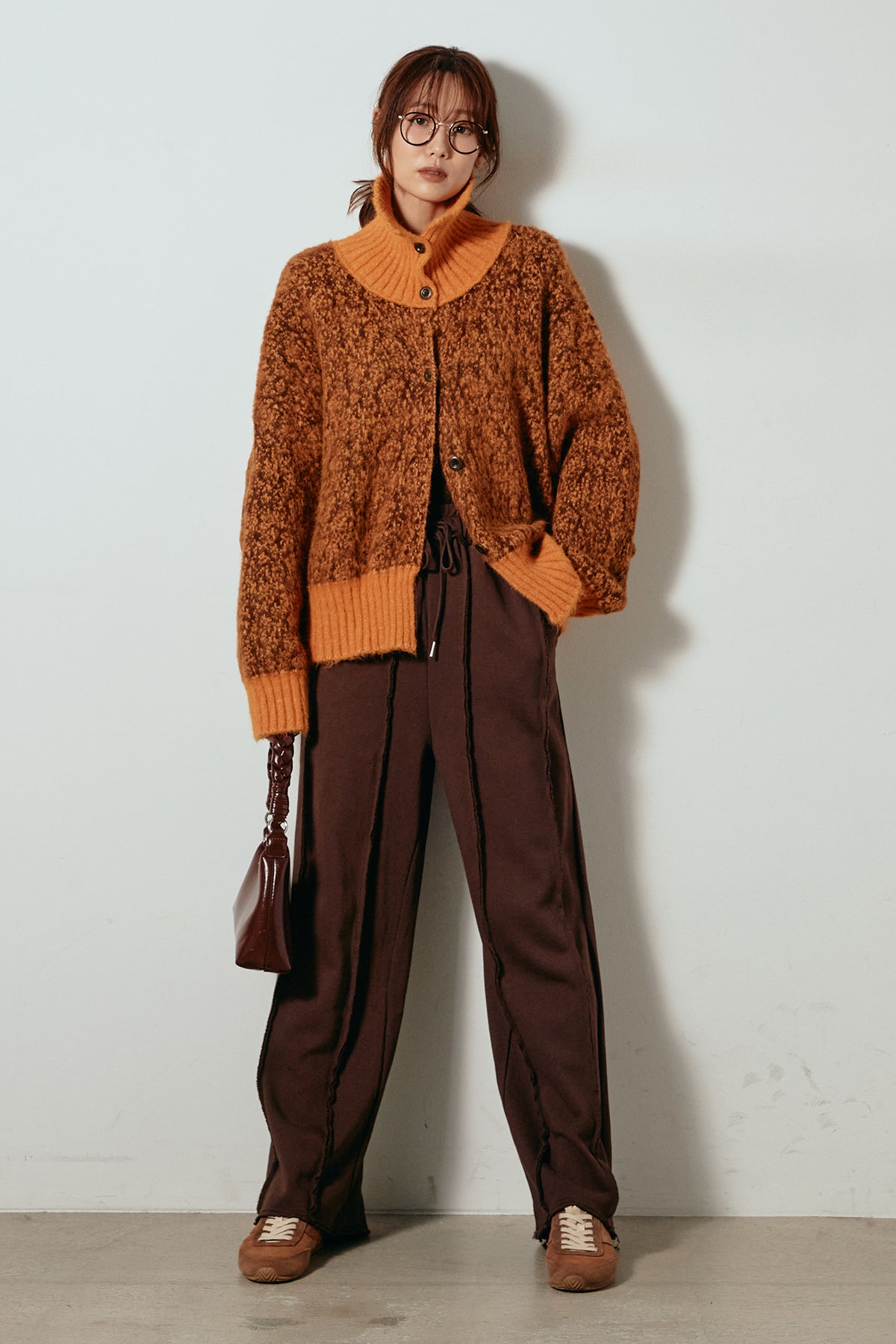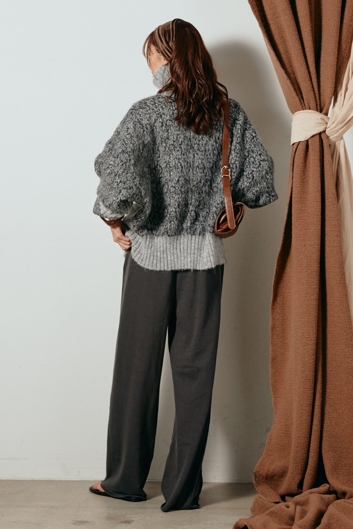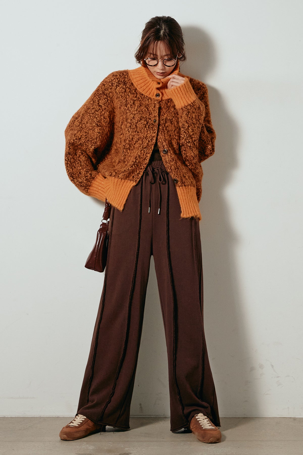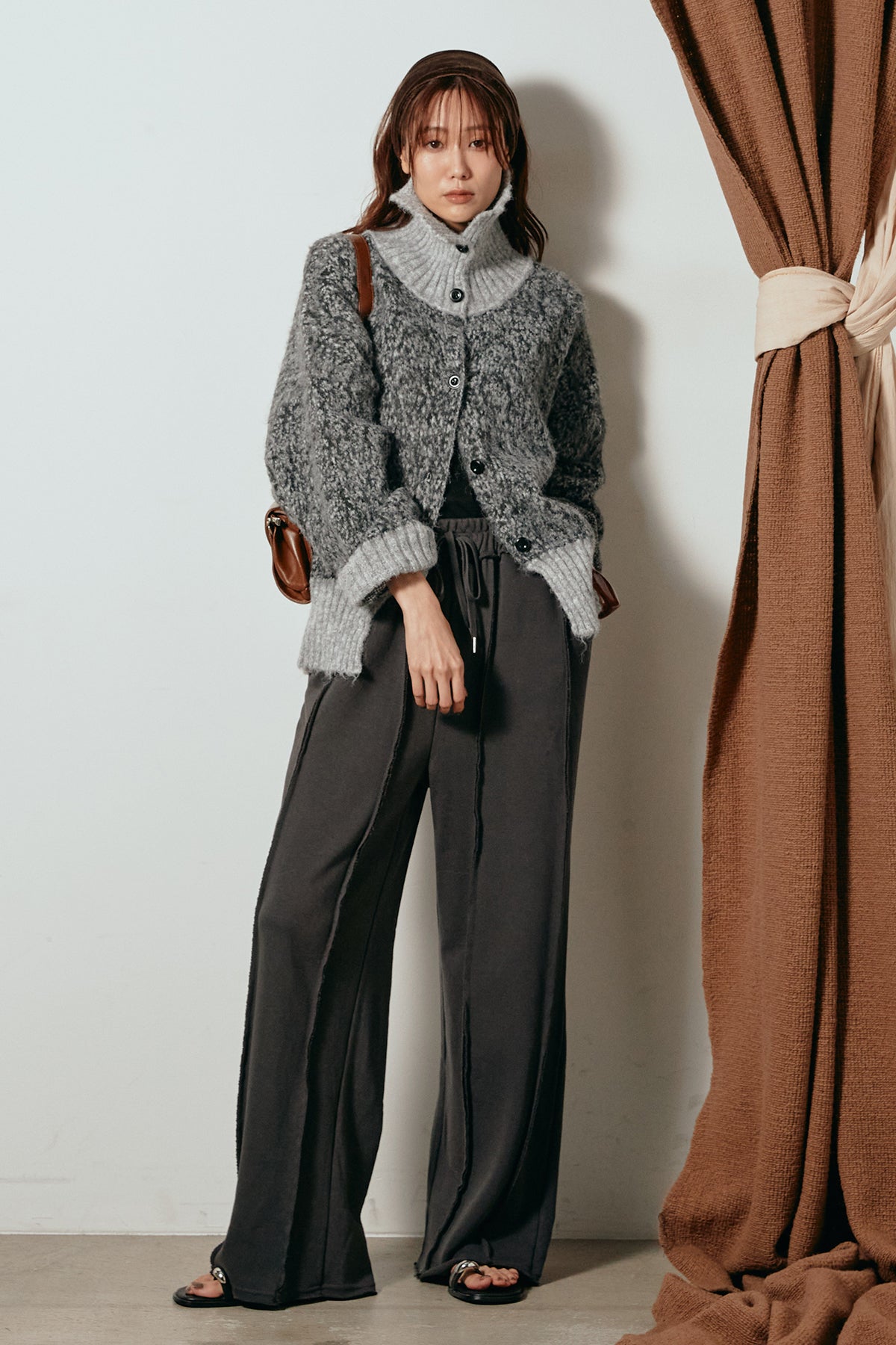 表情豊かなミックス糸を使用したハイネックニットトップス。異なる糸の風合いが奥行きのある色合いを生み、シンプルながら印象的な仕上がりに。ボリューム感のあるスリーブとリブ切り替えのディテールがアクセントになっています。ジップを開けて襟元を抜いた着こなしもおすすめで、パンツにもスカートにも合わせやすいバランスの取れた一枚です。