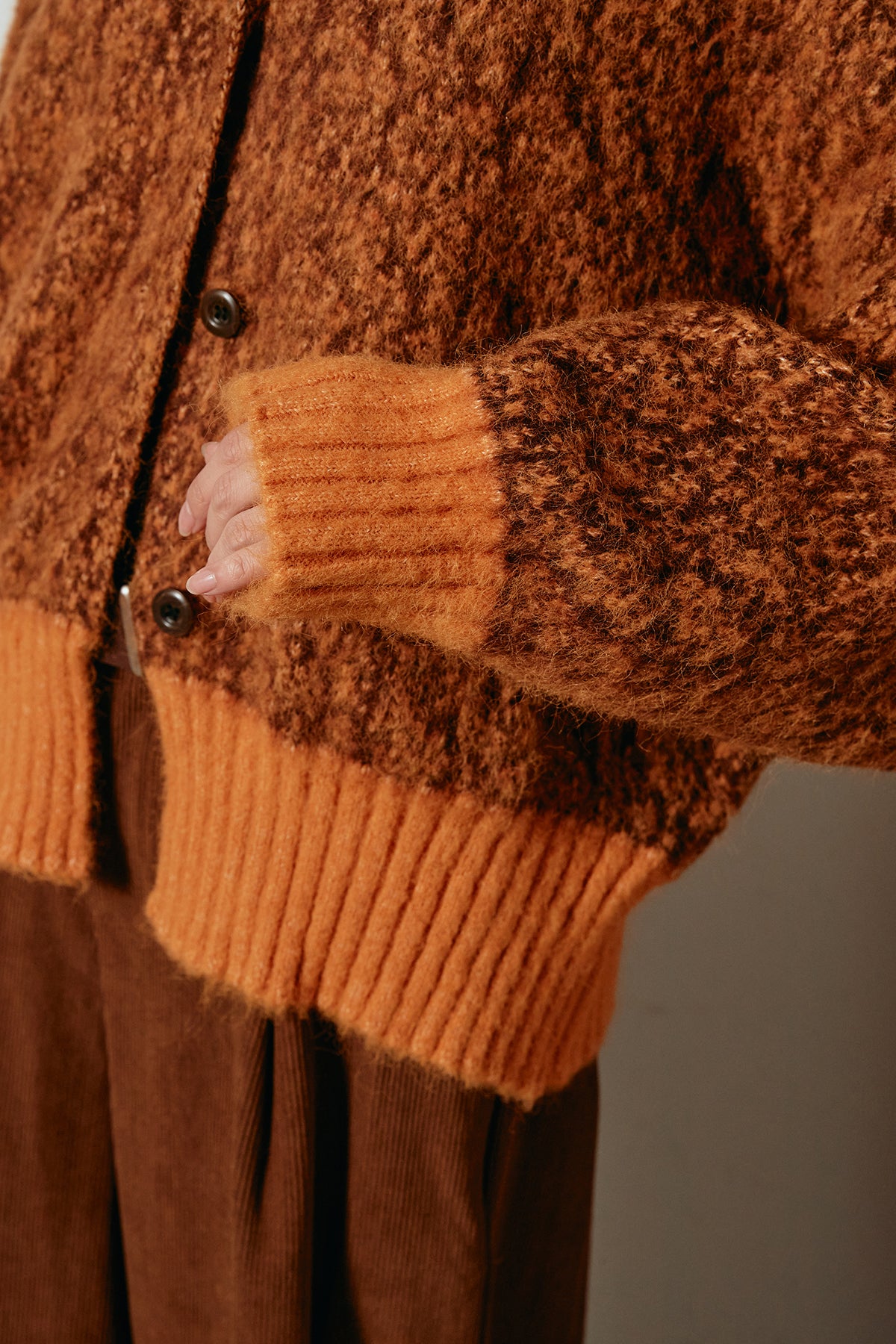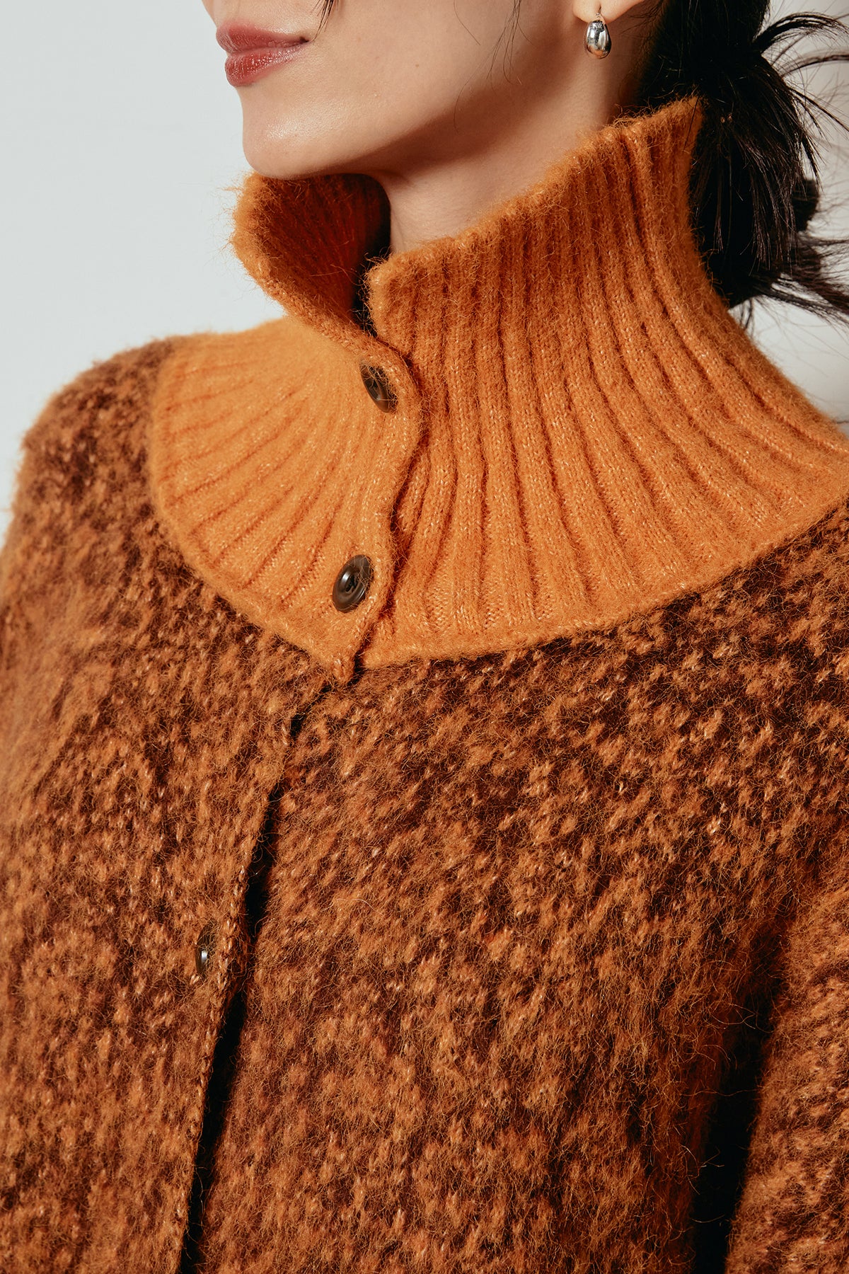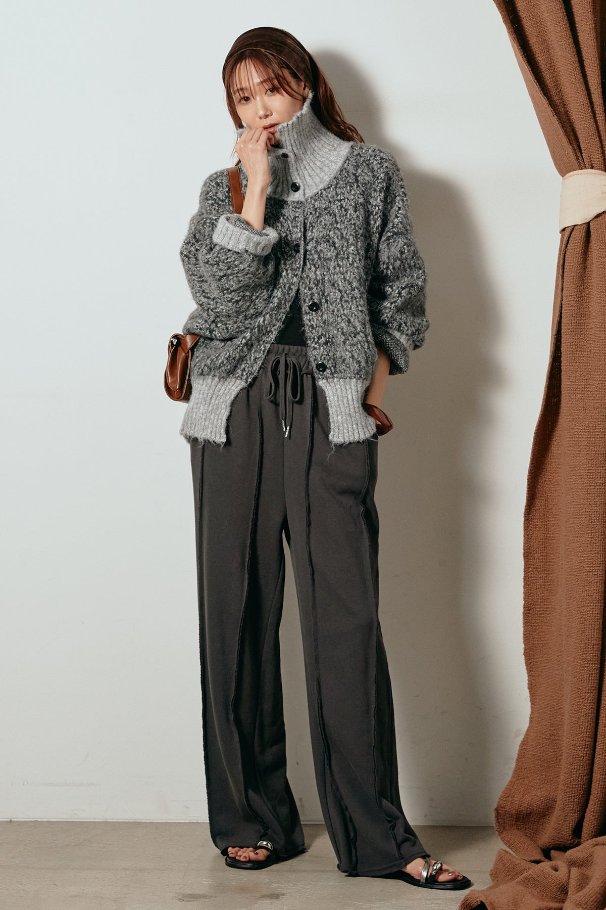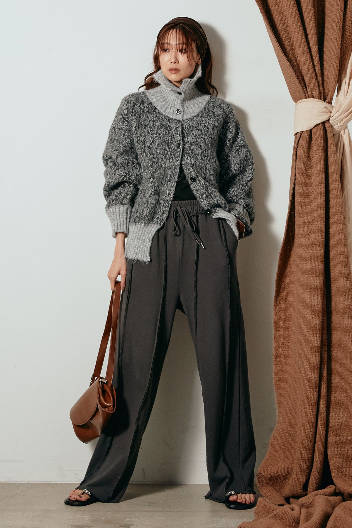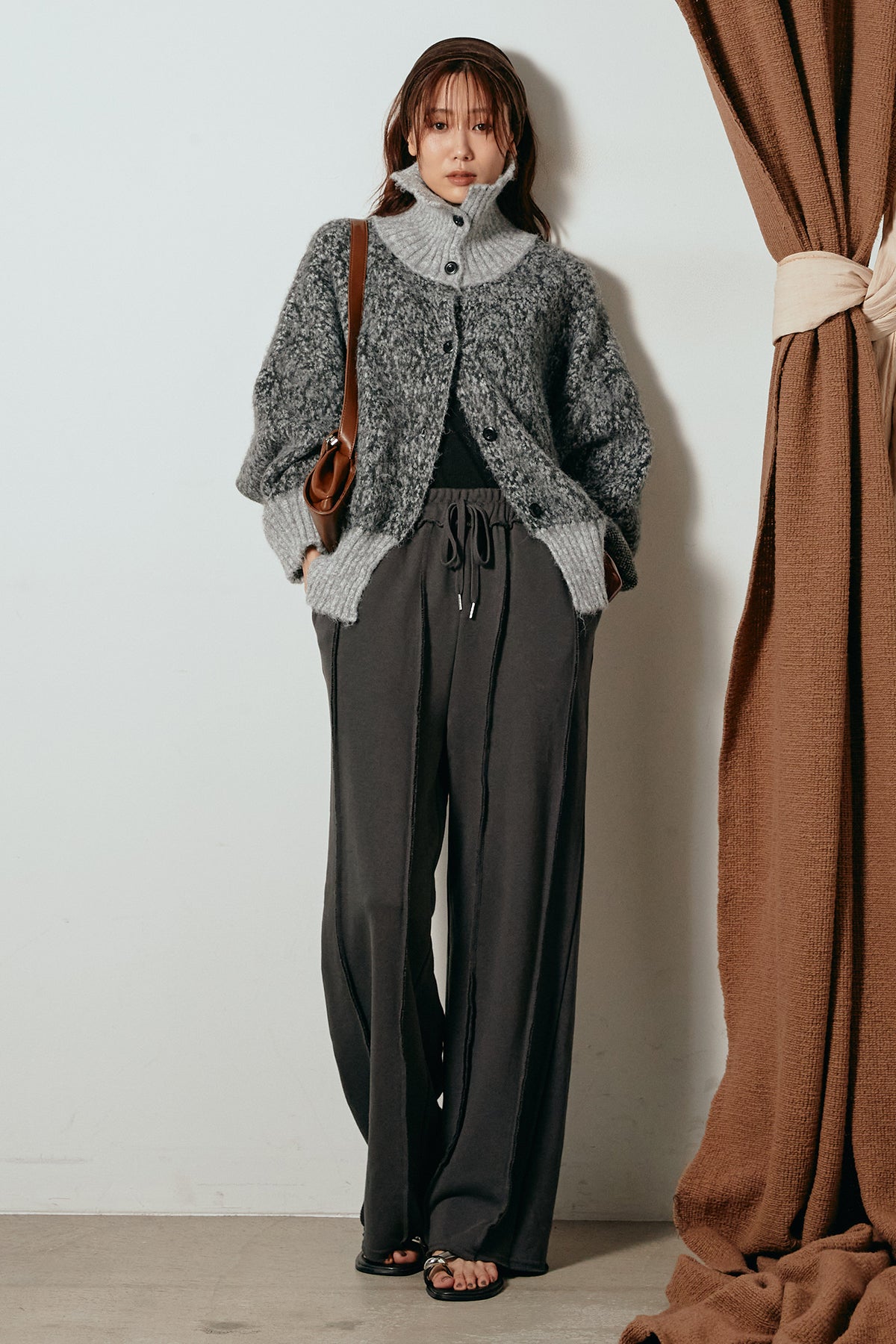 表情豊かなミックス糸を使用したハイネックニットトップス。異なる糸の風合いが奥行きのある色合いを生み、シンプルながら印象的な仕上がりに。ボリューム感のあるスリーブとリブ切り替えのディテールがアクセントになっています。ジップを開けて襟元を抜いた着こなしもおすすめで、パンツにもスカートにも合わせやすいバランスの取れた一枚です。
