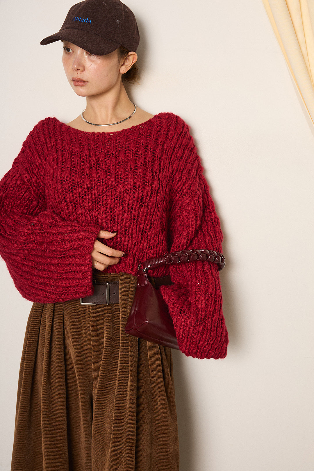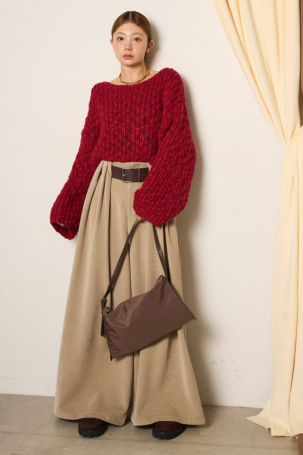 [SET]チャンキースラブニットクロップドプルオーバー+ベルトループコーデュロイワイドパンツ(2set)