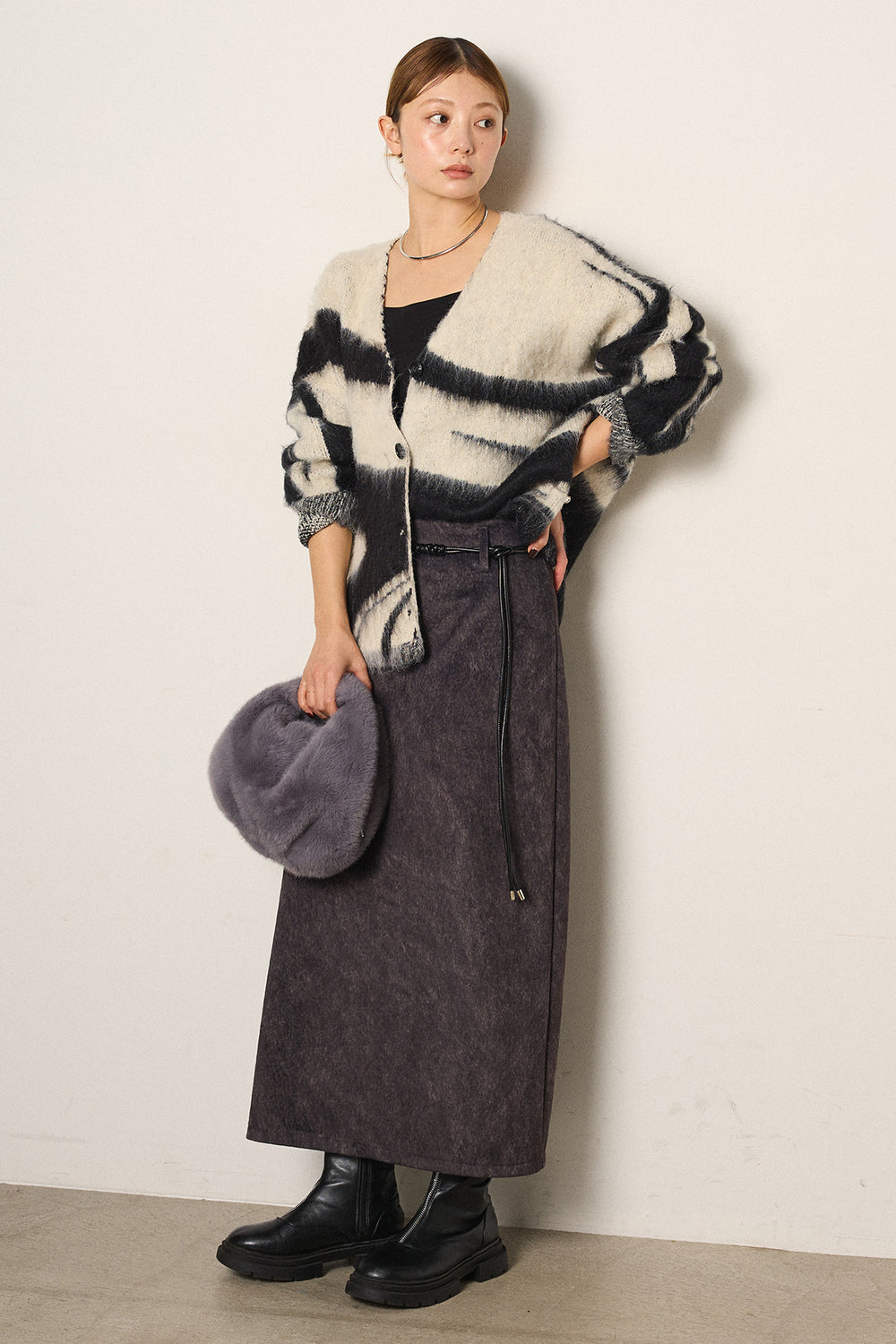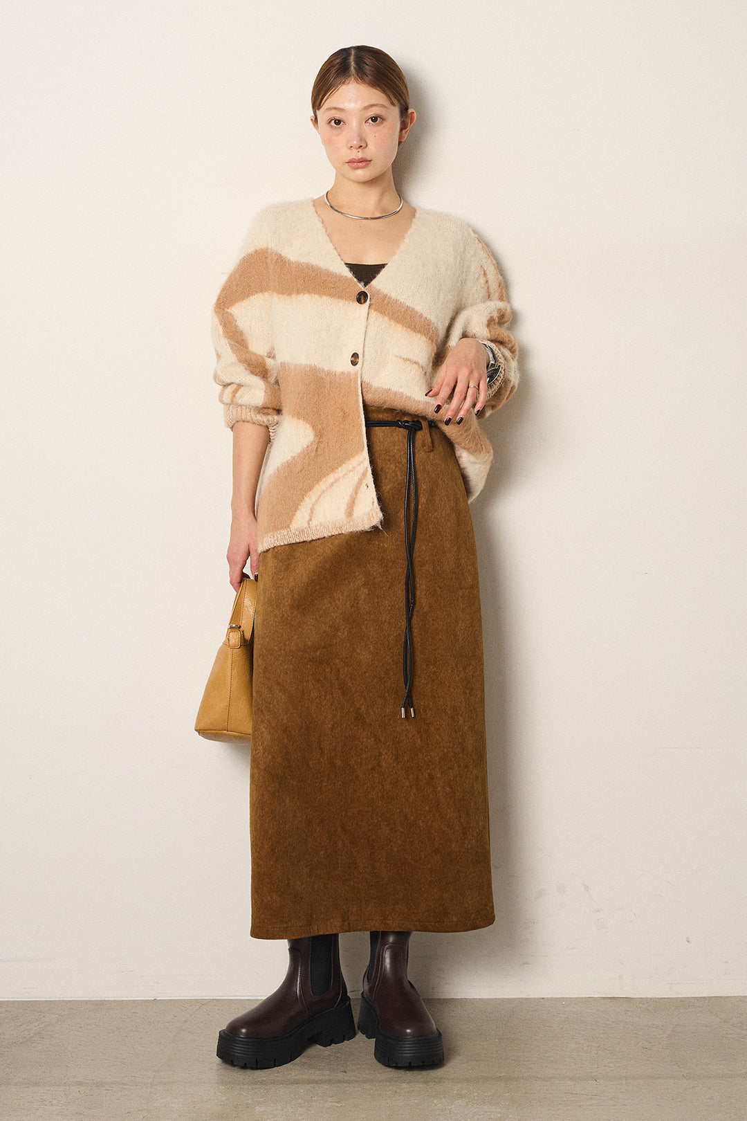 [SET]アクセントブラッシュドカーディガン+ロープベルト付きスウェード調スカート(2set)