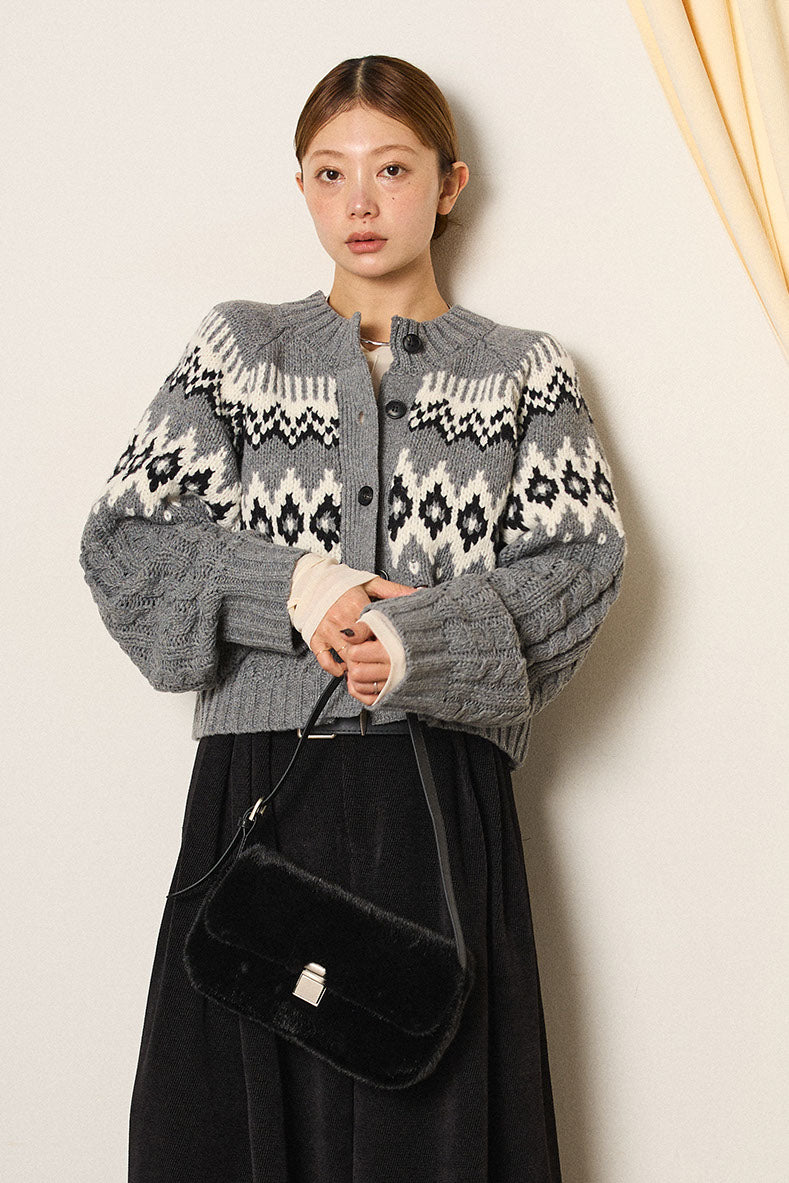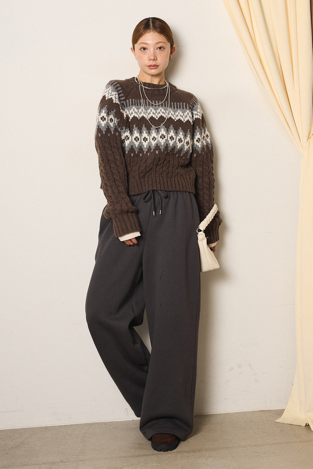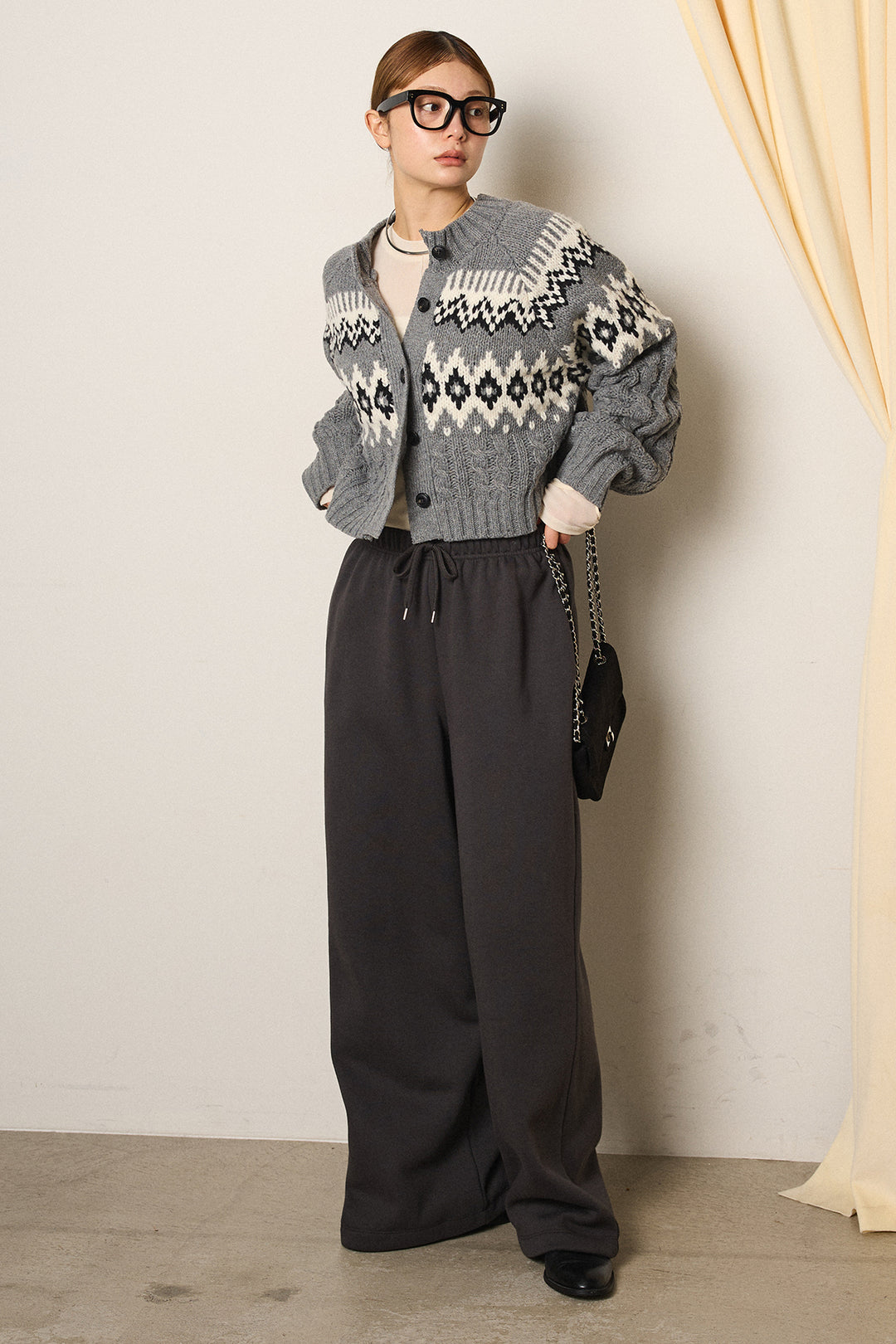 [SET]2WAY求心柄ジャガードショートカーディガン+裏起毛スウェットワイドパンツ(2set)
