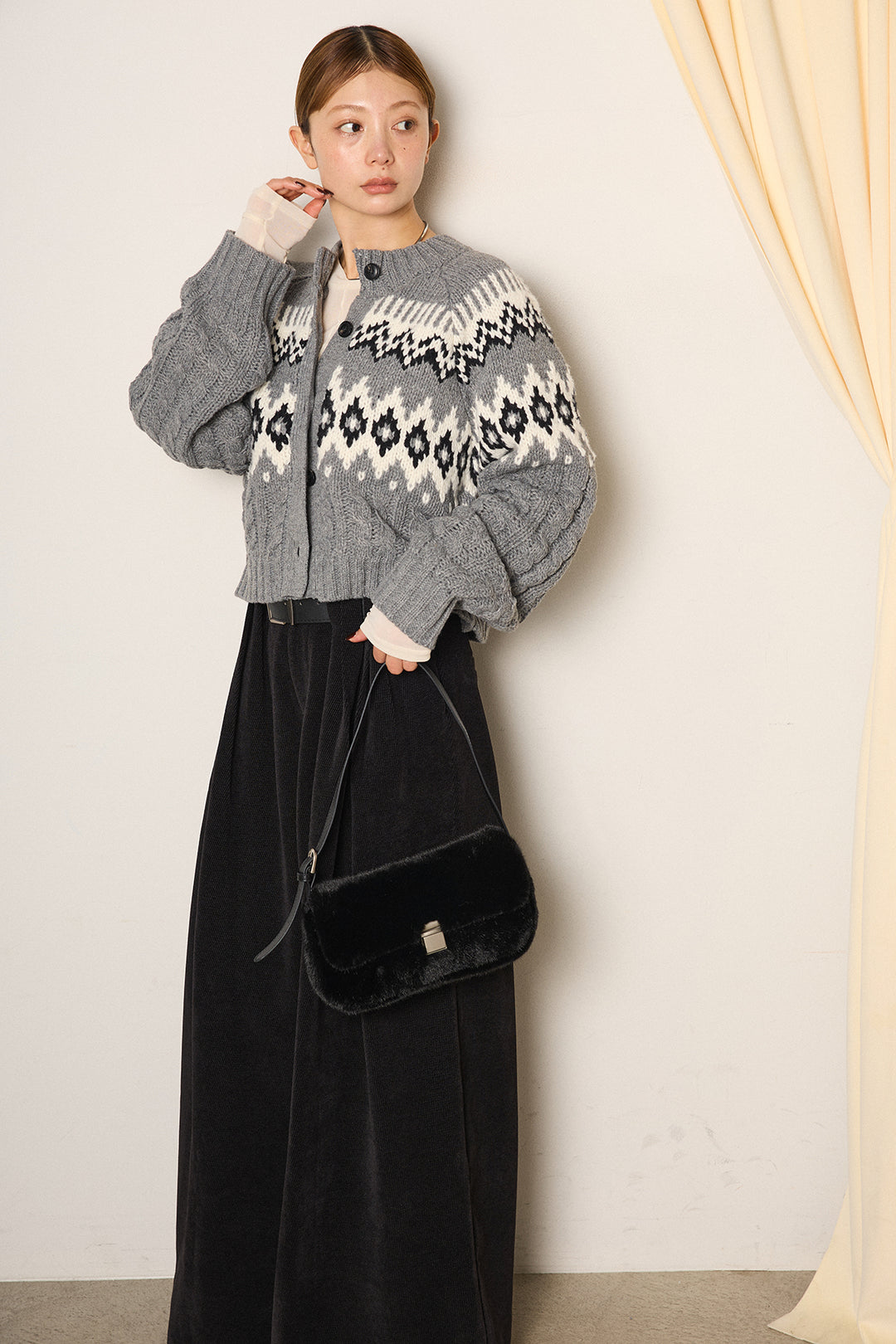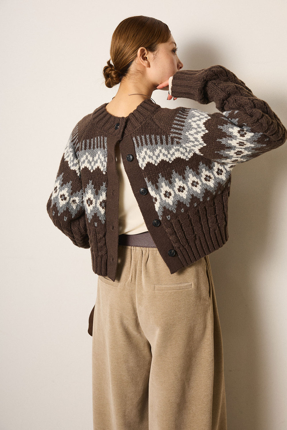 [SET]2WAY求心柄ジャガードショートカーディガン+ベルトループコーデュロイワイドパンツ(2set)
