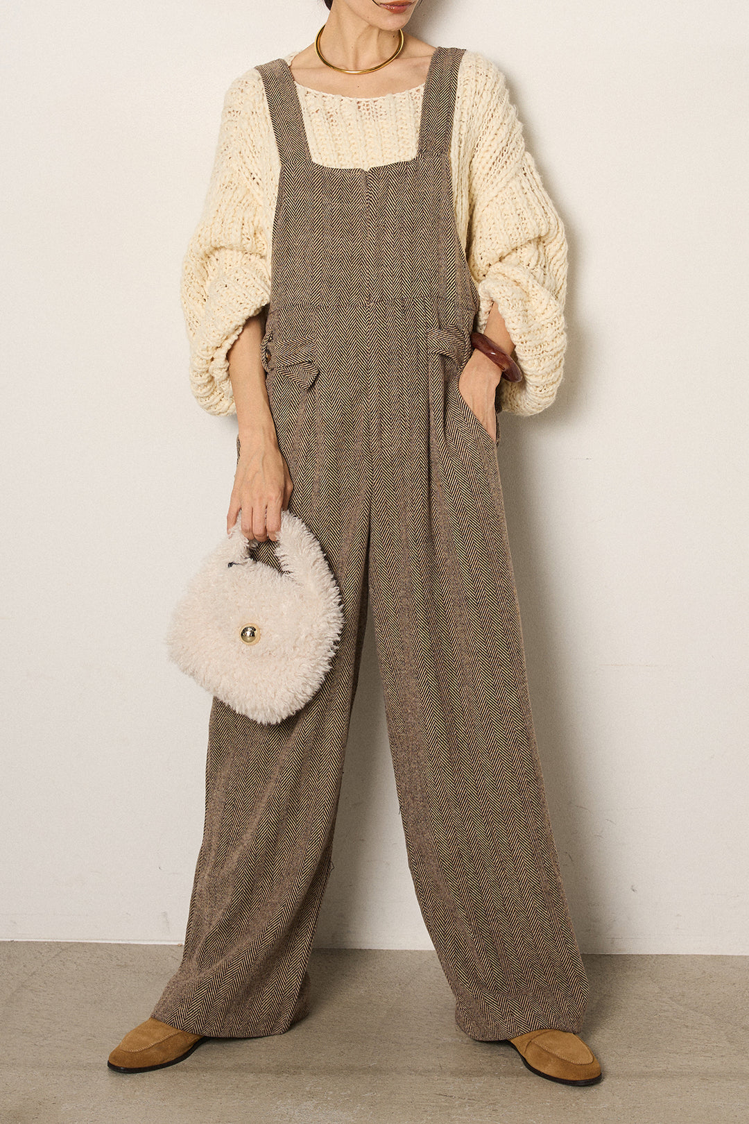 [SET]チャンキースラブニットクロップドプルオーバー+クラシックヘリンボーンサロペット(2set)