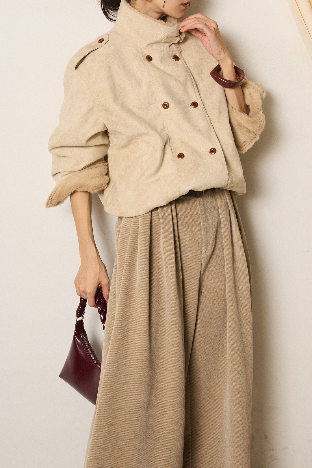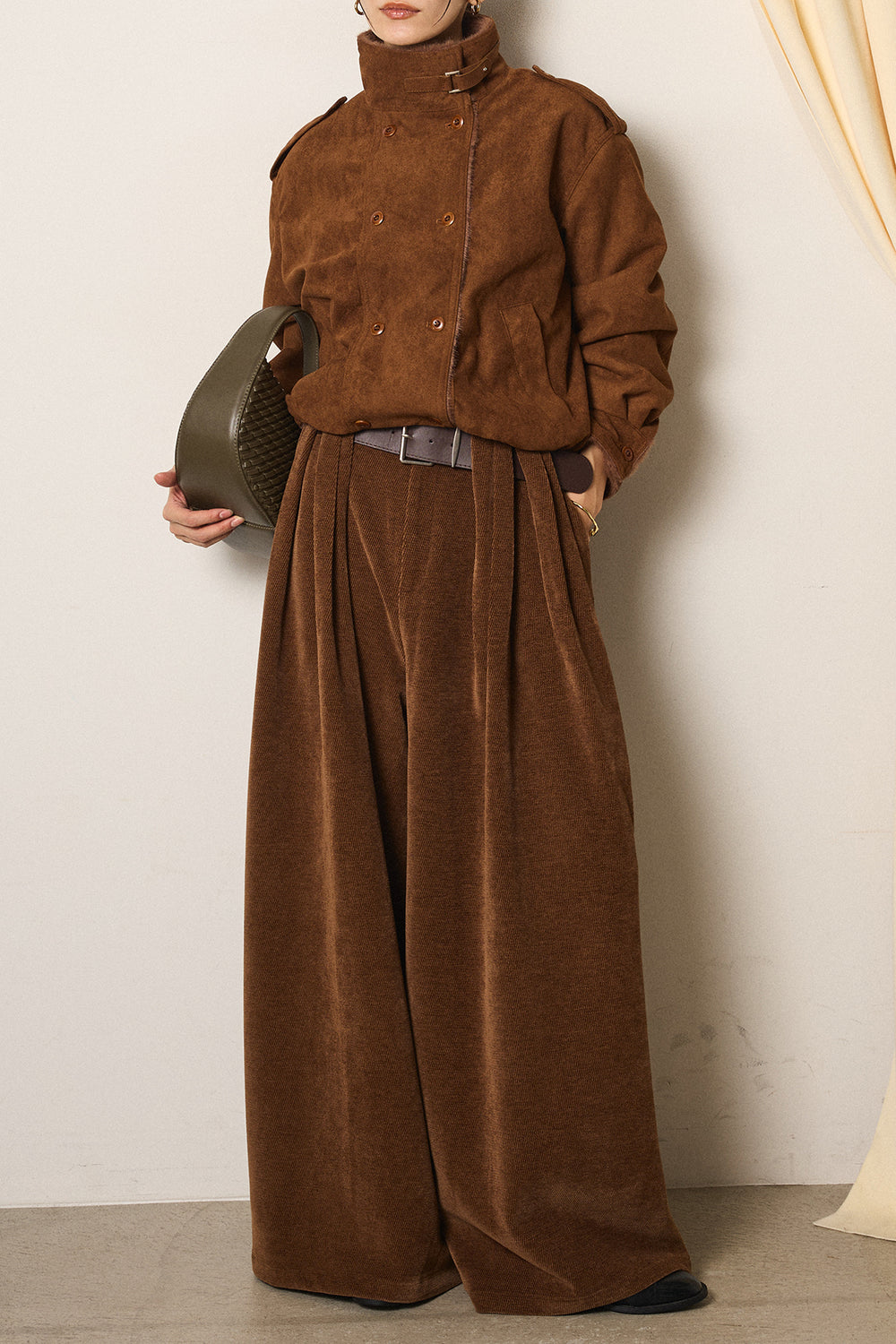 [SET]スタンド襟スウェードライクアウター+ベルトループコーデュロイワイドパンツ(2set)