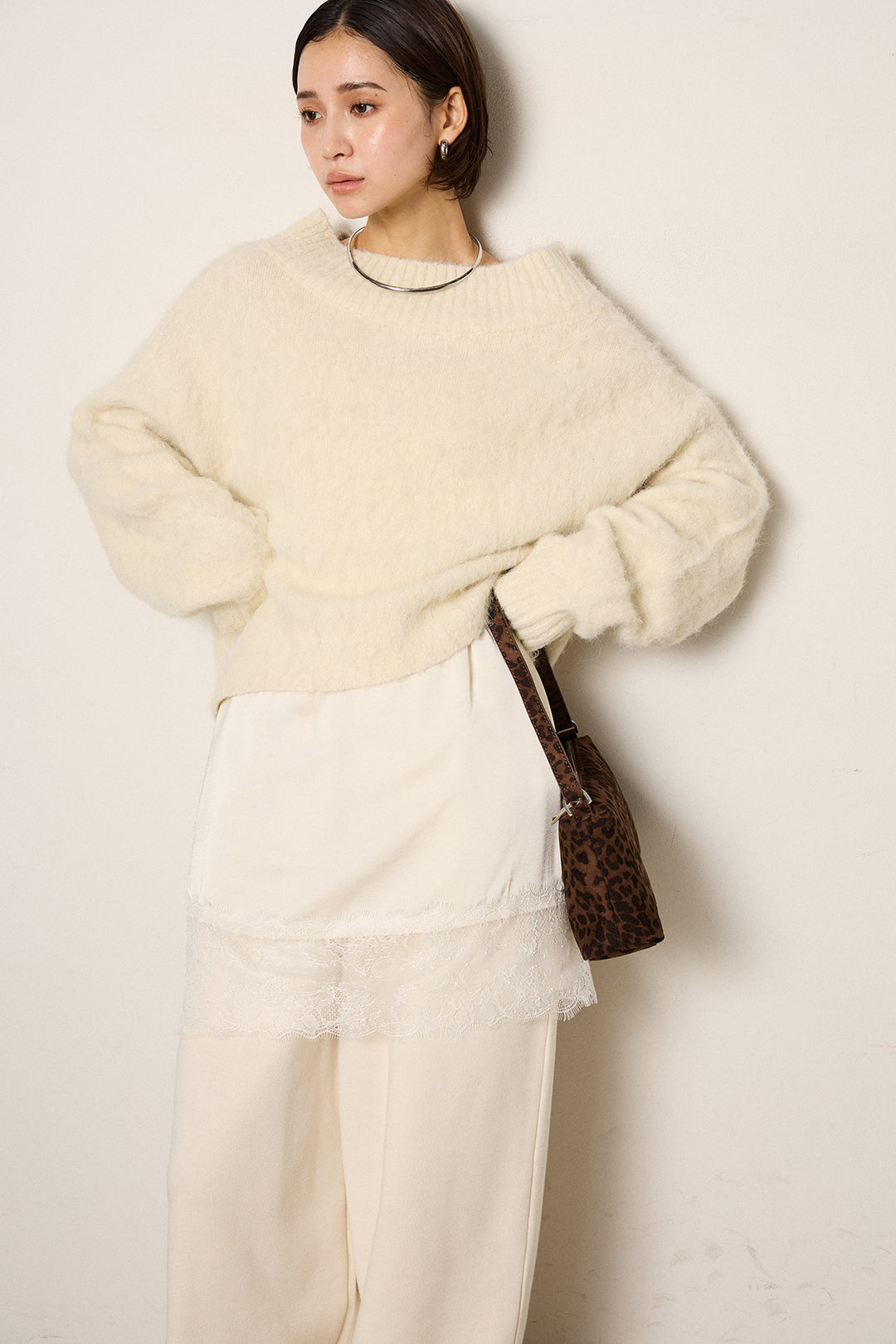 [SET]アルパカタッチオフショルニット+レース切り替えキャミソール(2set)