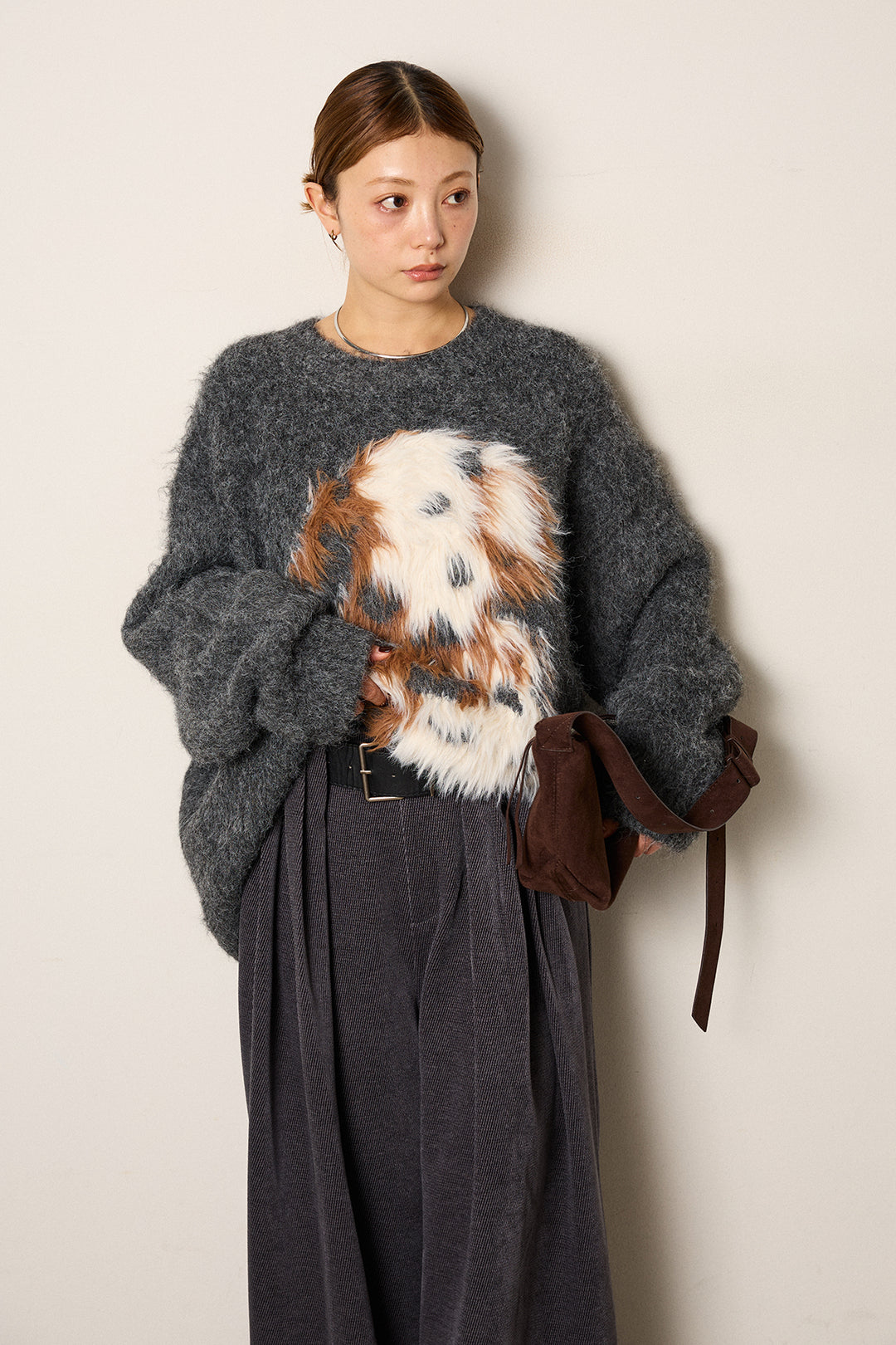 [SET]シャギーニュアンスアニマルニット+ベルトループコーデュロイワイドパンツ(2set)