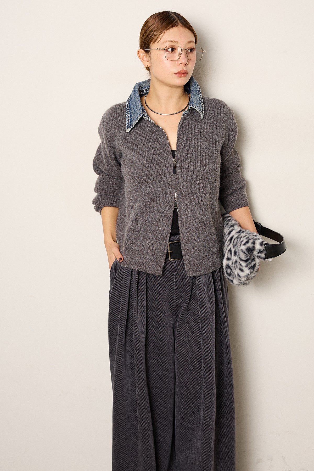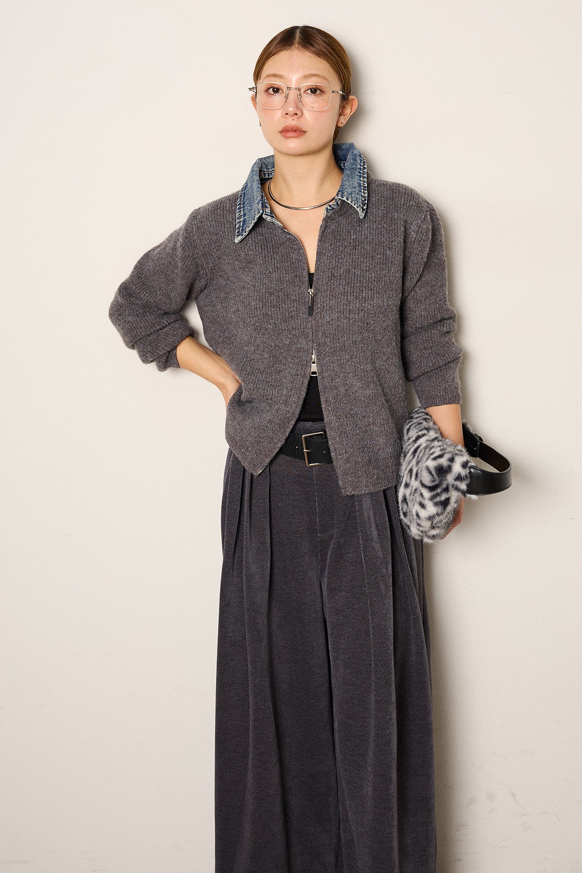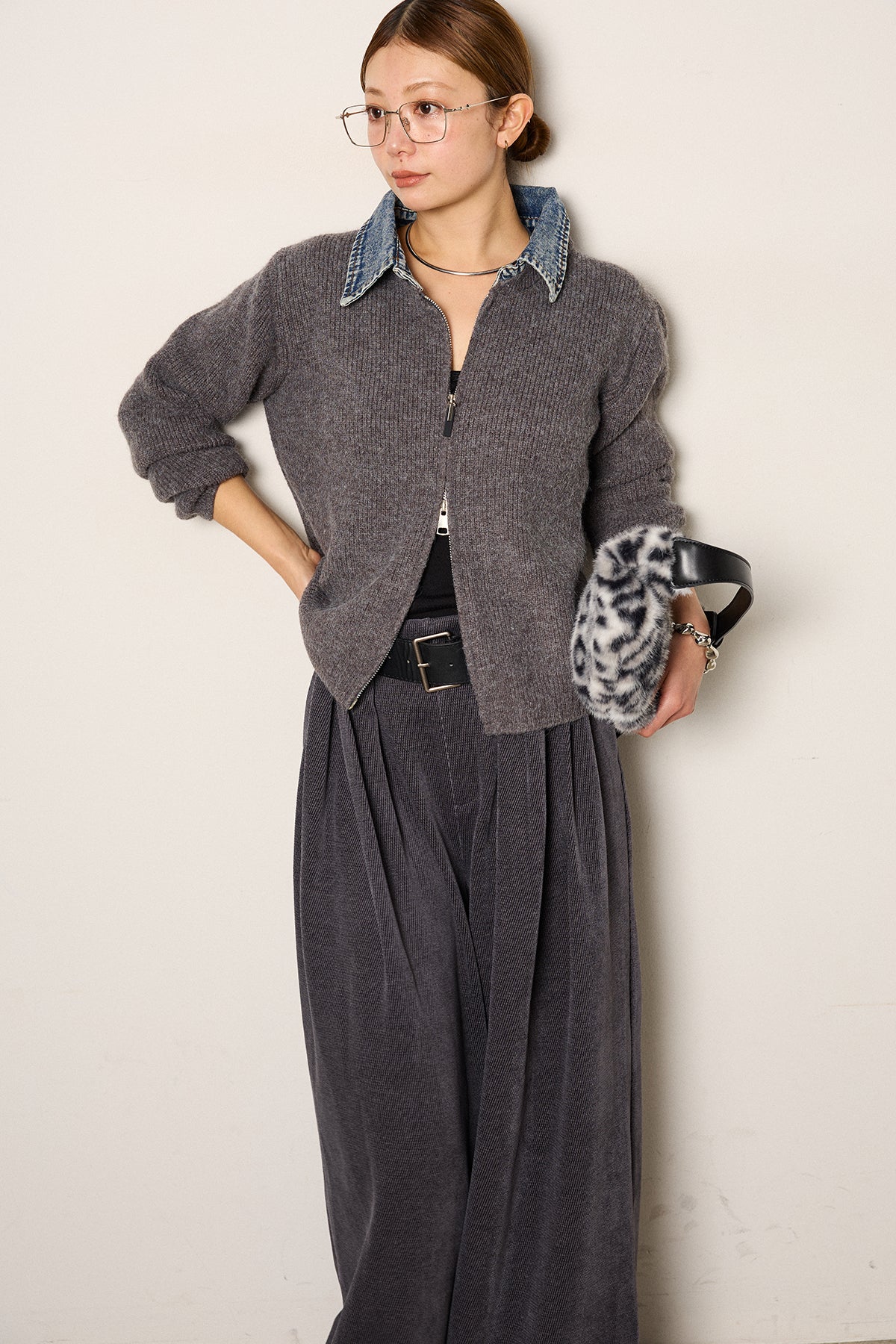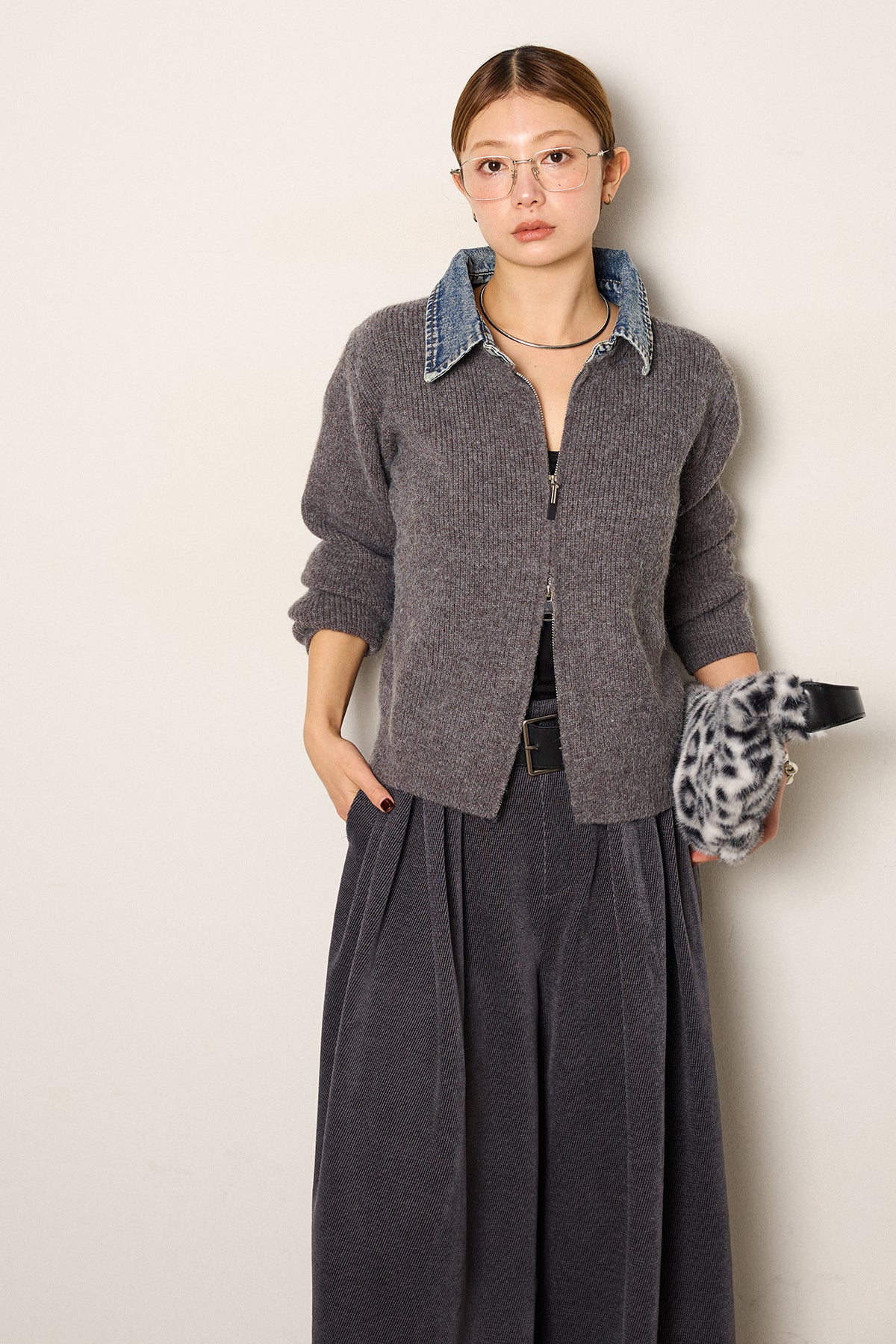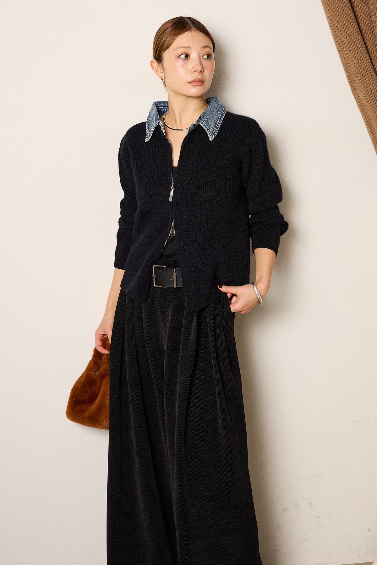 デニム襟ダブルジップニットトップスの他のセットページはこちら