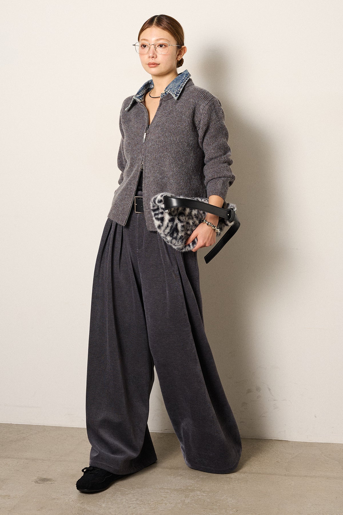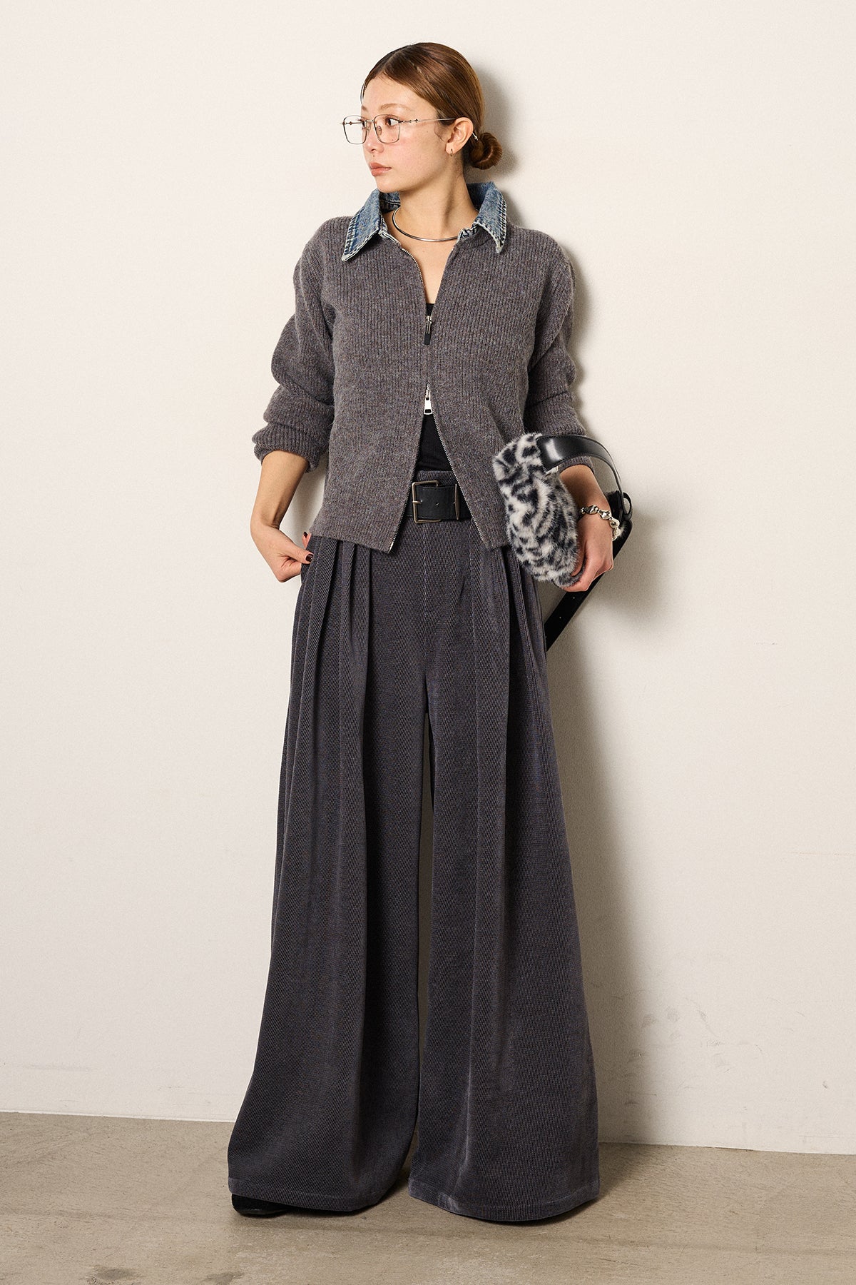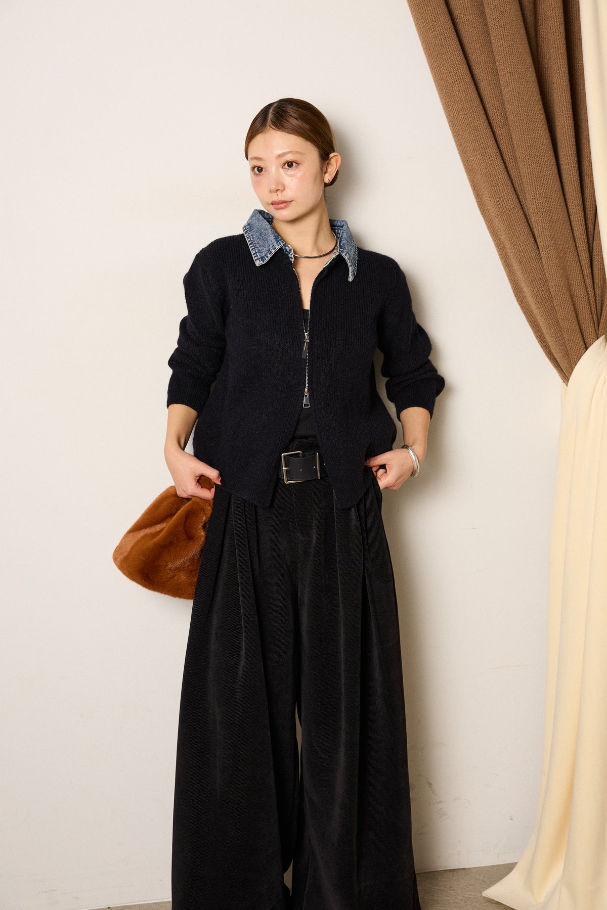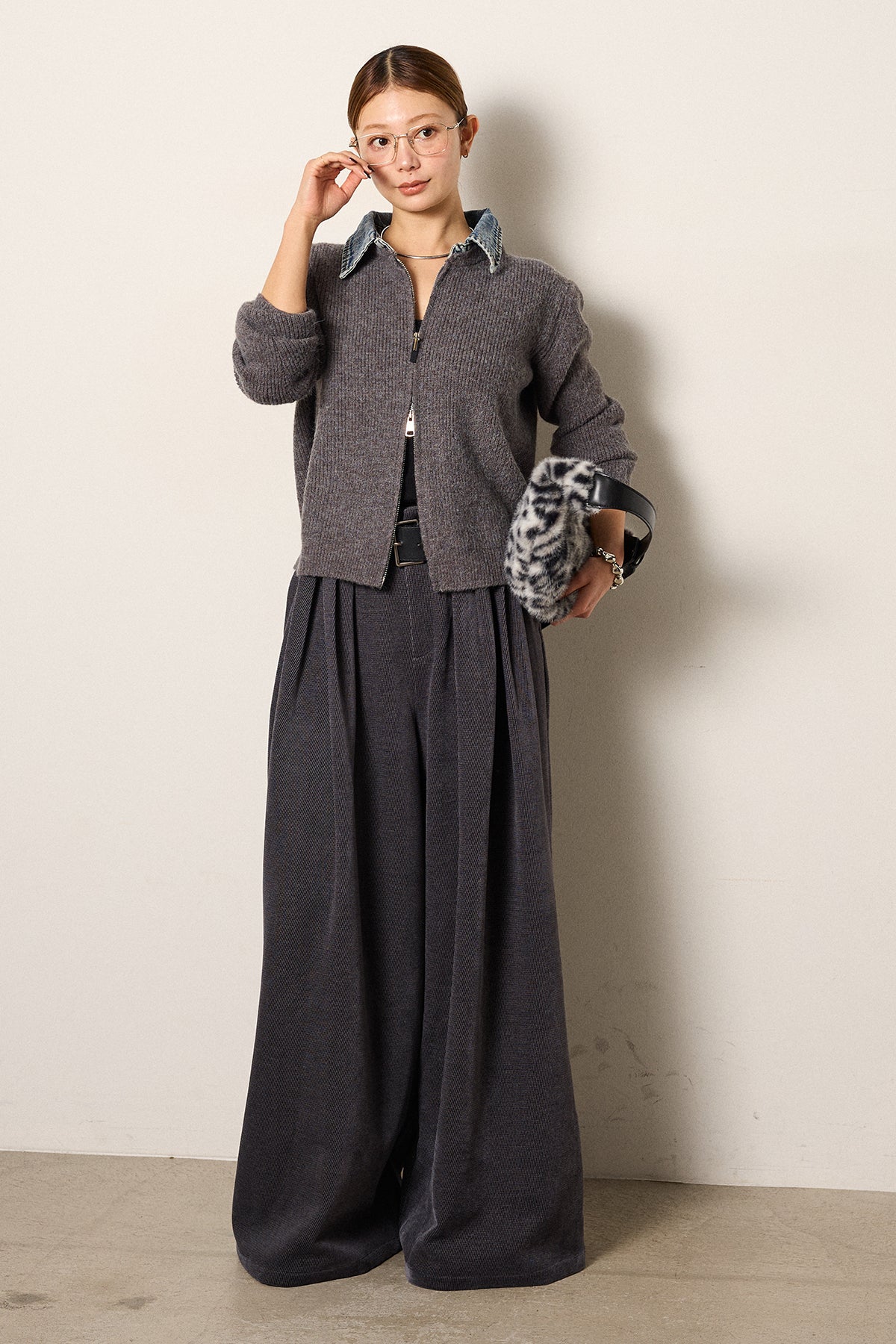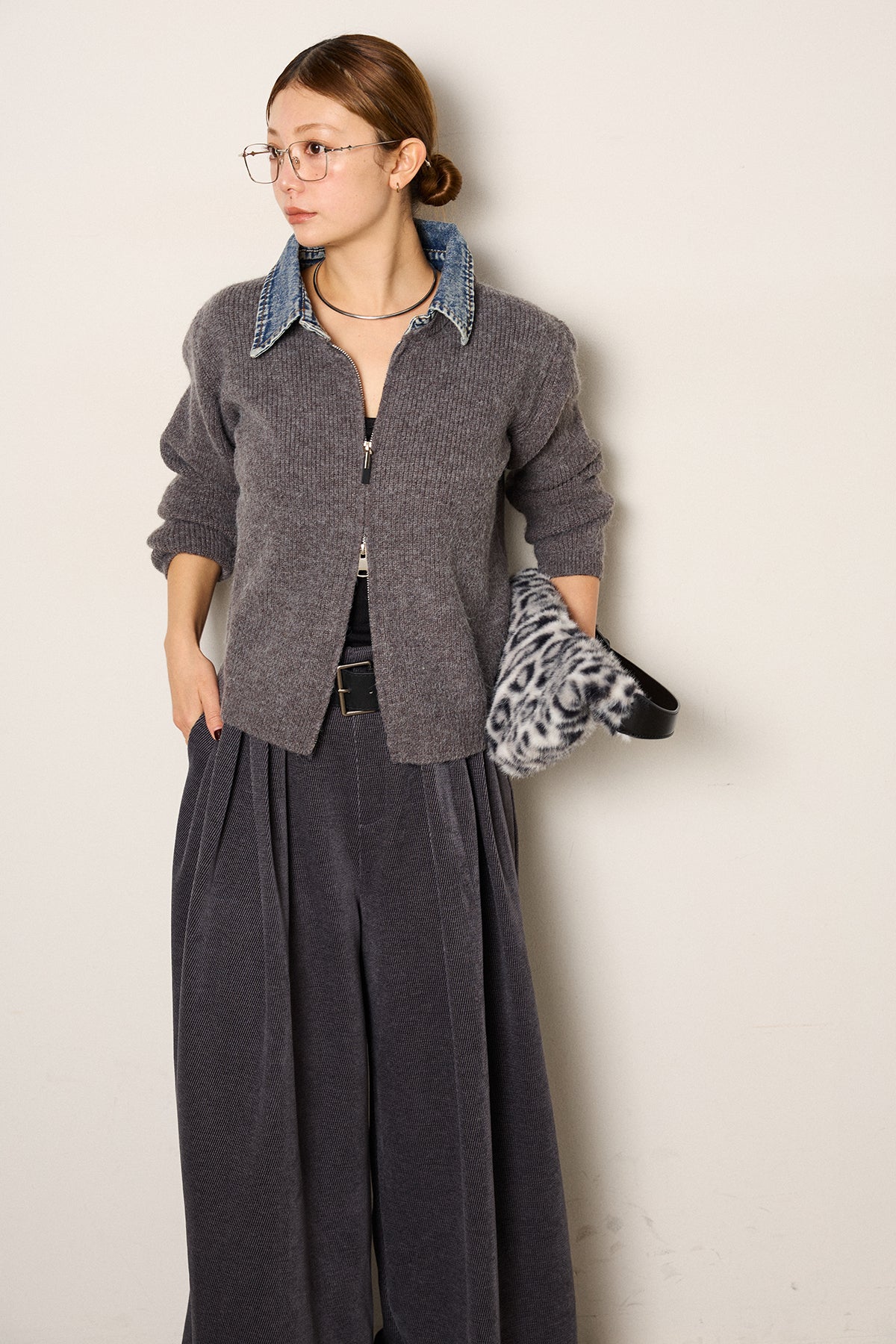 デニム襟ダブルジップニットトップスの他のセットページはこちら