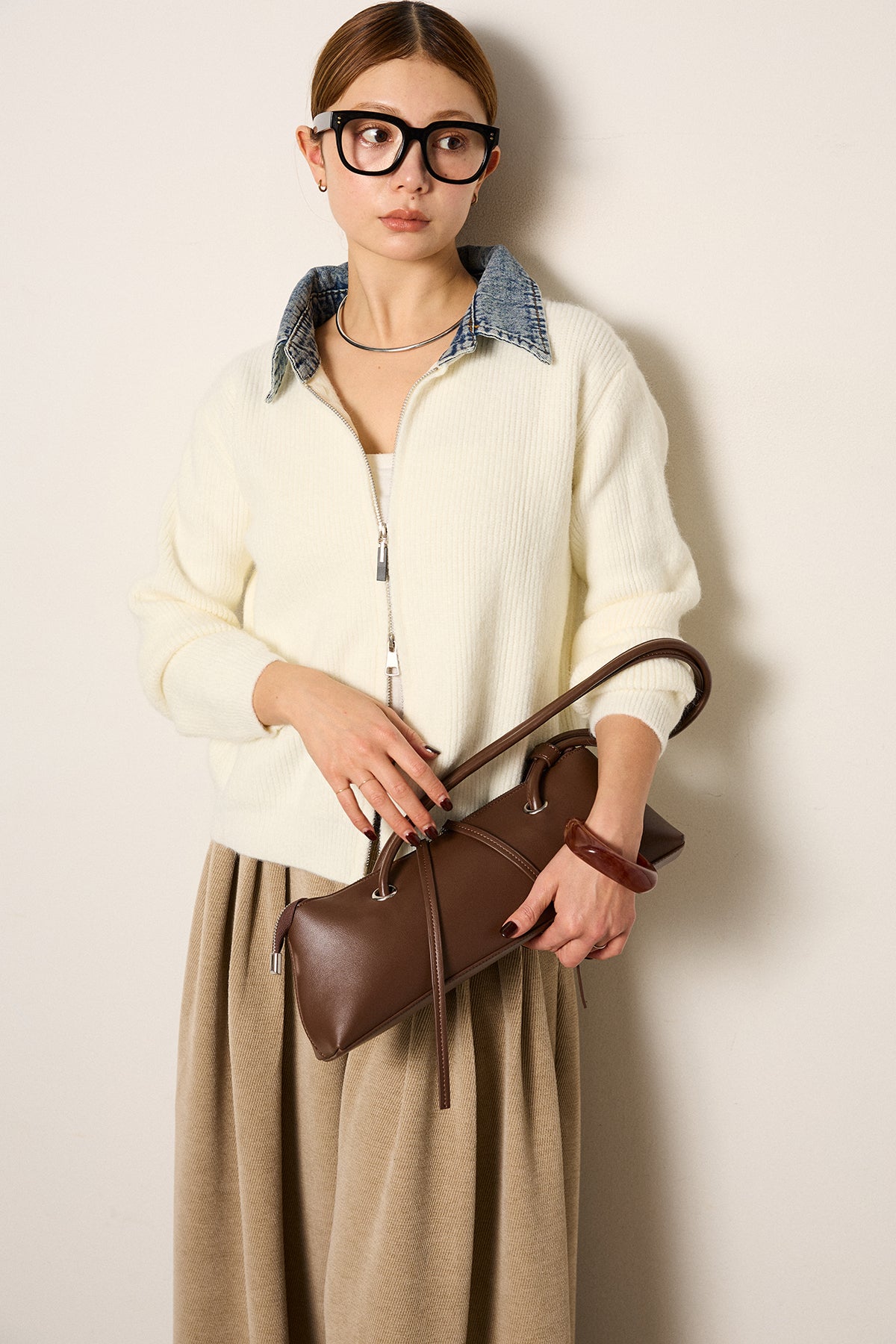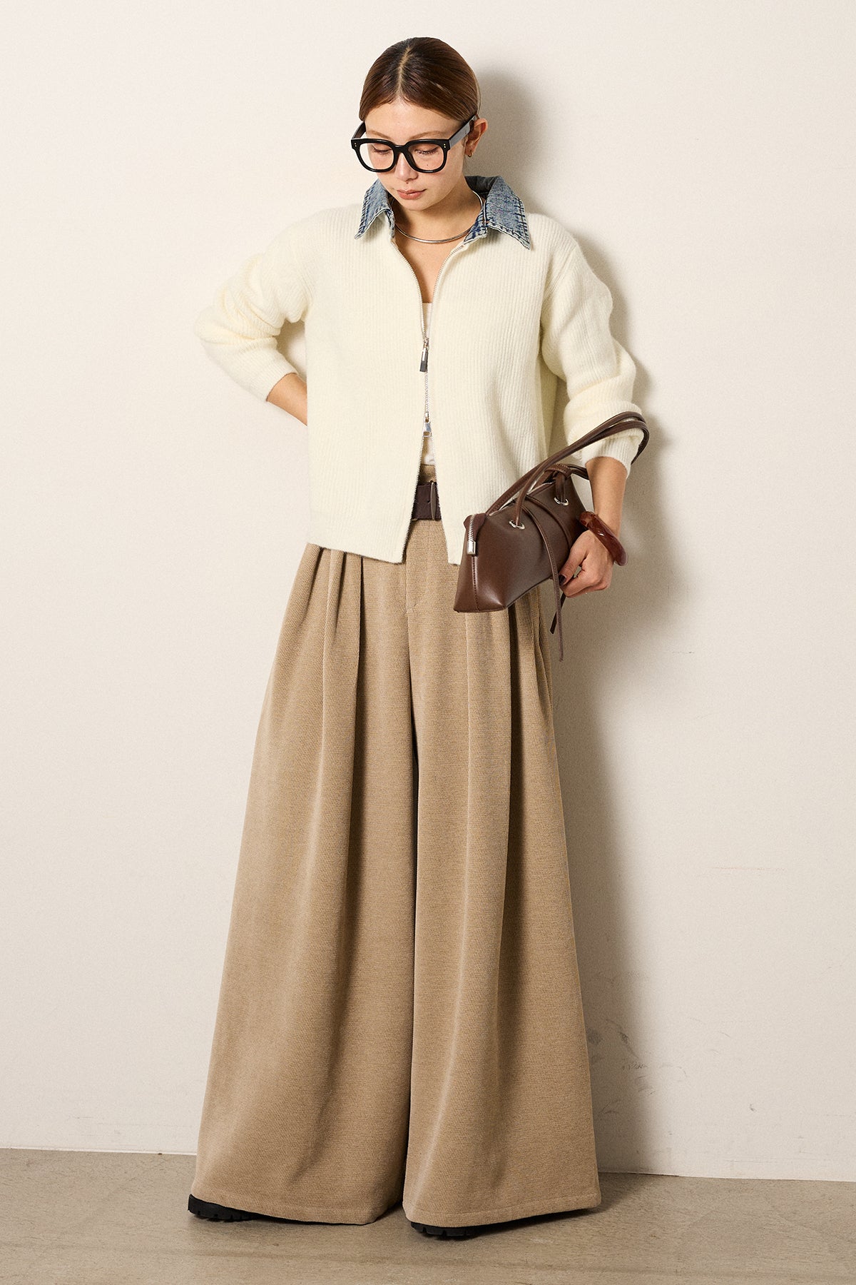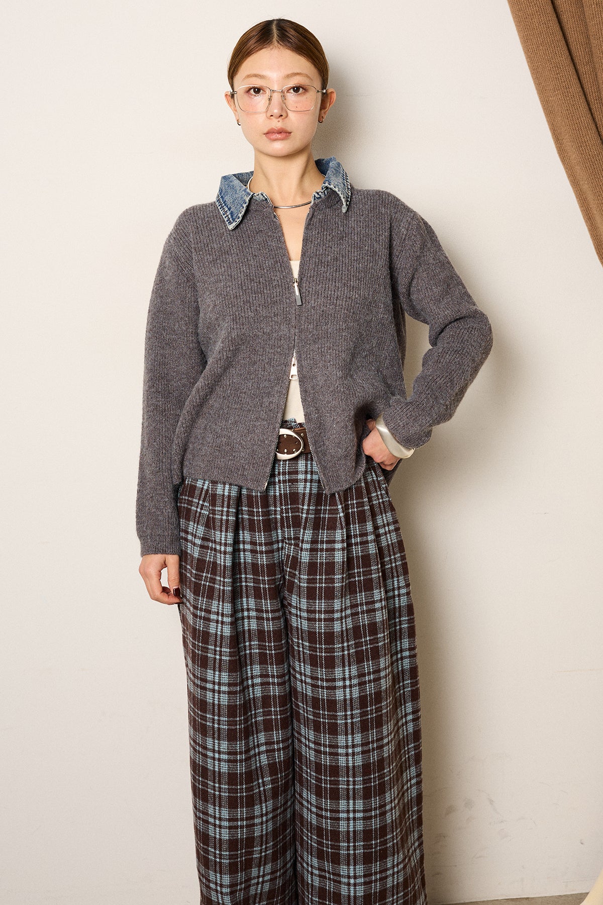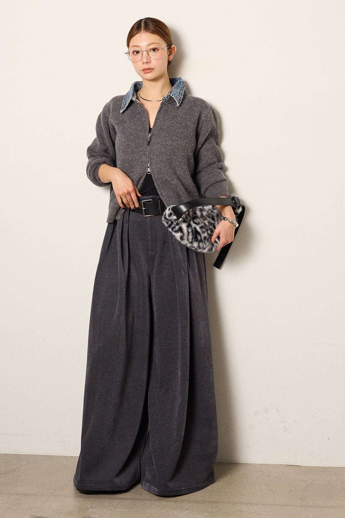 デニム襟ダブルジップニットトップスの他のセットページはこちら