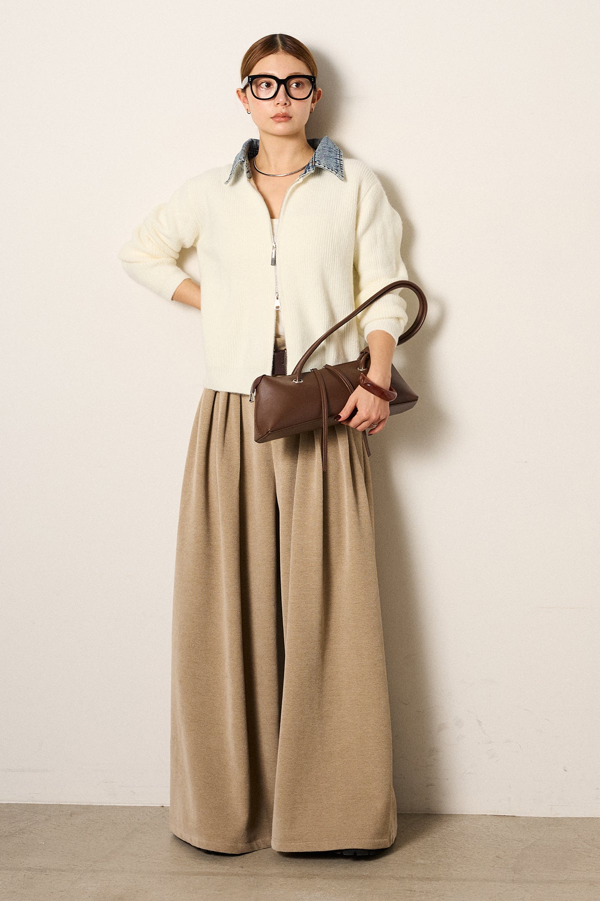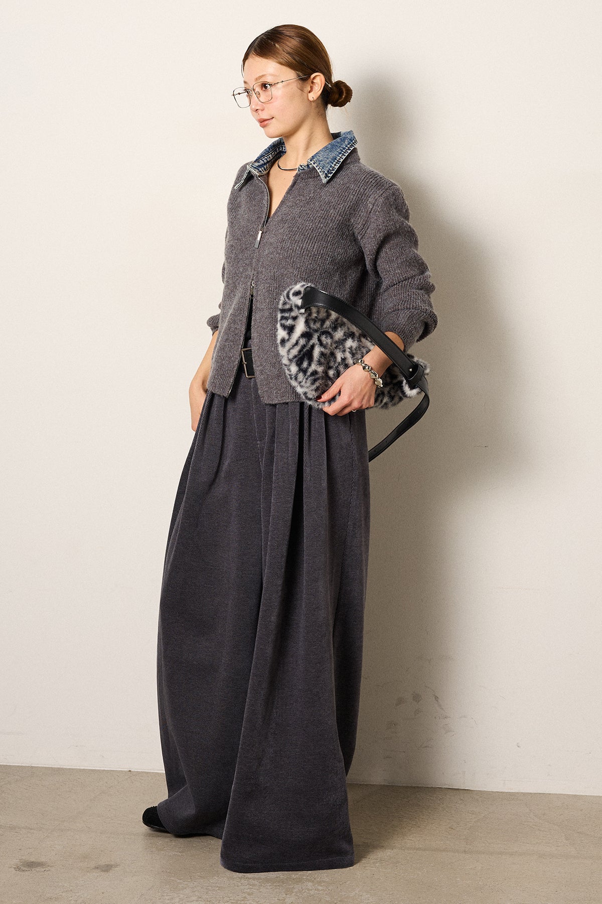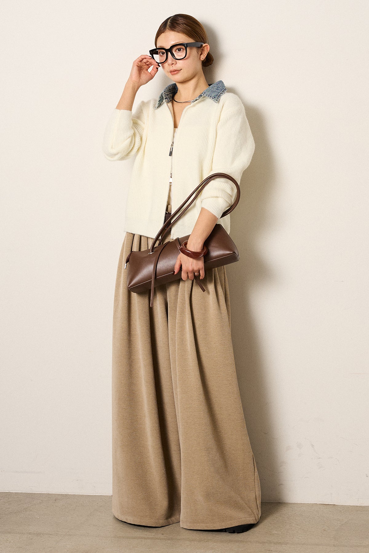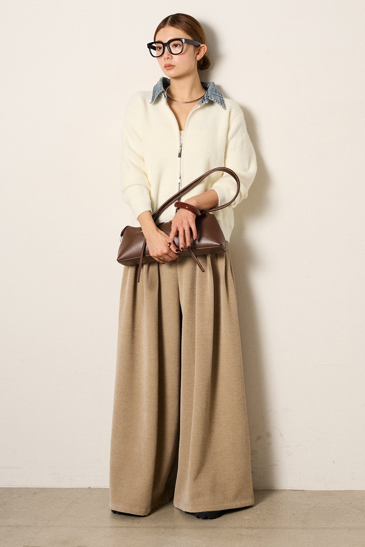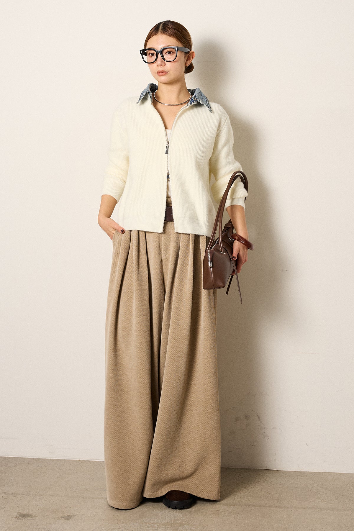 デニム襟ダブルジップニットトップスの他のセットページはこちら