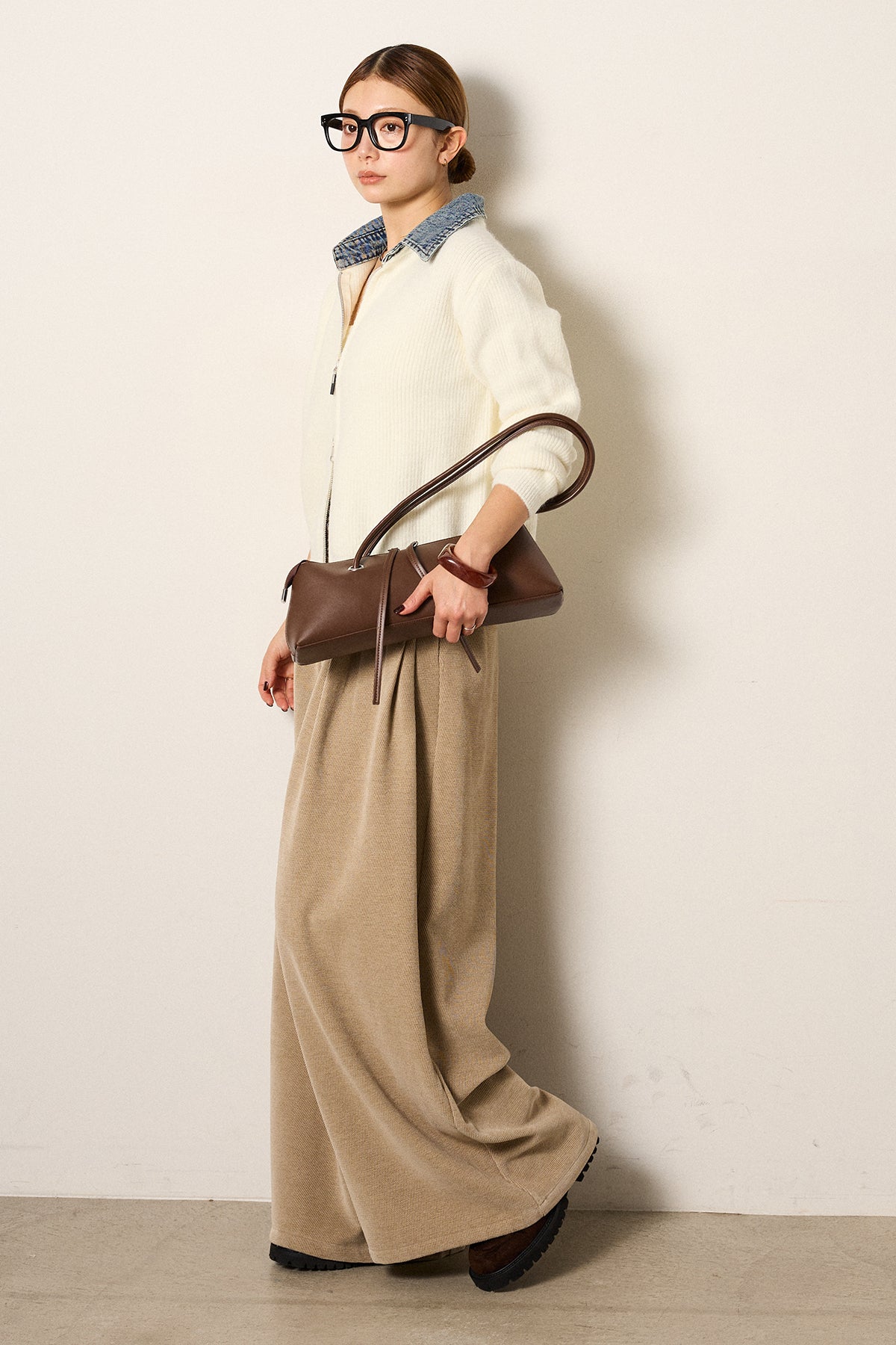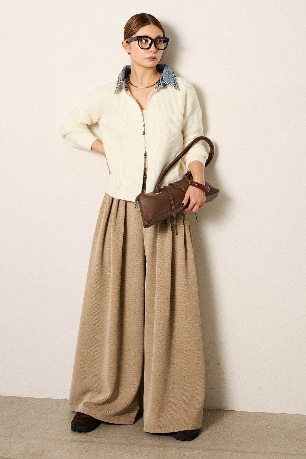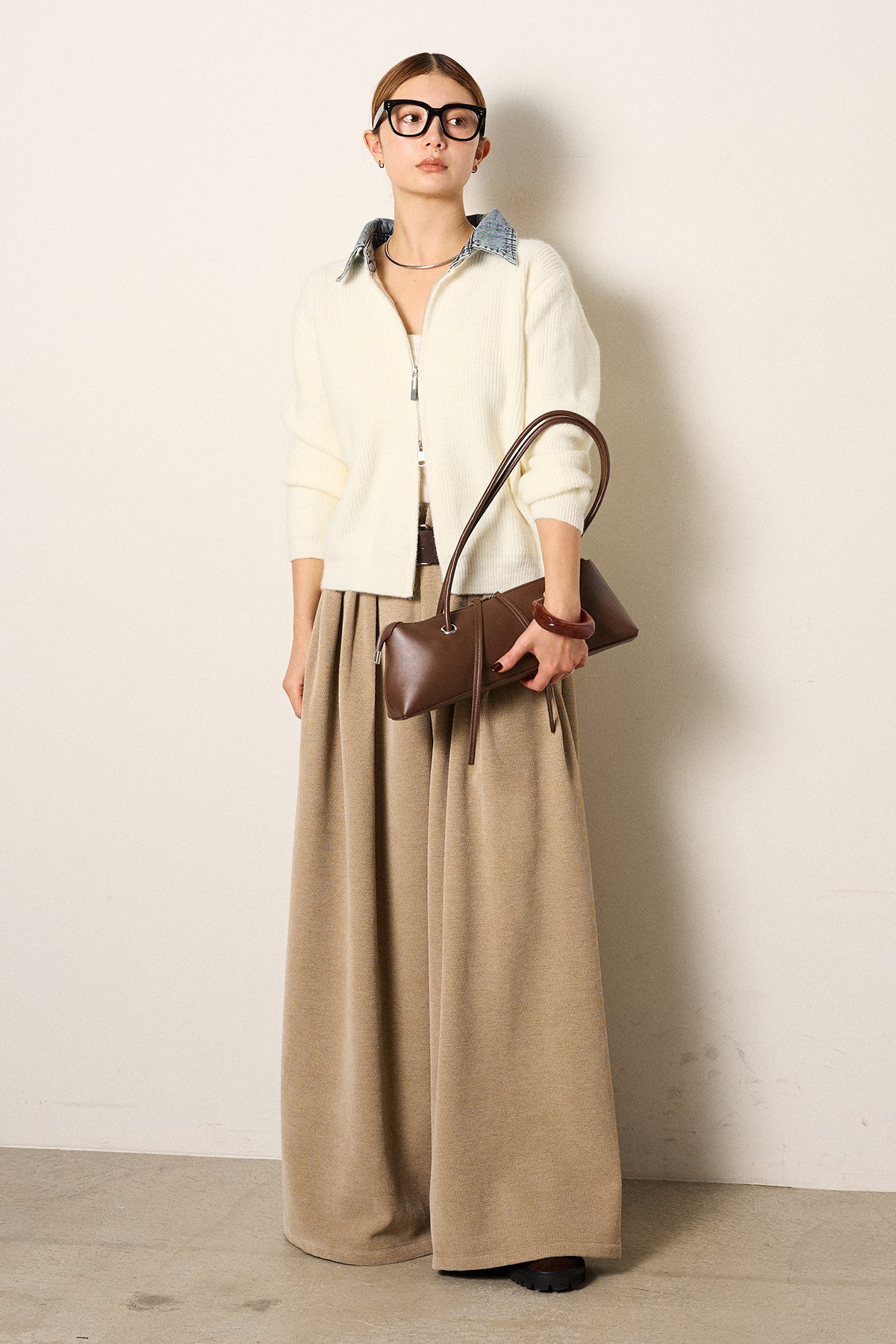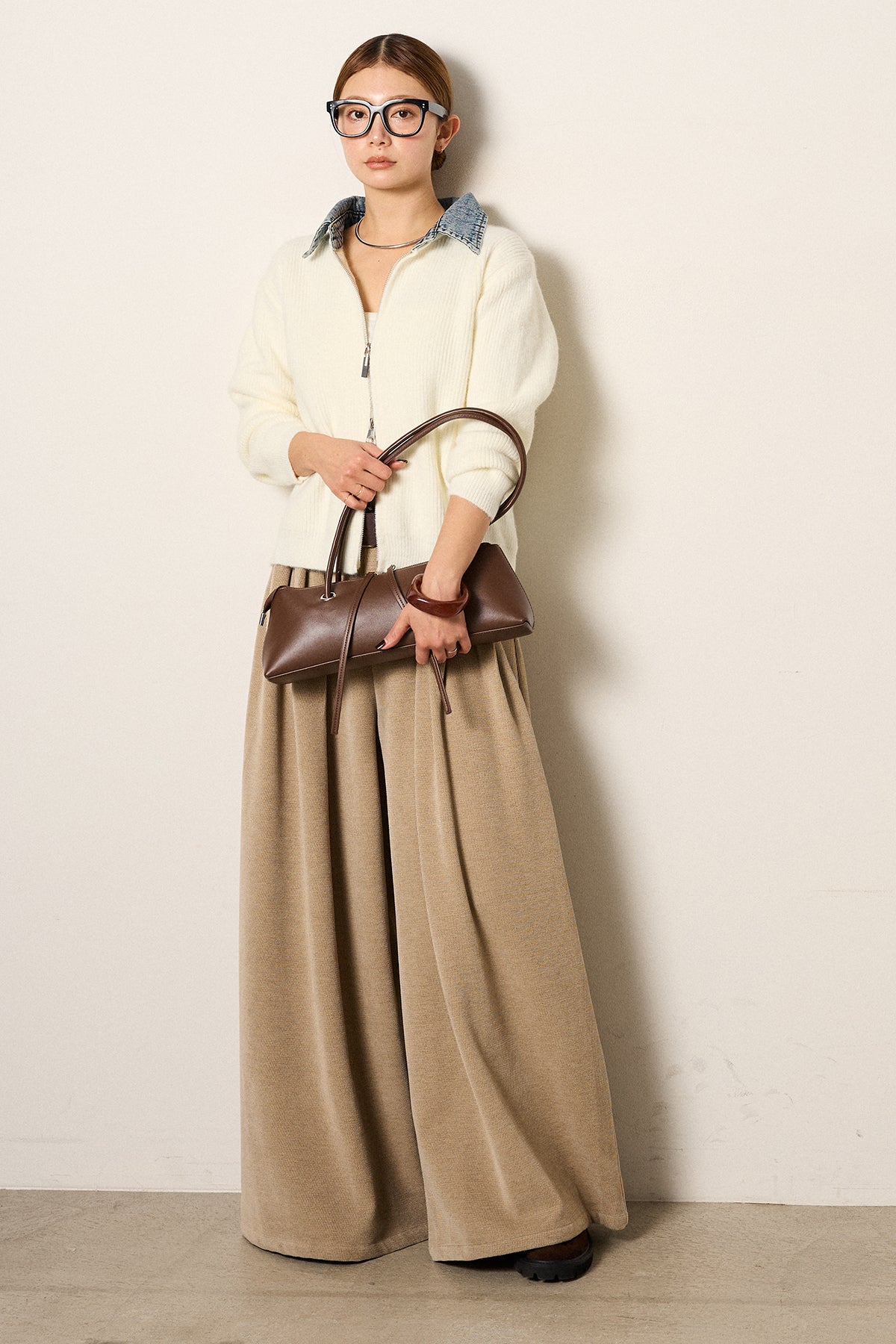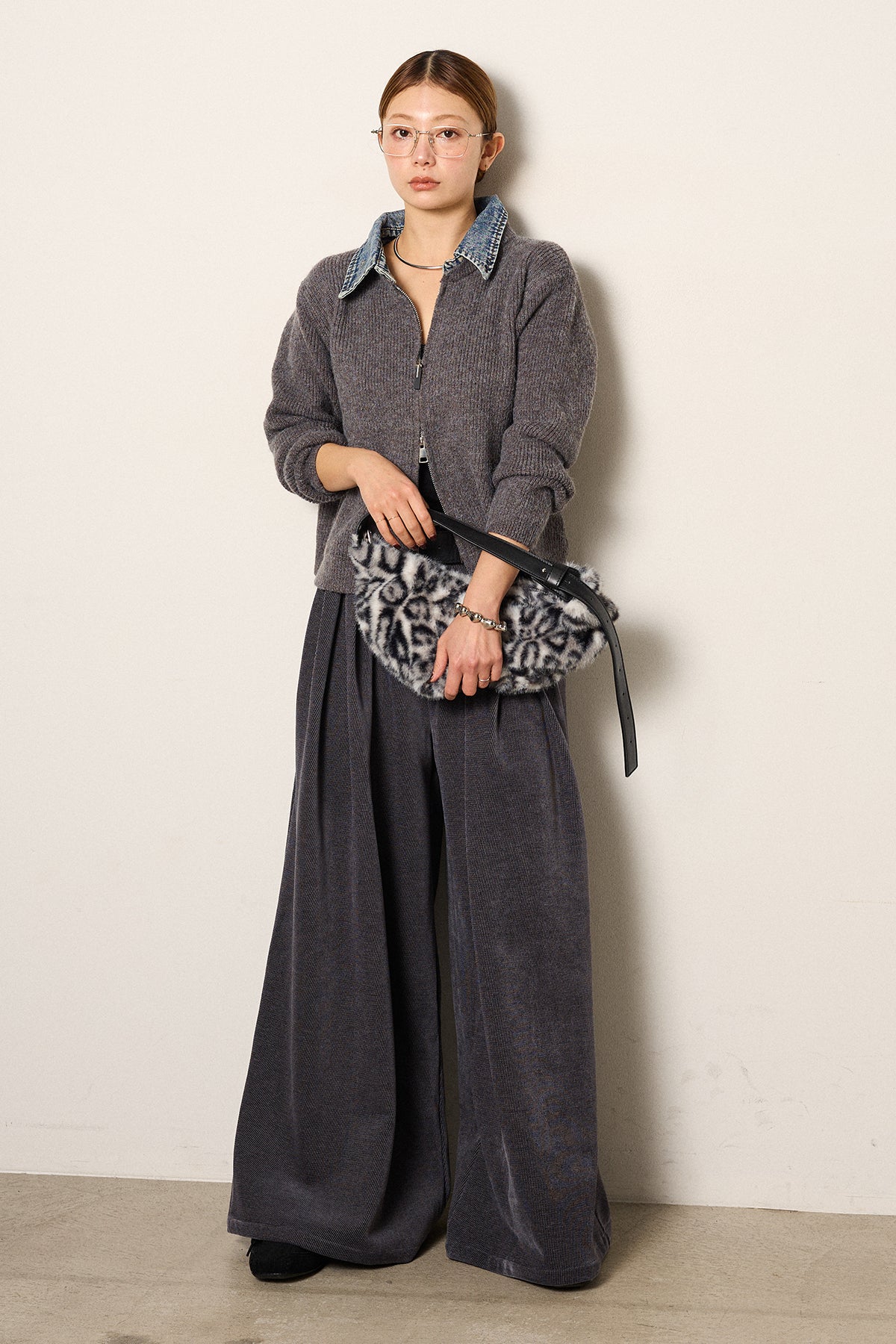 デニム襟ダブルジップニットトップスの他のセットページはこちら