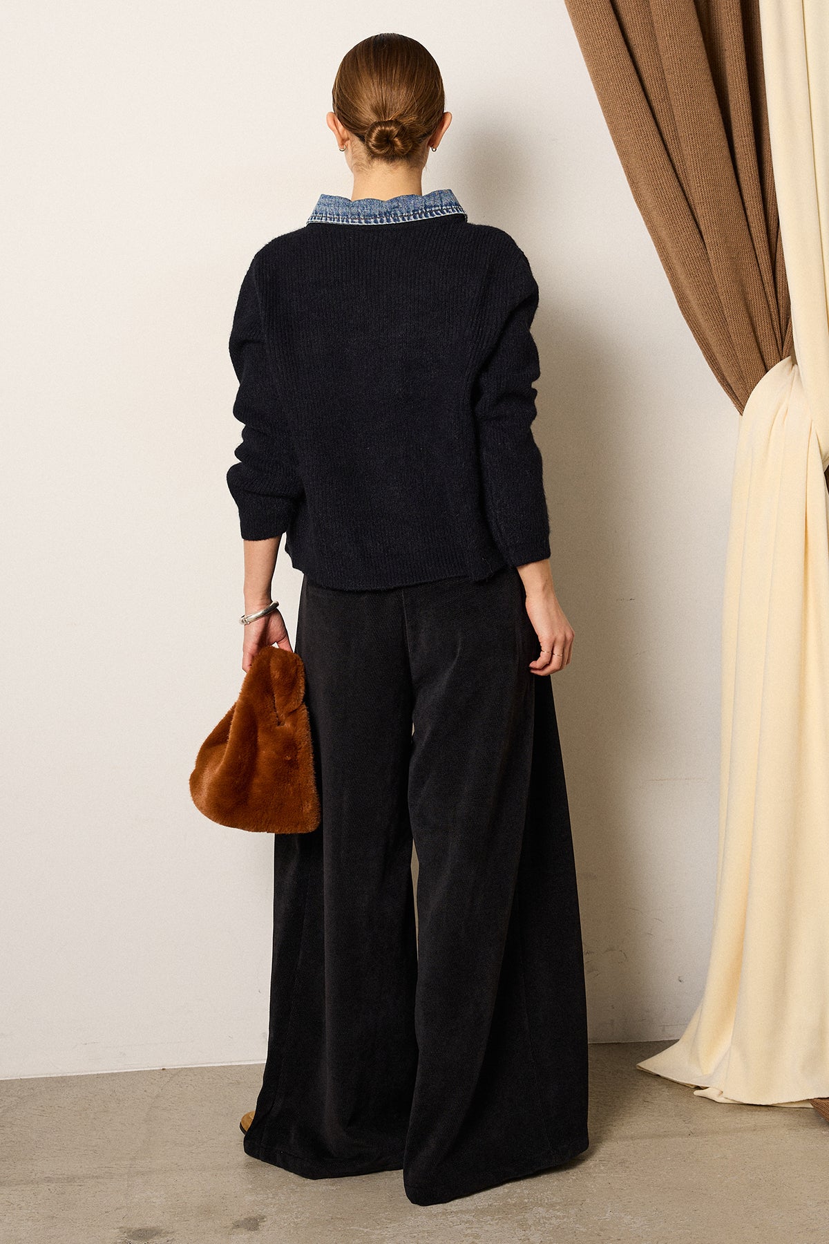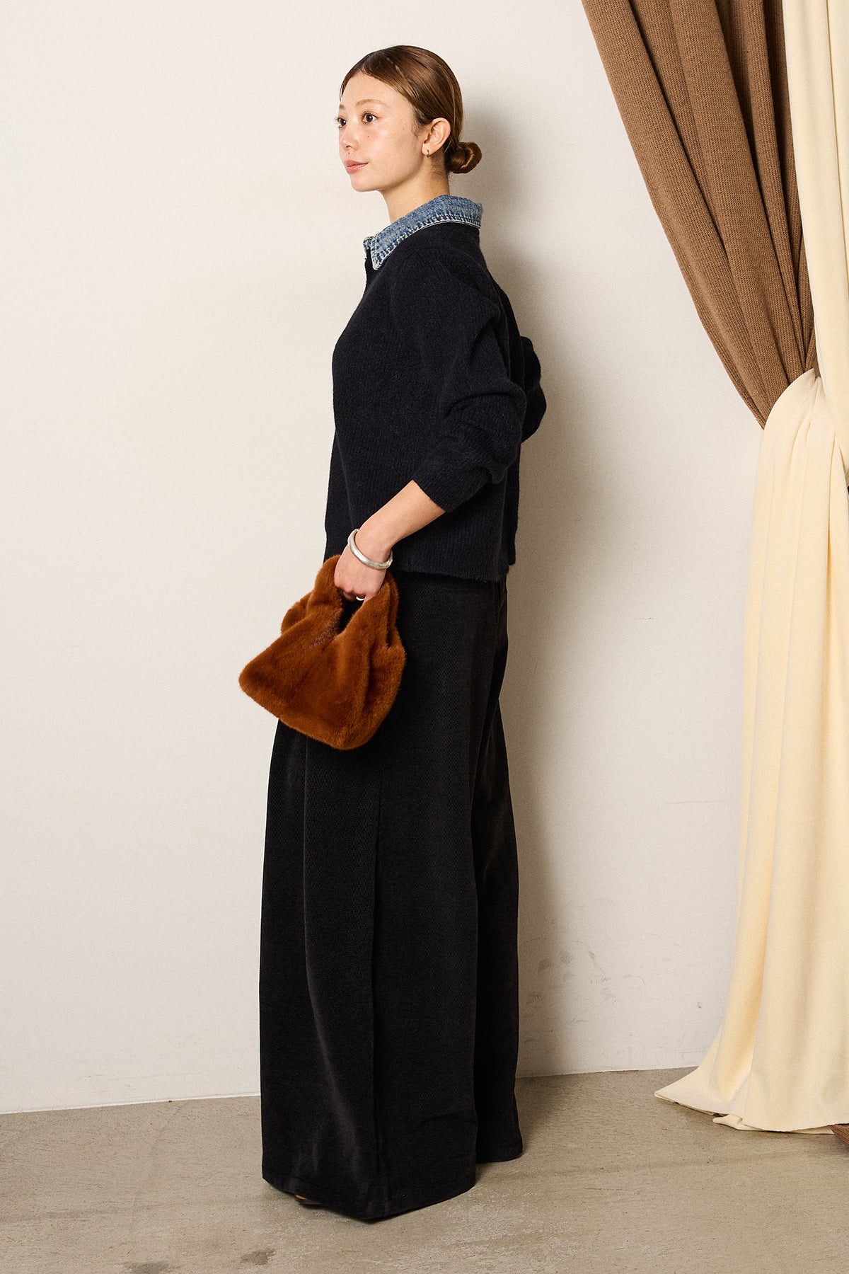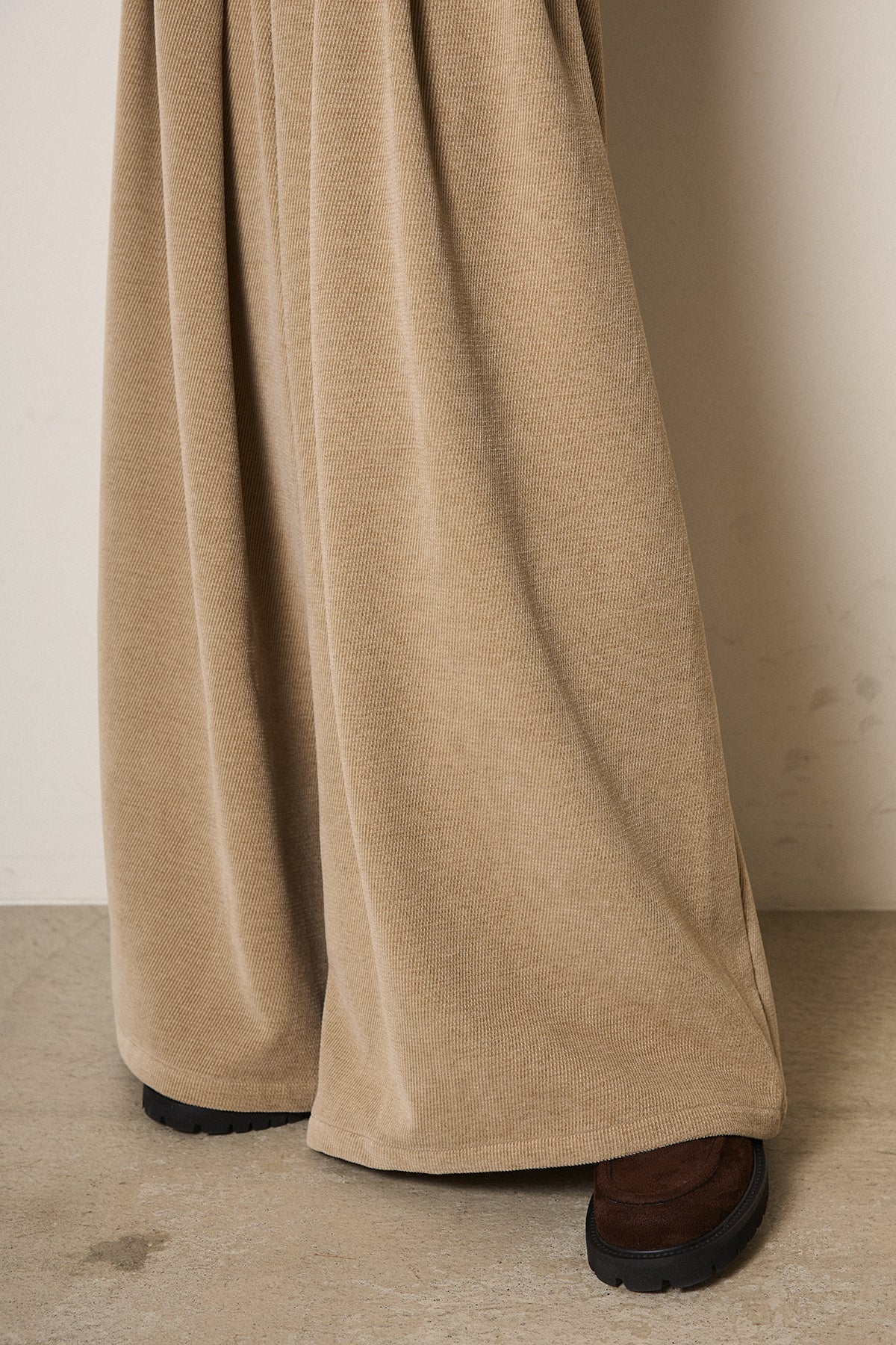 しなやかに落ちるコーデュロイが描くワイドシルエットが魅力の1本。ウエスト周りに施したタックが立体感を生み、歩くたびにゆるやかなドレープが揺れて存在感を放ちます。ベルトループ付きでトップスインもすっきり決まり、ざっくりニットやショート丈のアウターともバランスよくスタイリング可能。ラフさと上品さを両立させたワイドパンツです。