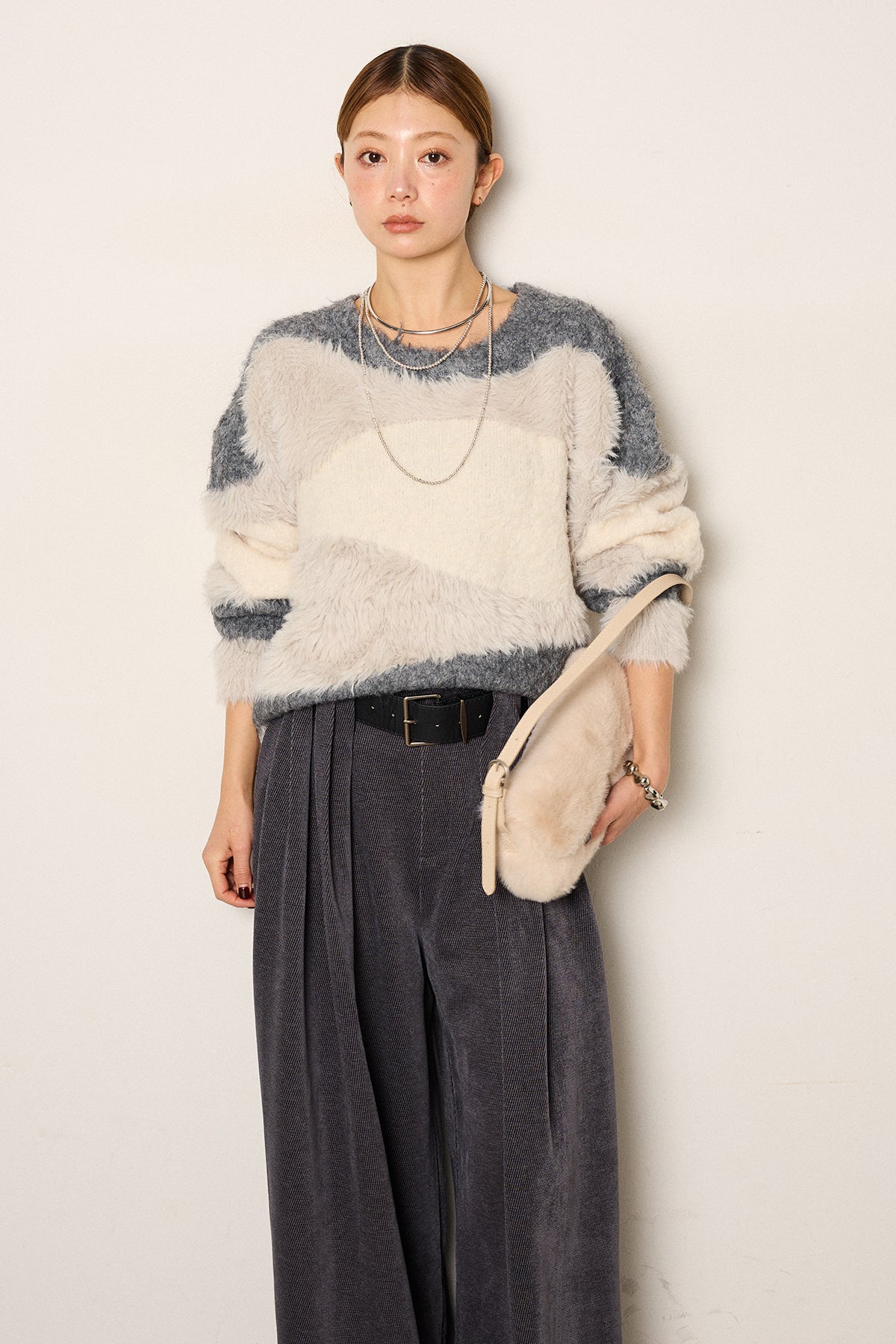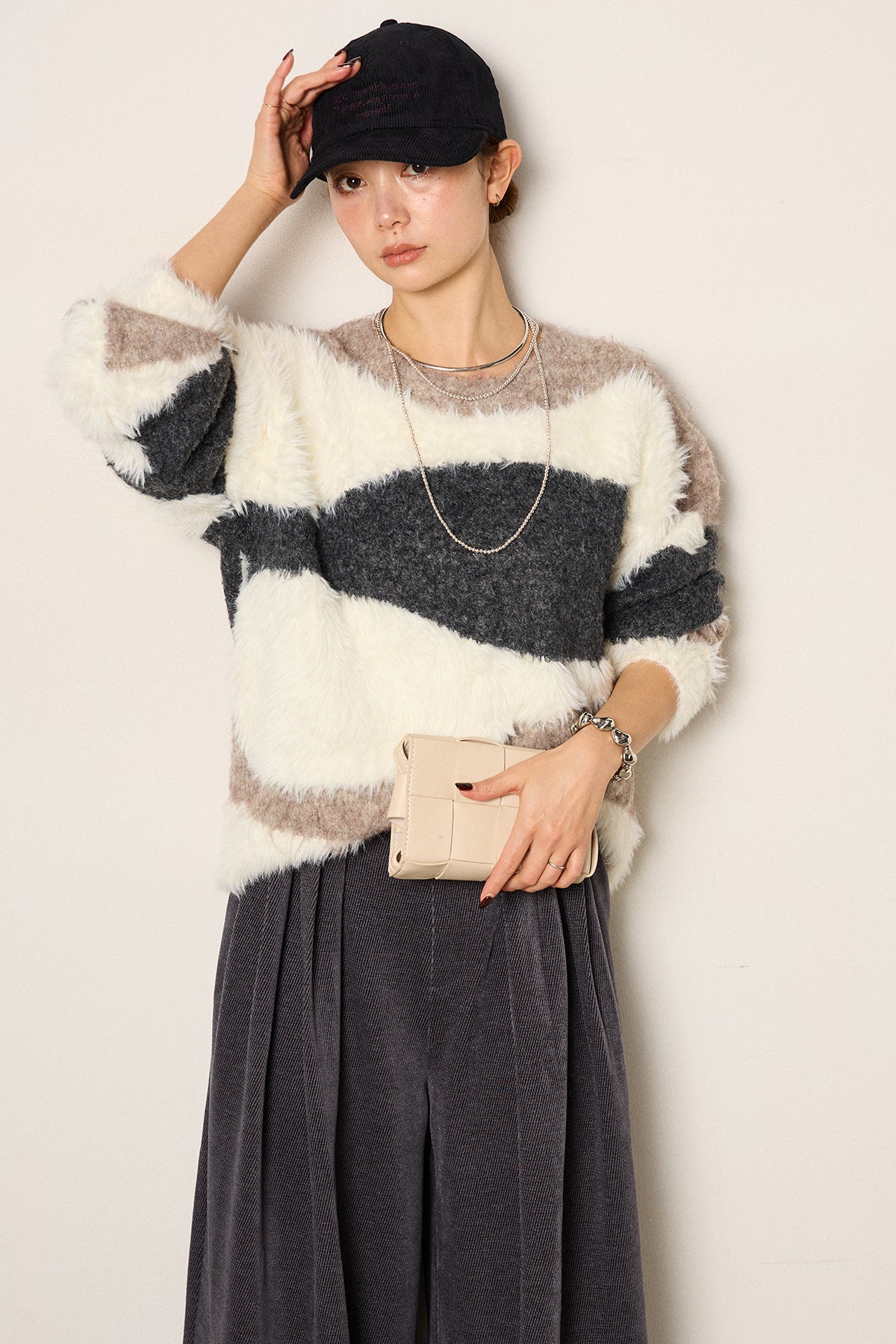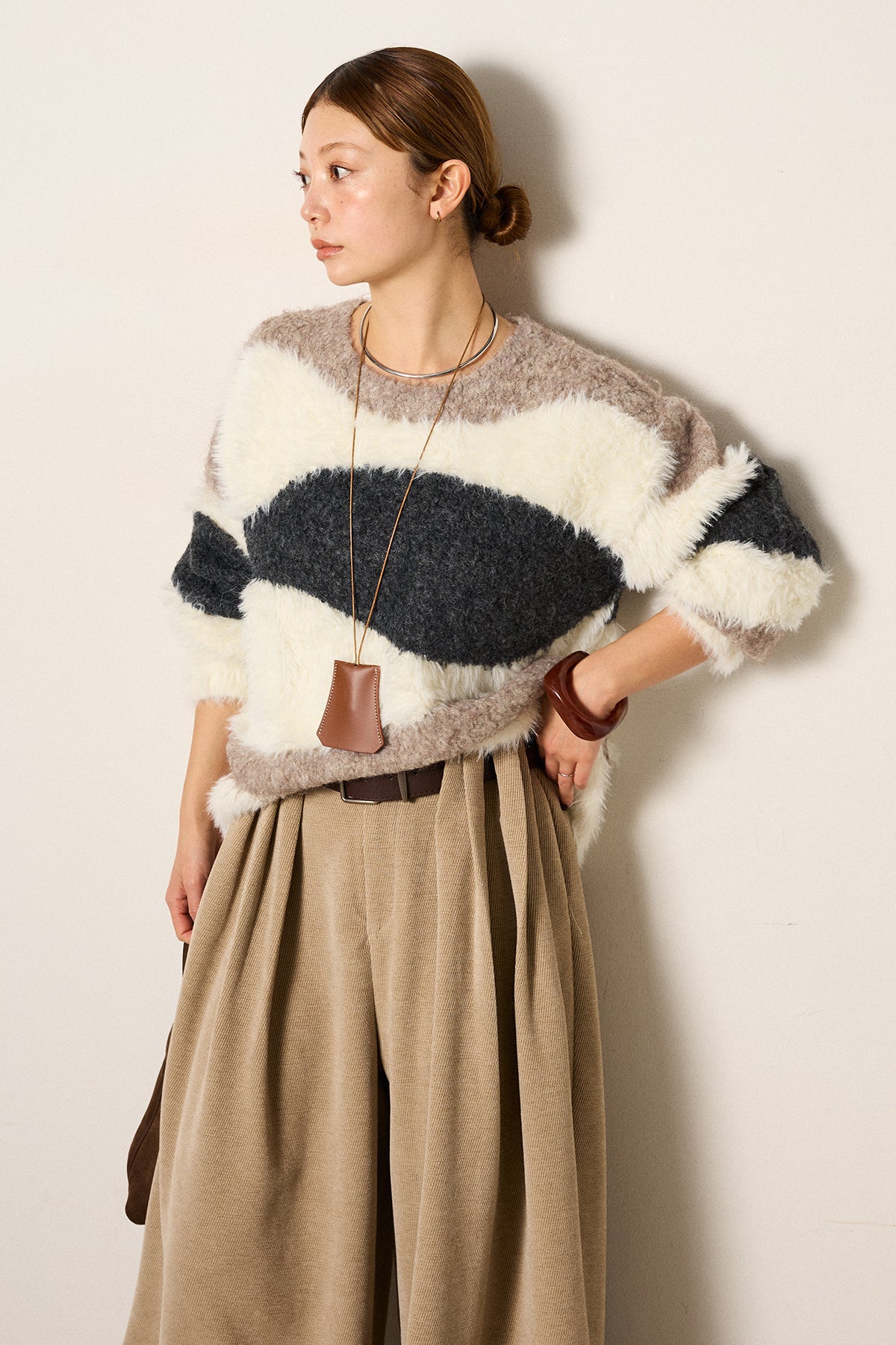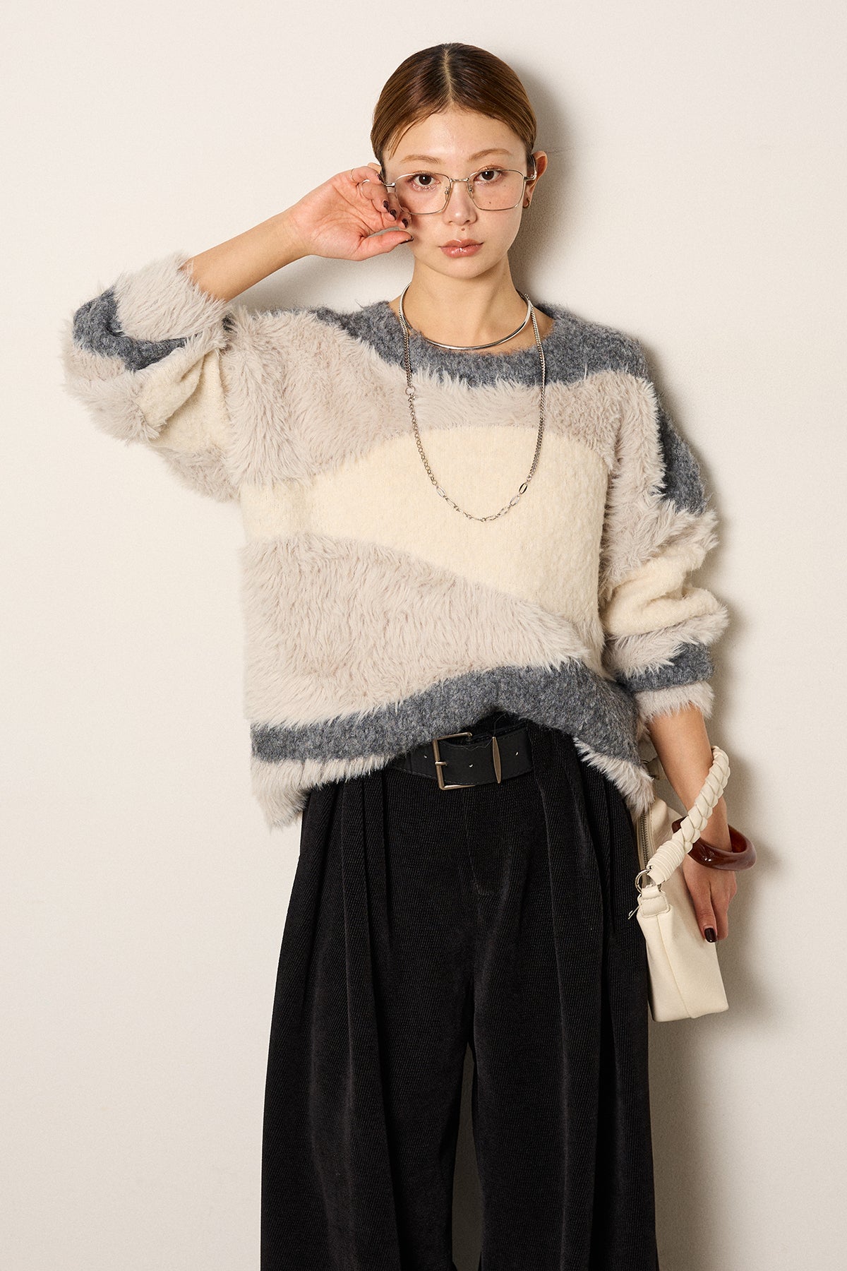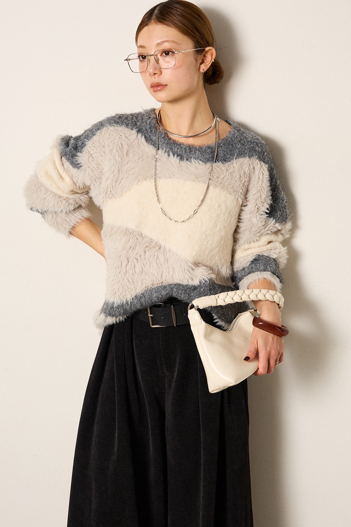 ◆ シャギーウェーブ柄クルーネックニットトップス