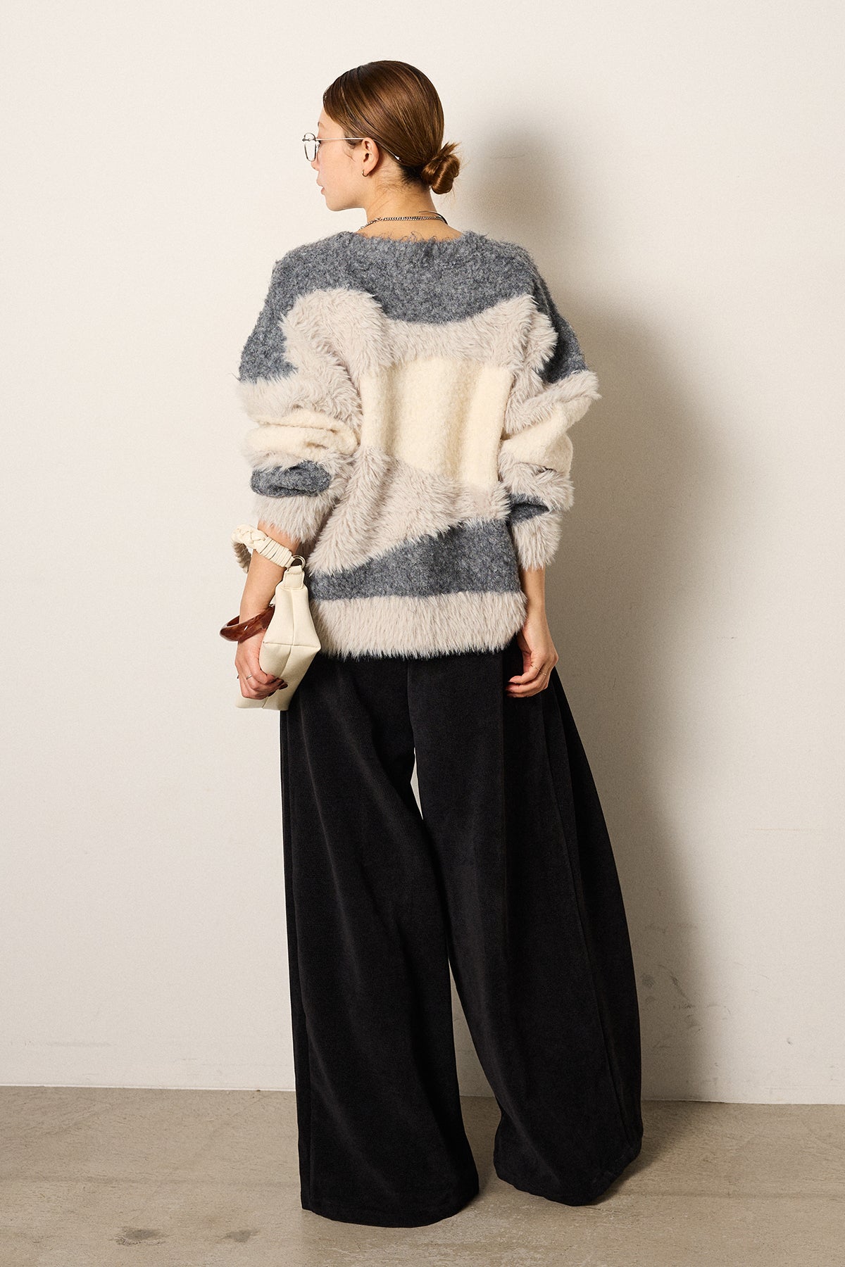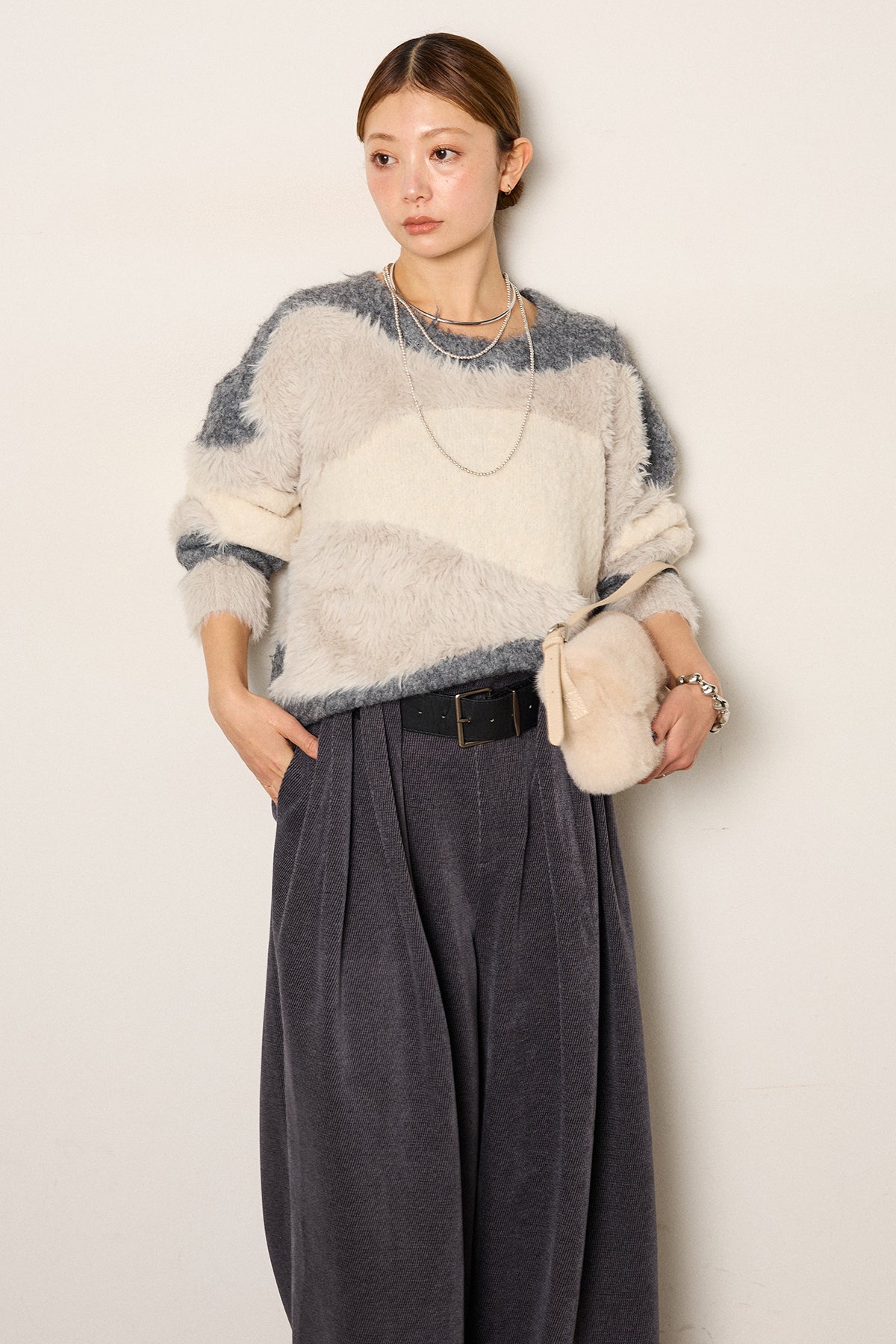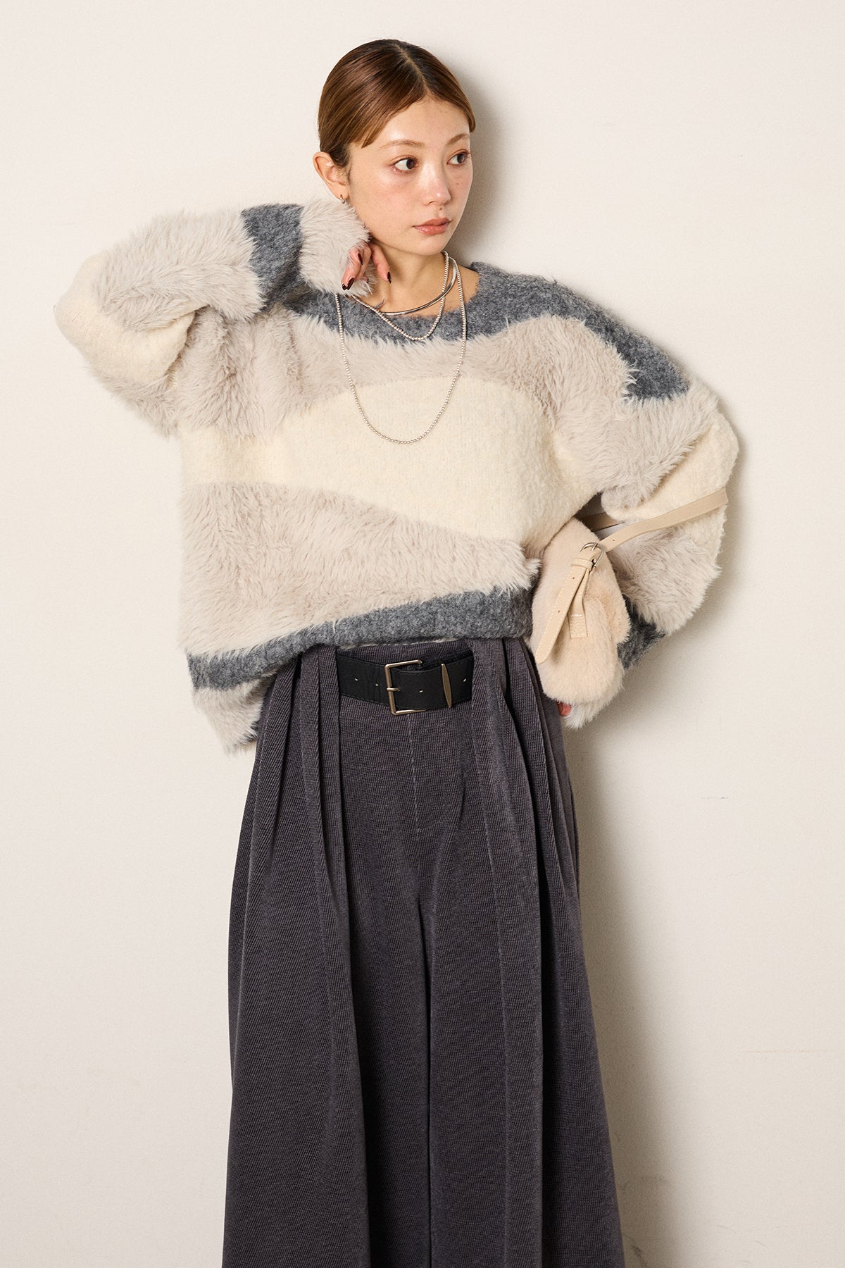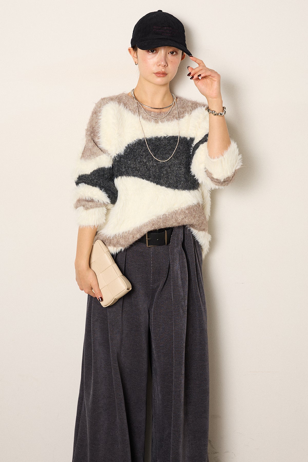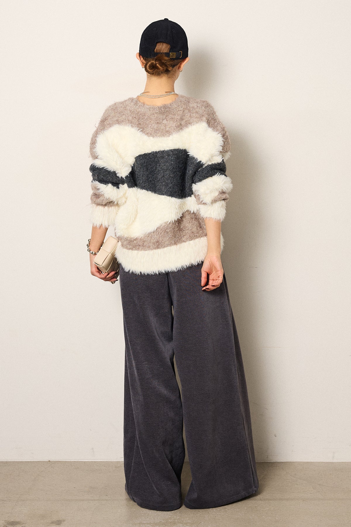◆ シャギーウェーブ柄クルーネックニットトップス