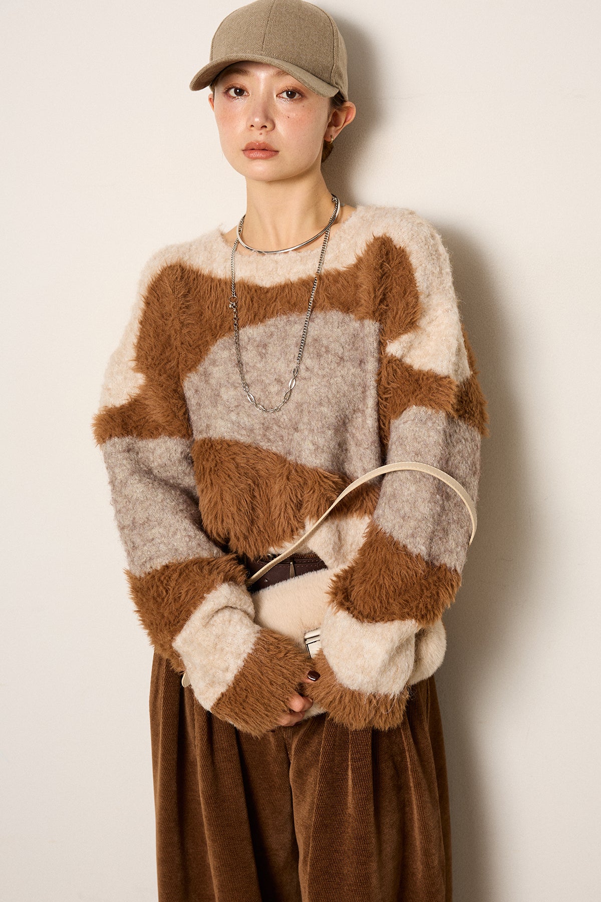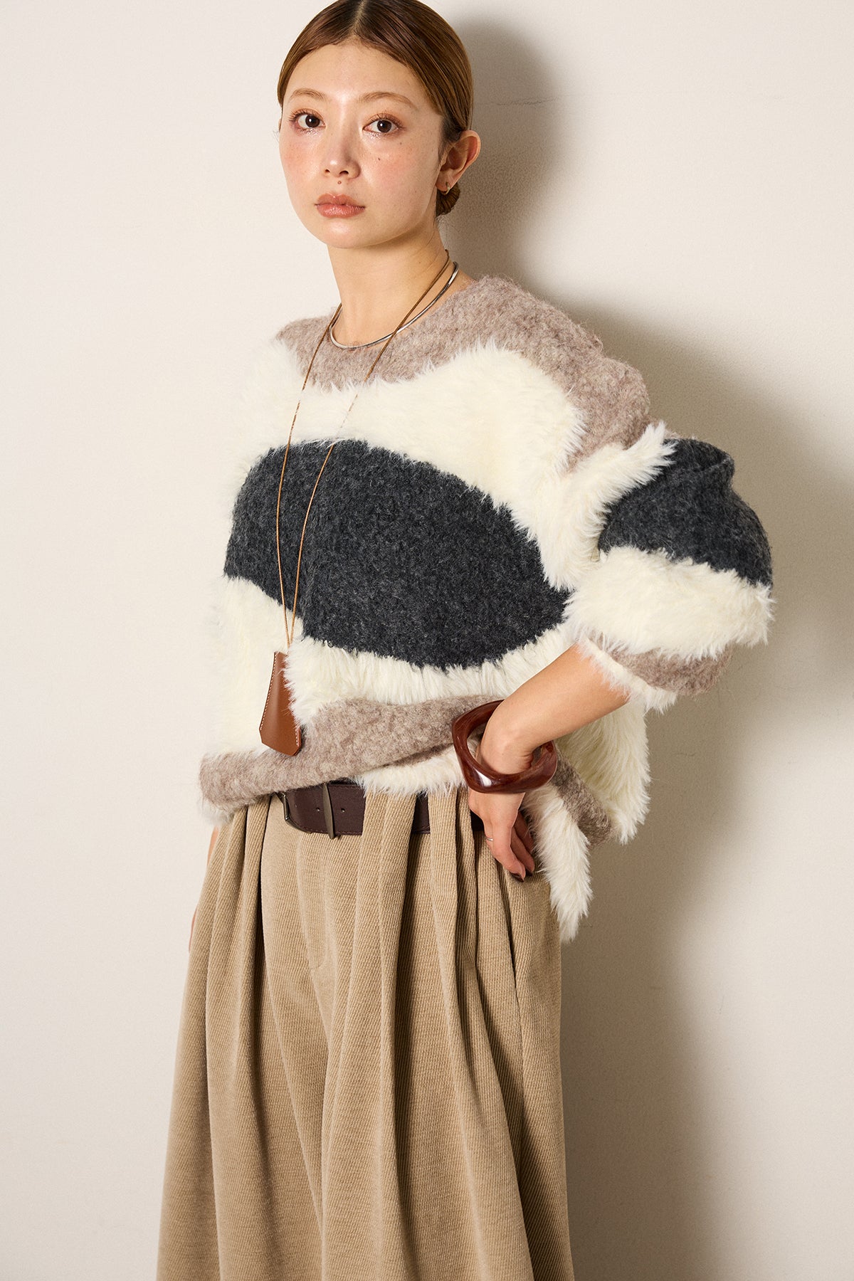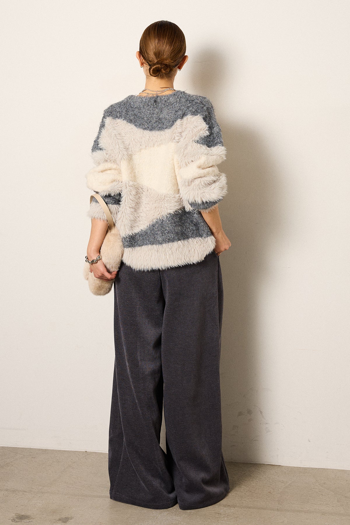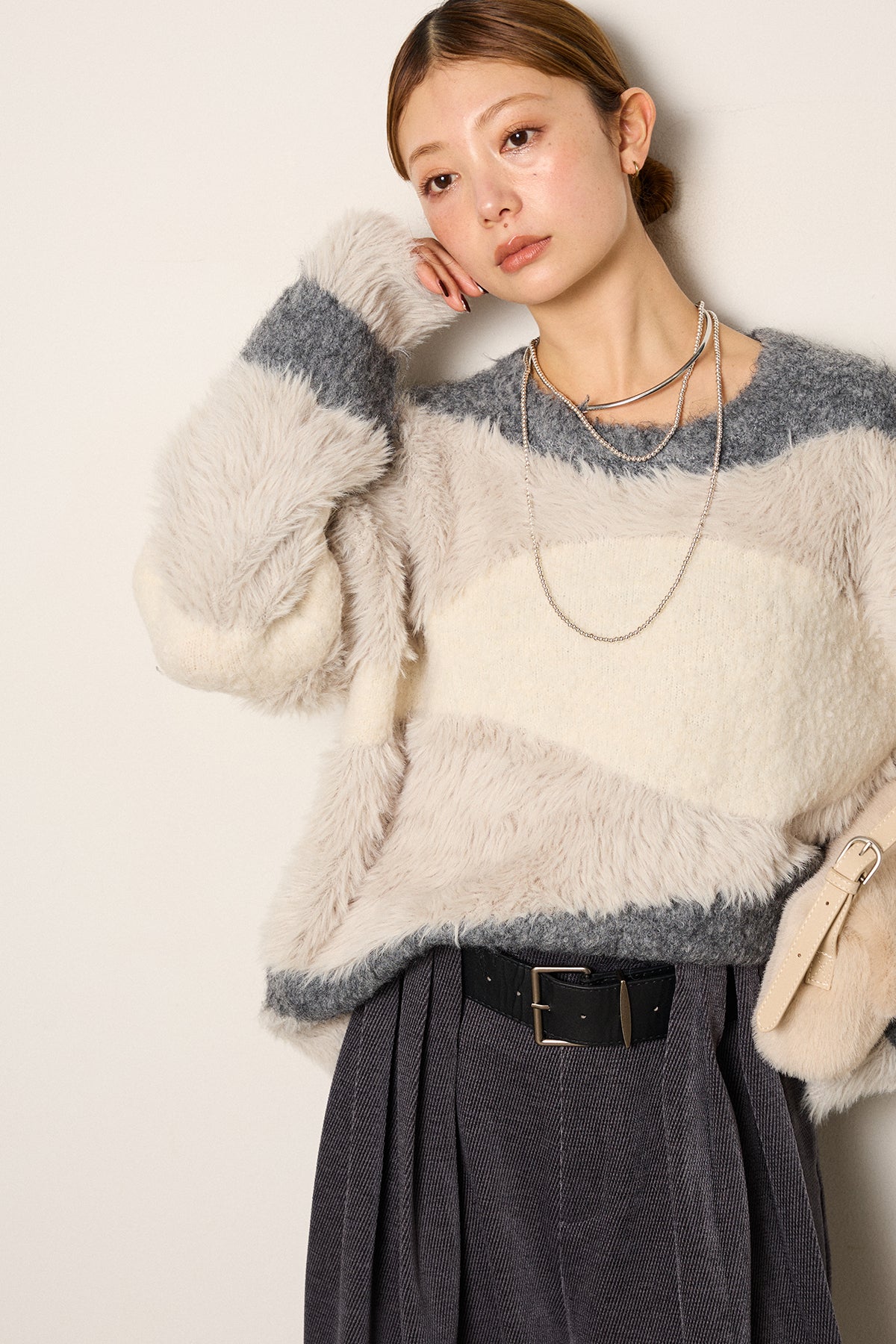 ◆ シャギーウェーブ柄クルーネックニットトップス