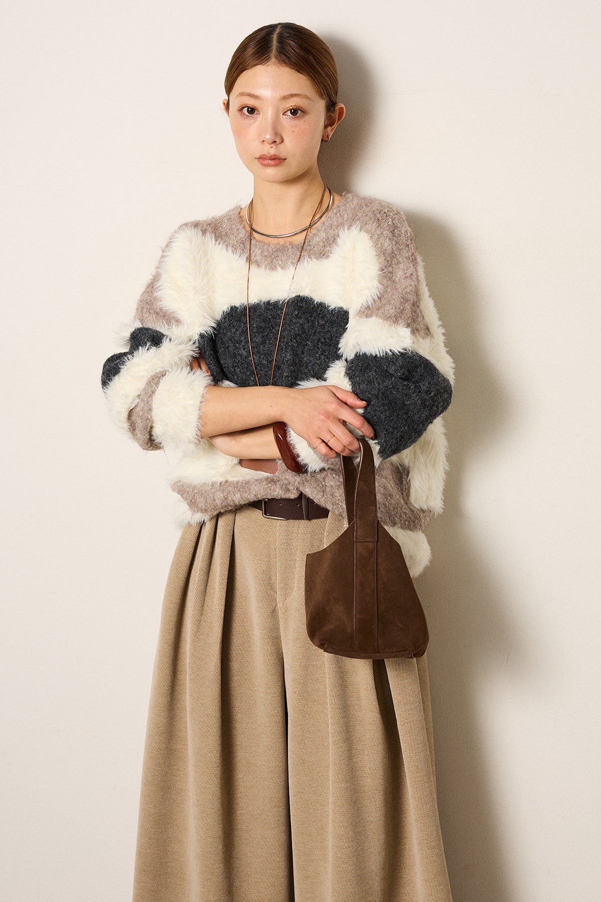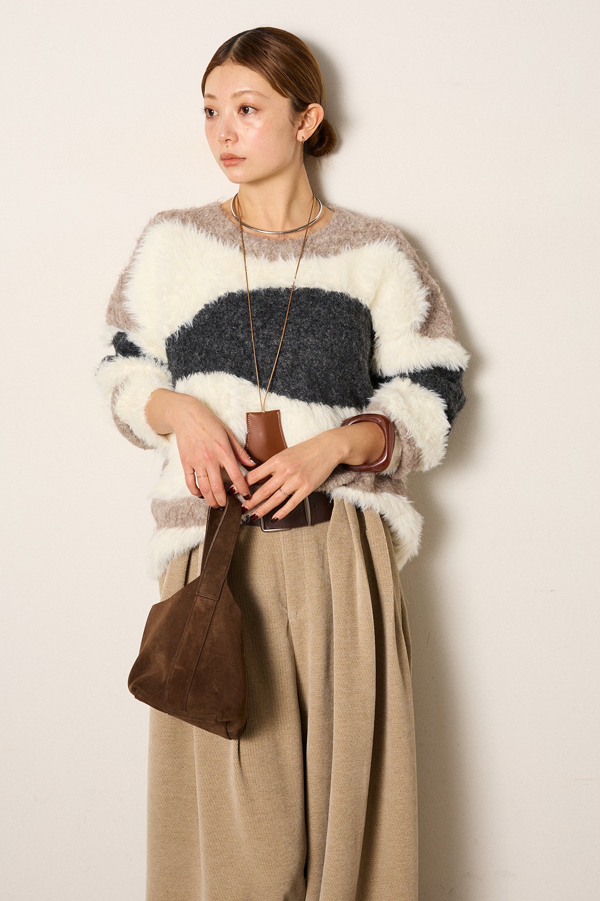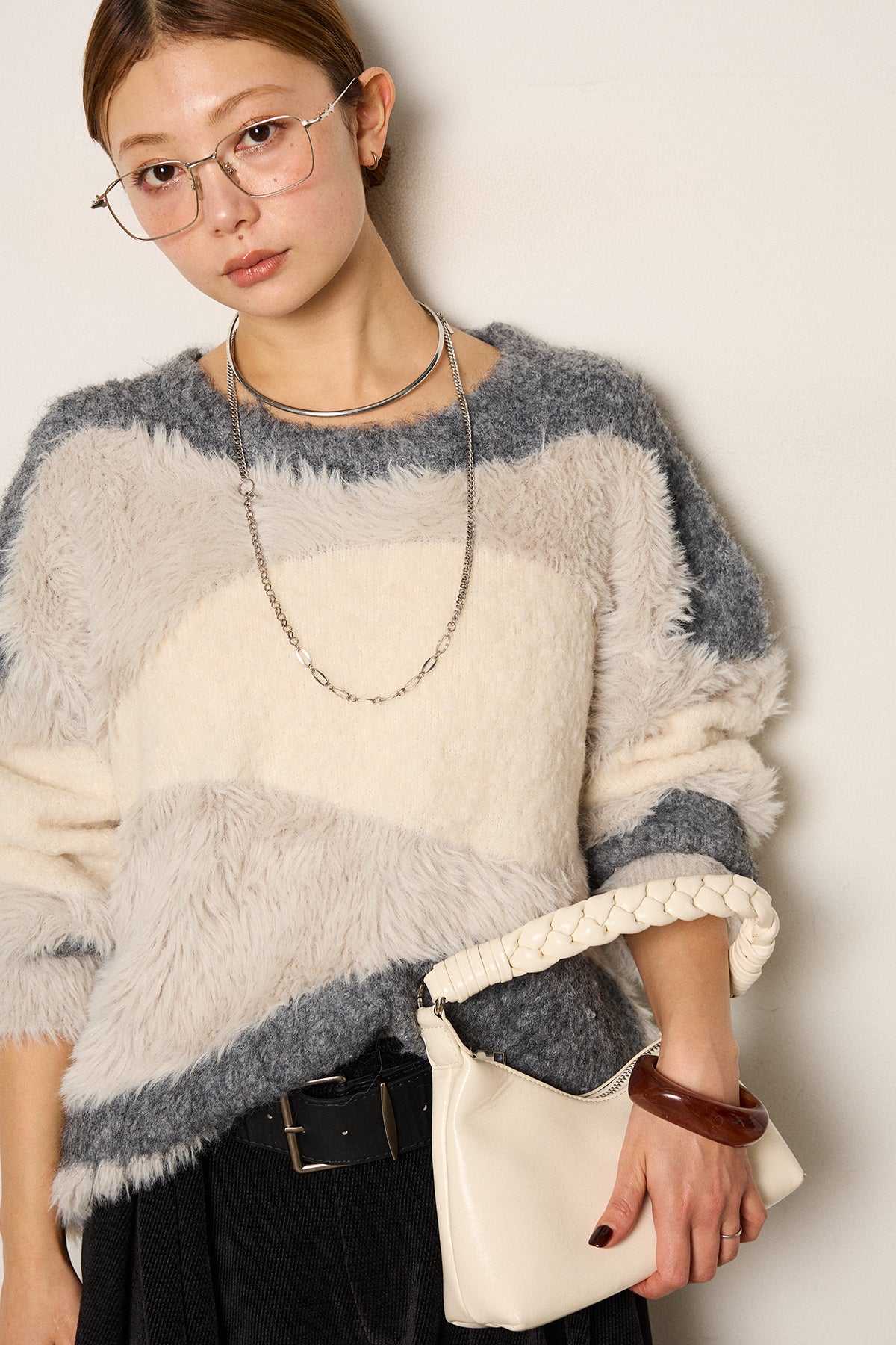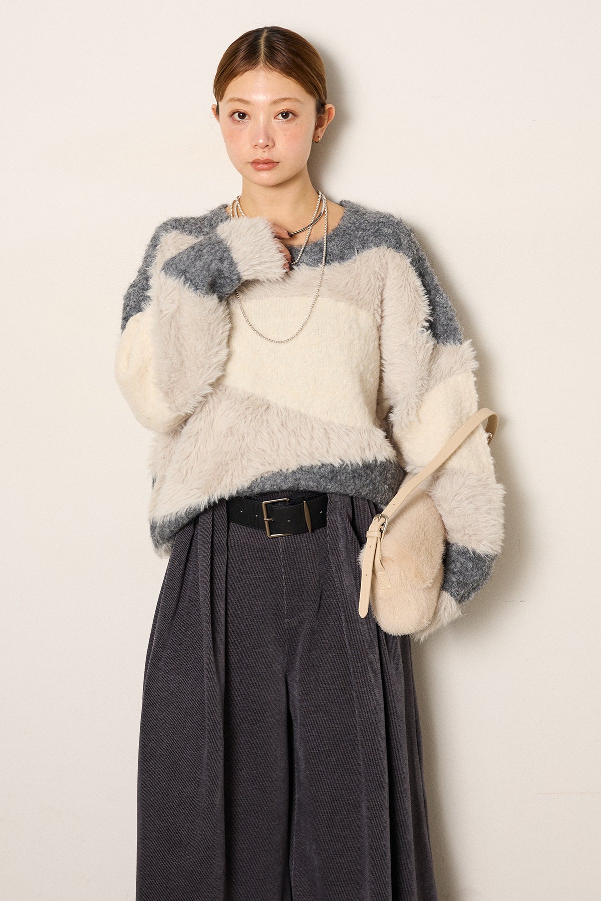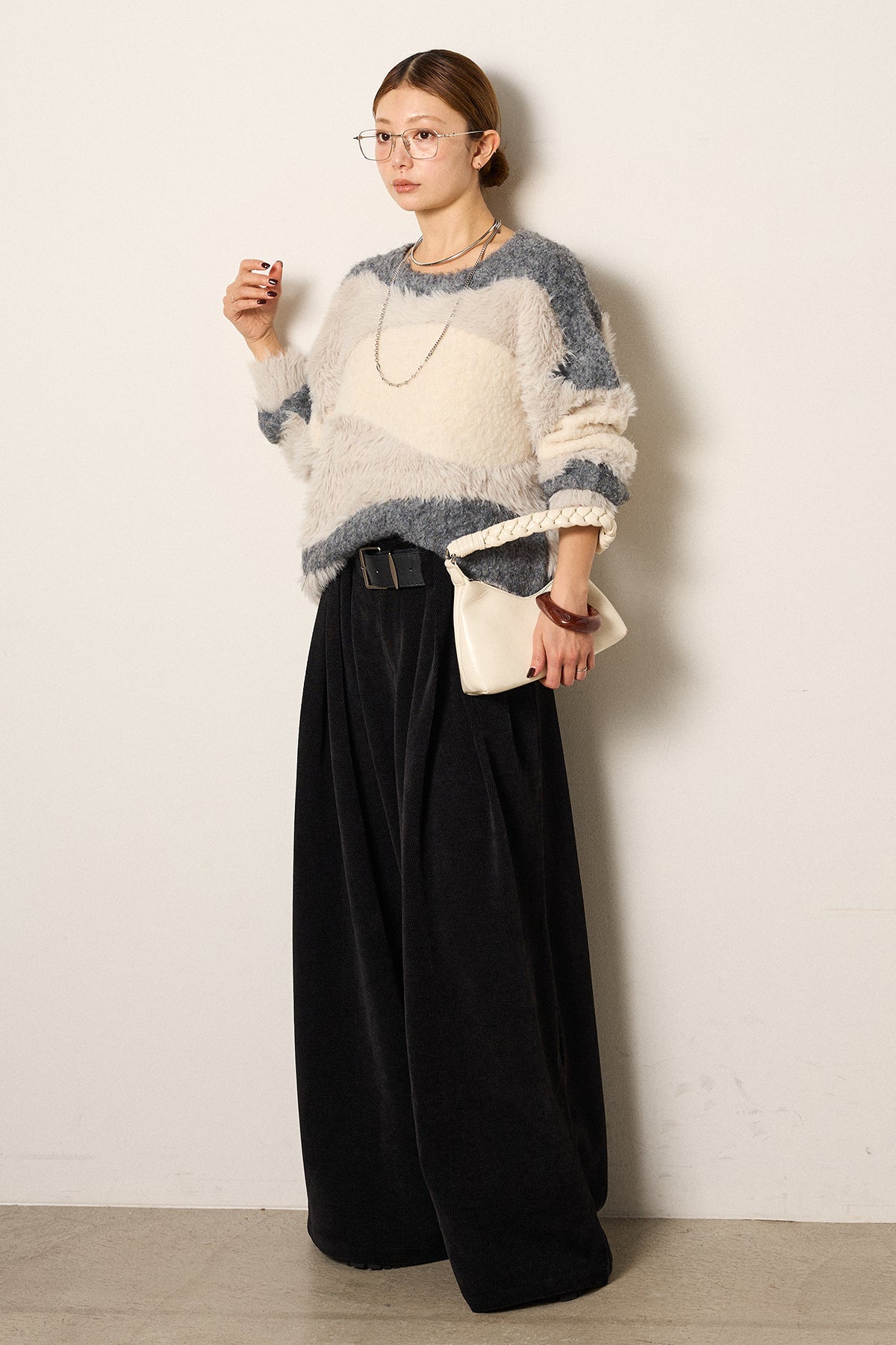 ◆ シャギーウェーブ柄クルーネックニットトップス