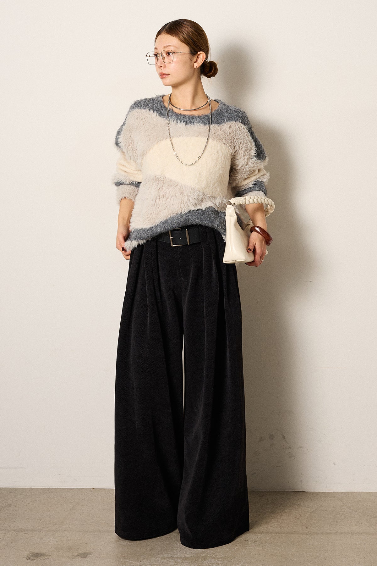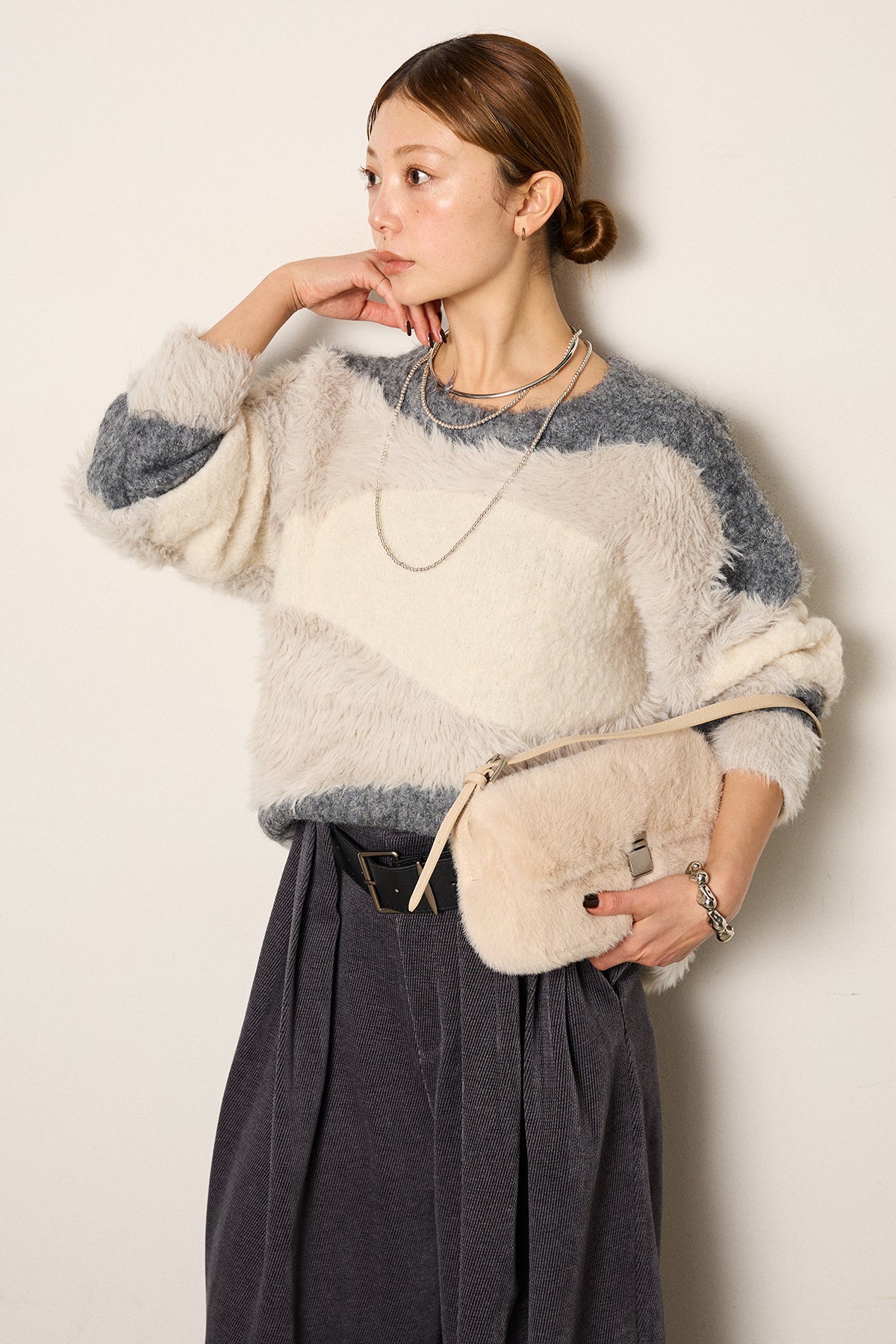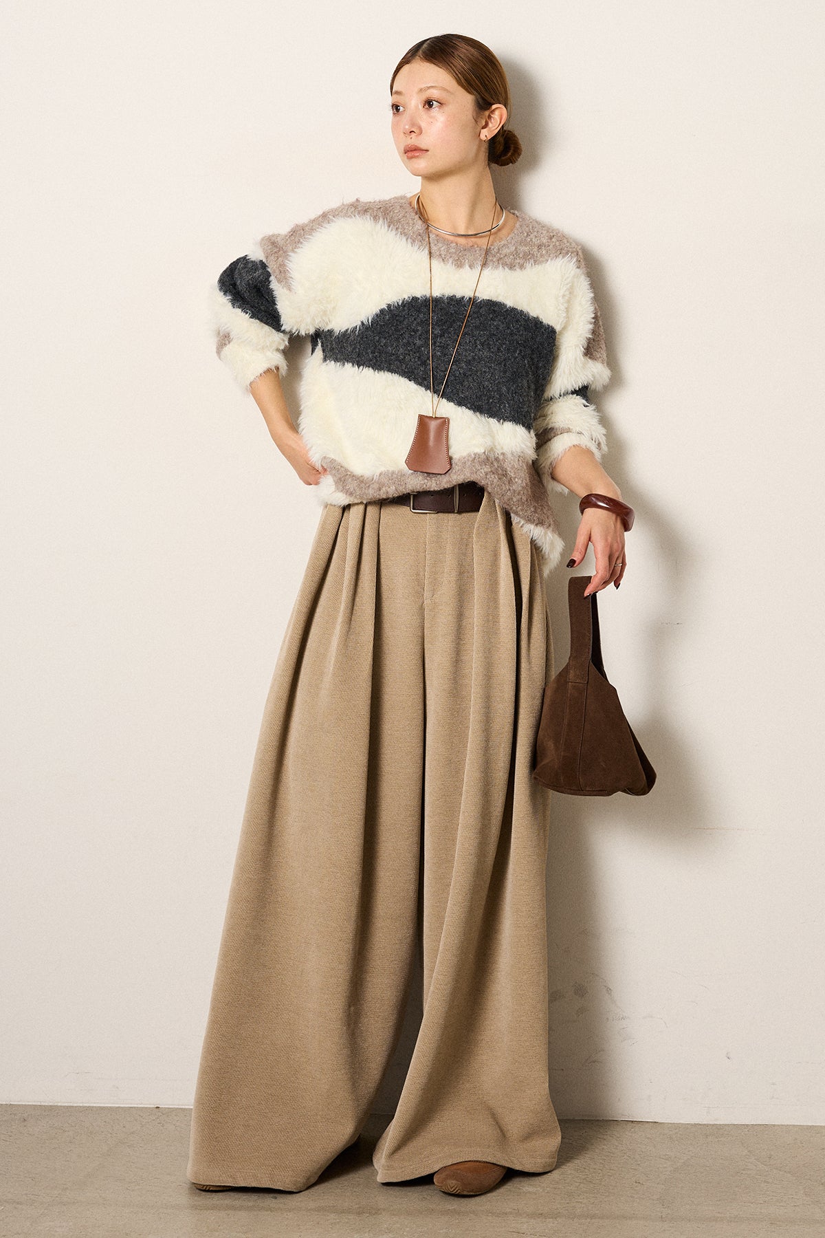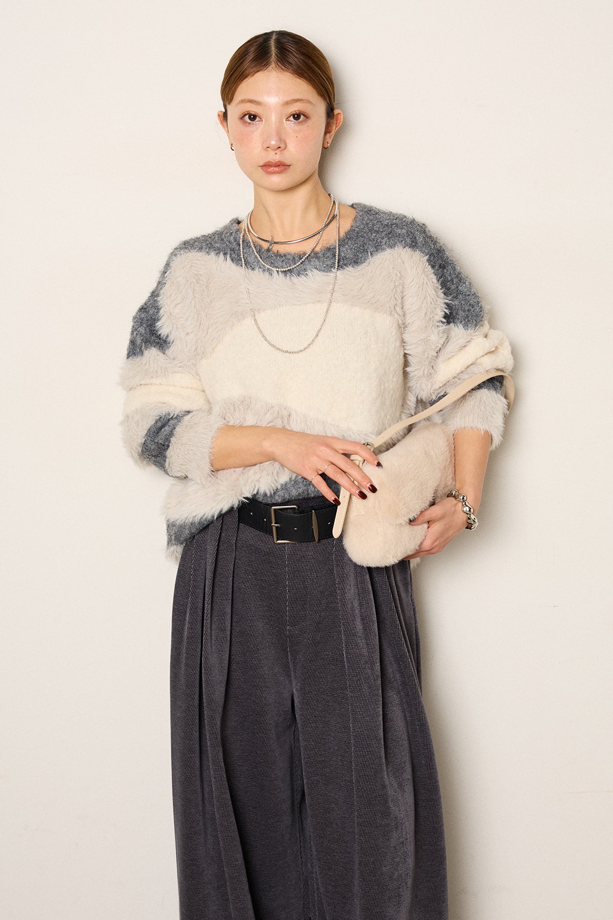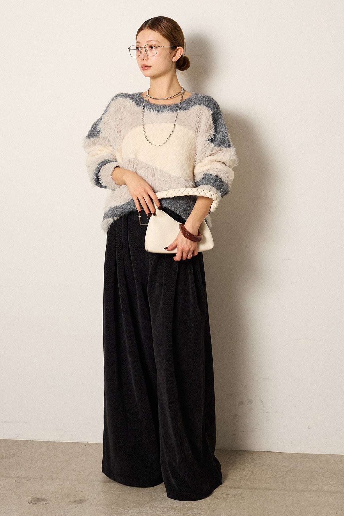 ◆ シャギーウェーブ柄クルーネックニットトップス