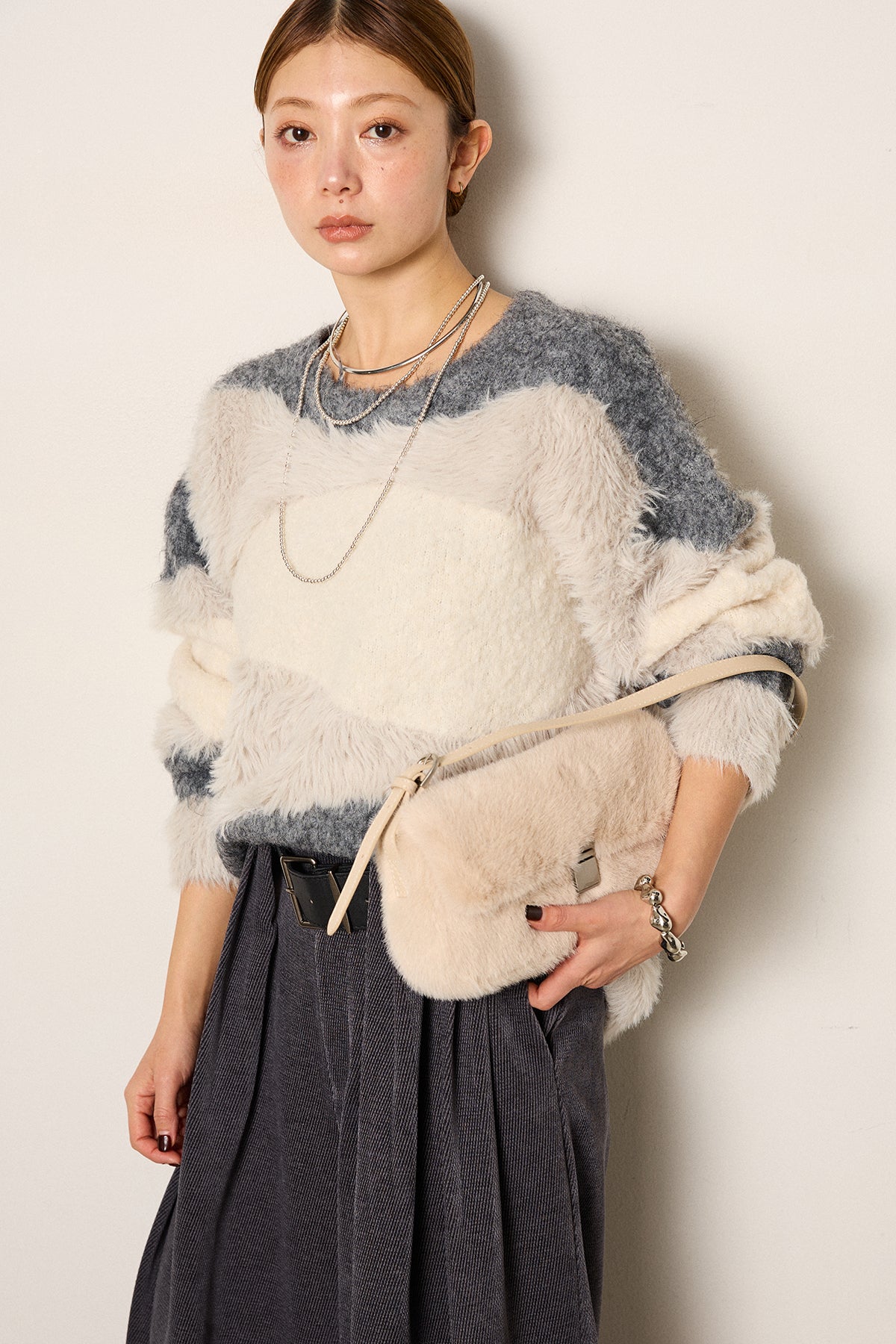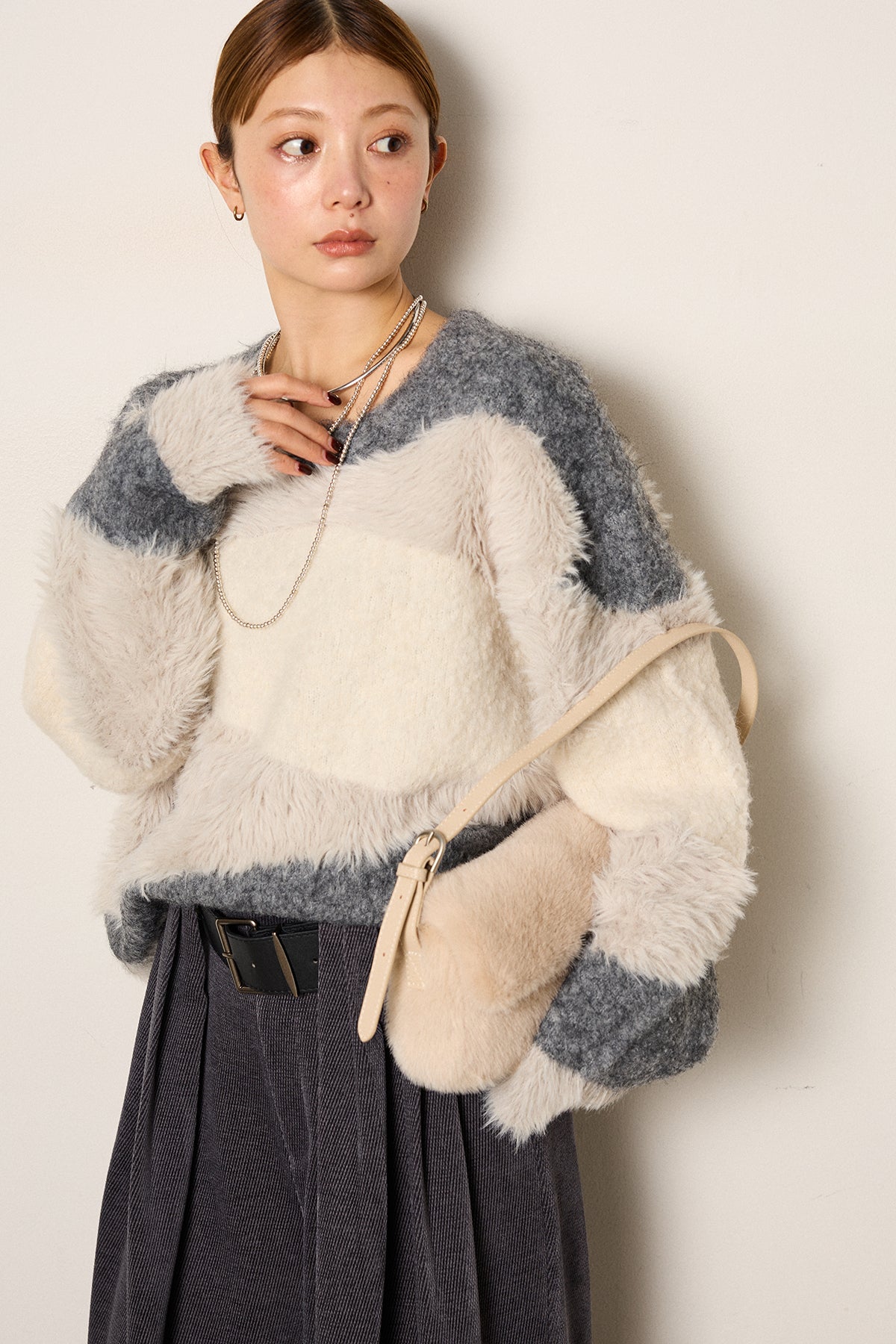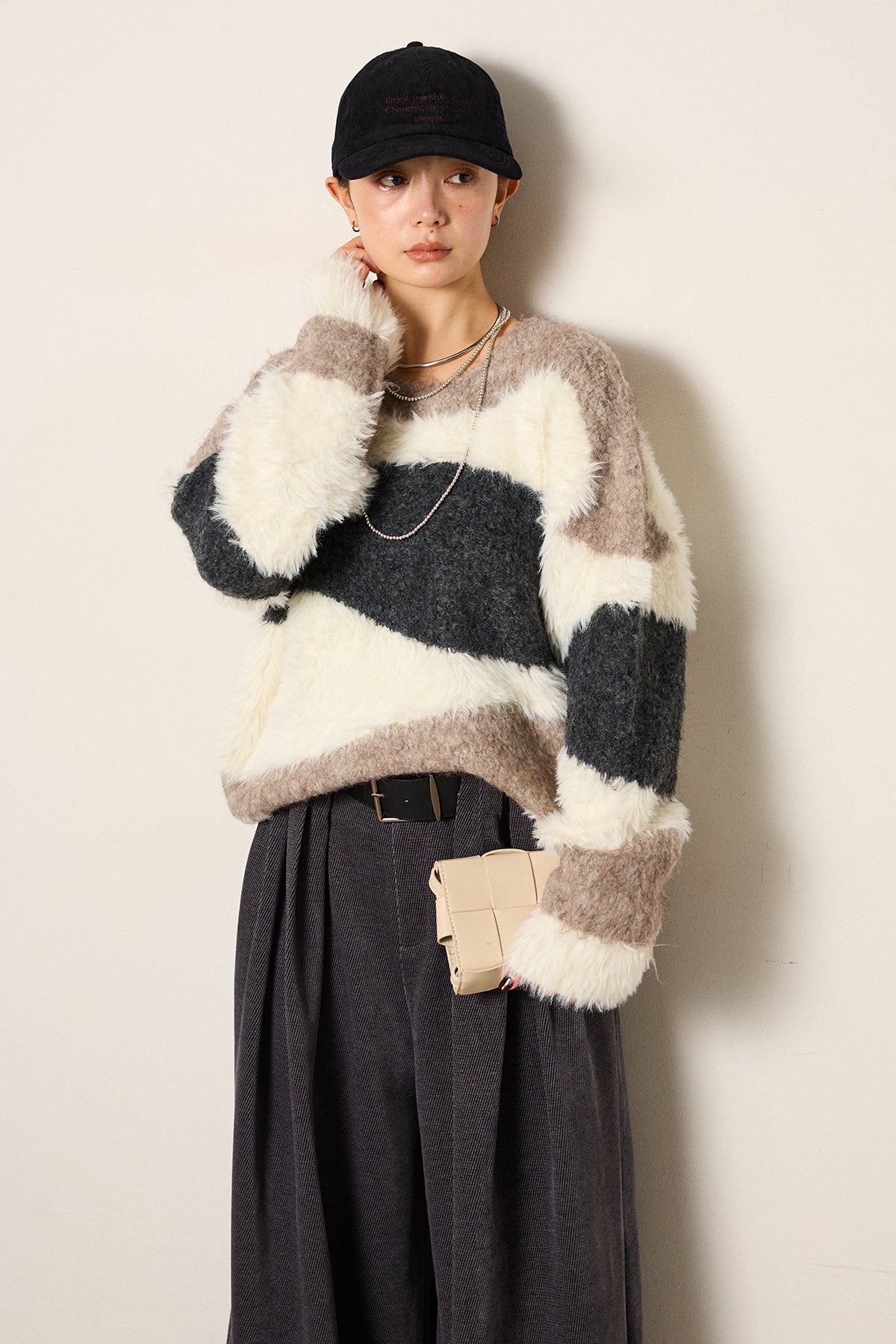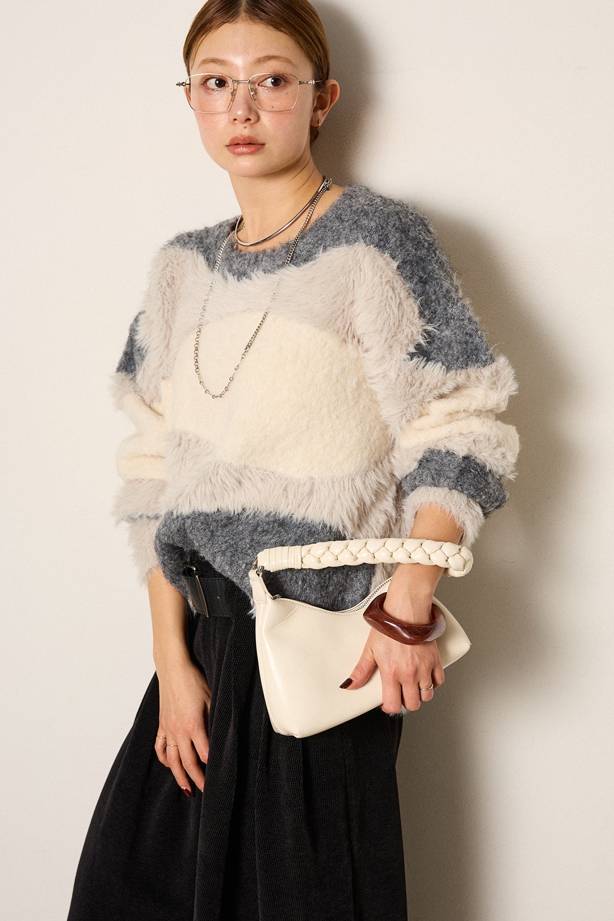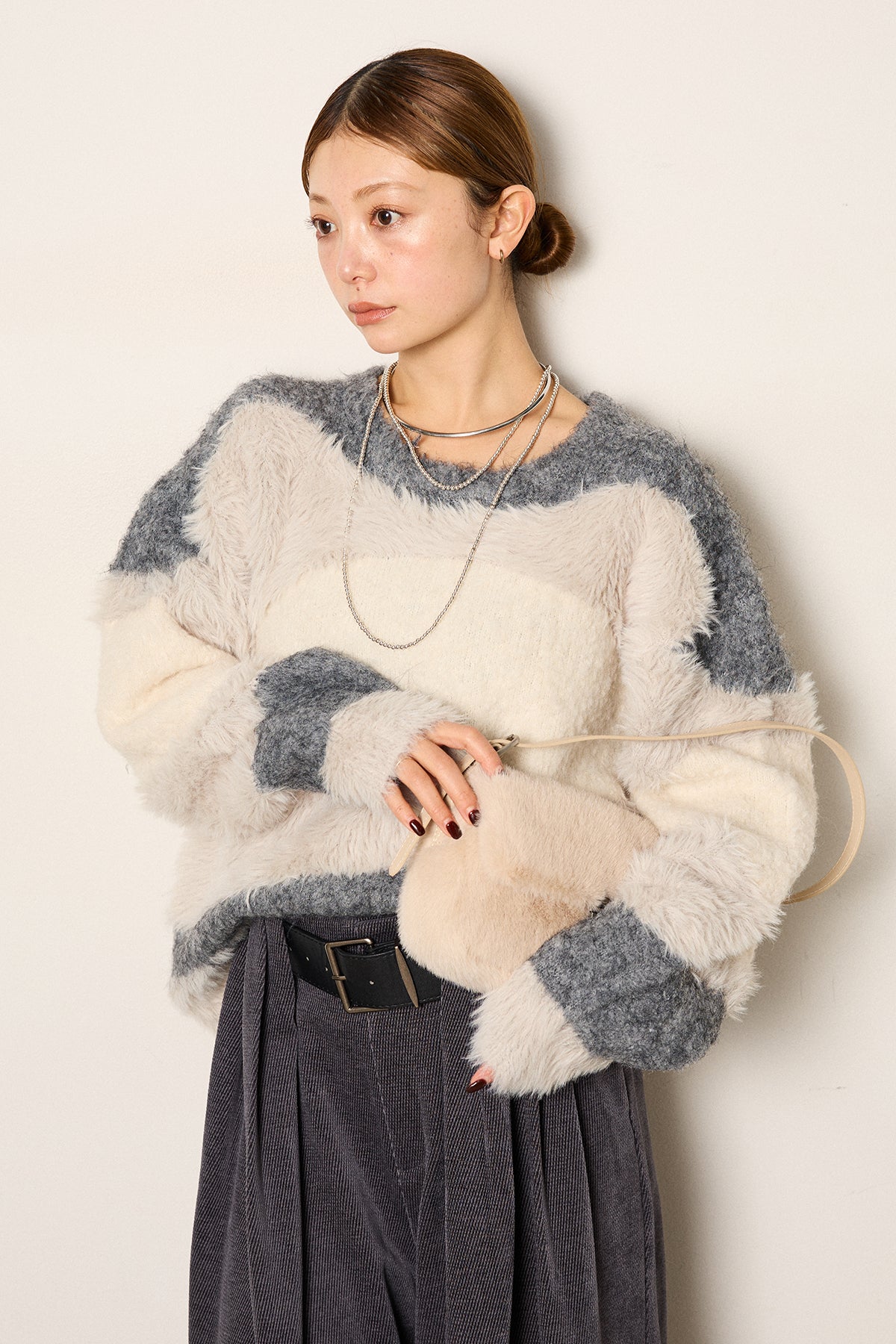 ◆ シャギーウェーブ柄クルーネックニットトップス