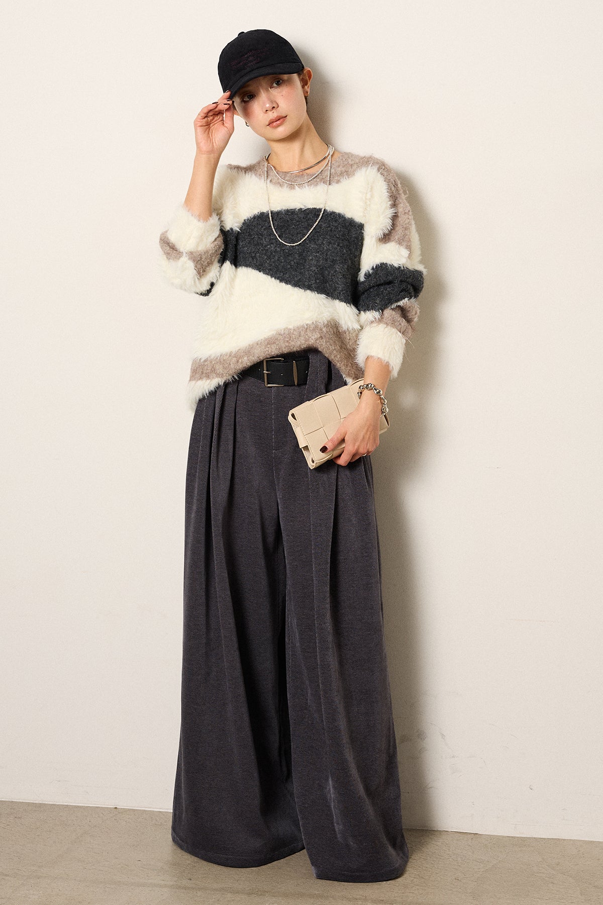 シャギーウェーブ柄クルーネックニットトップスの他のセットページはこちら
