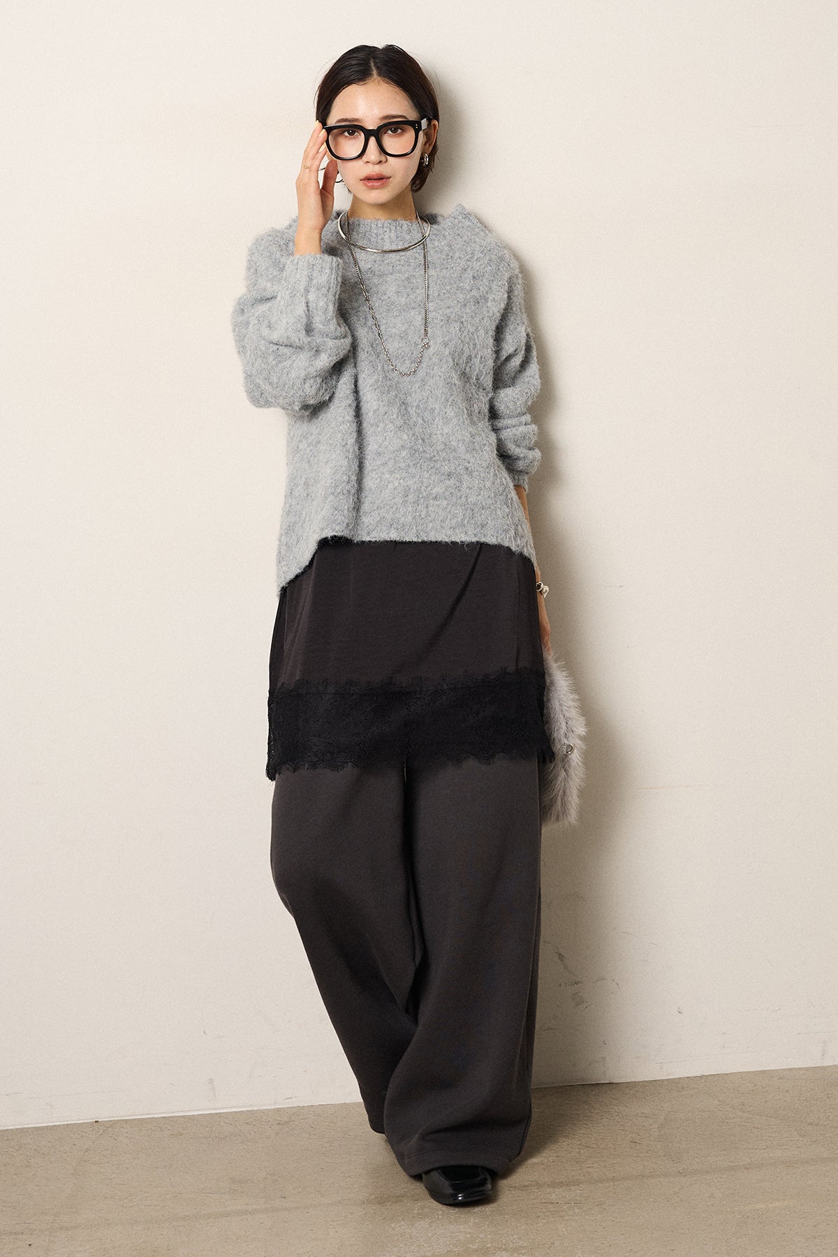 [SET]アルパカタッチオフショルニット+レース切り替えキャミソール(2set)