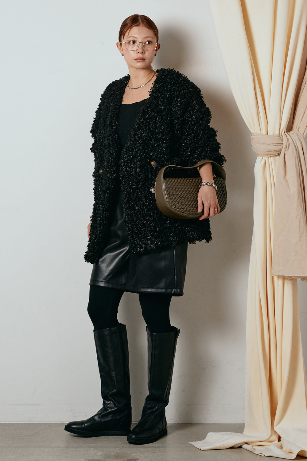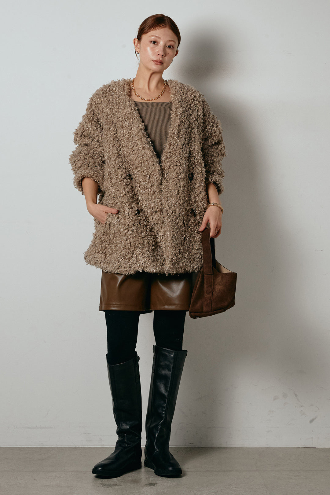 [SET]シープライクファージャケット+ストレッチエコレザーバミューダパンツ(2set)