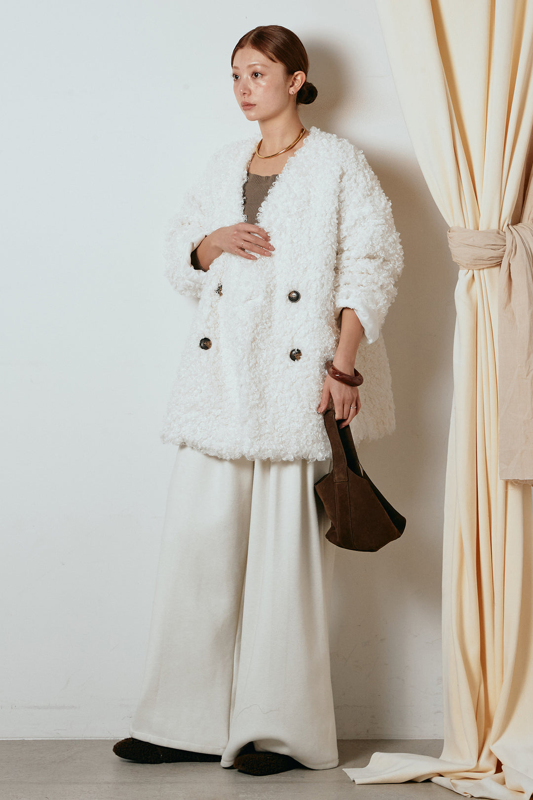 [SET]シープライクファージャケット+裏起毛スウェットワイドパンツ(2set)