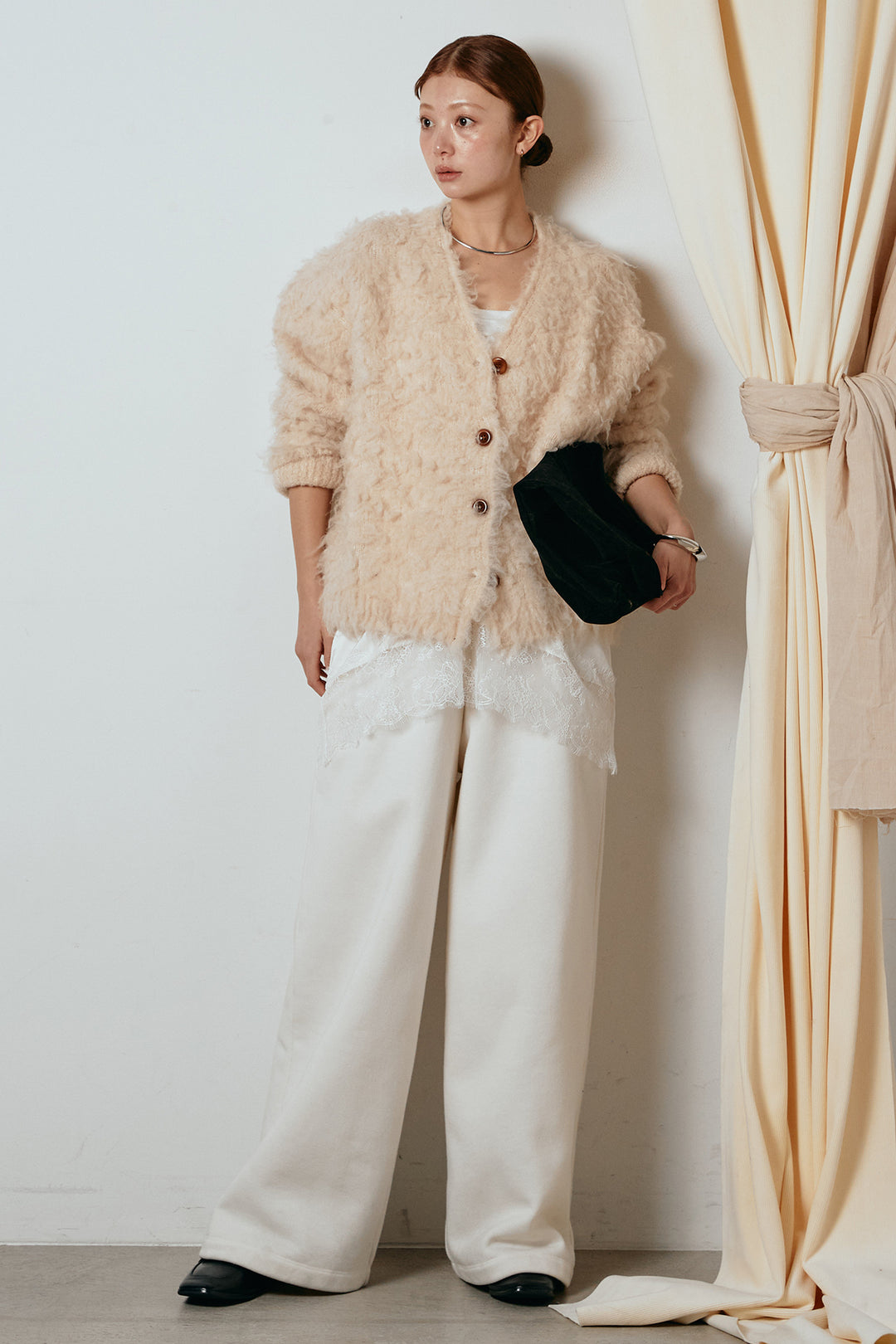 [SET]ルーズシャギーニットカーディガン+裏起毛スウェットワイドパンツ(2set)