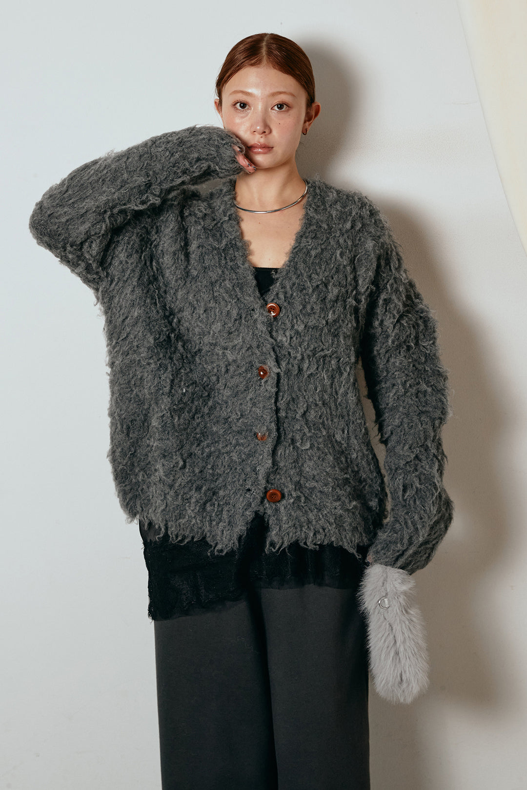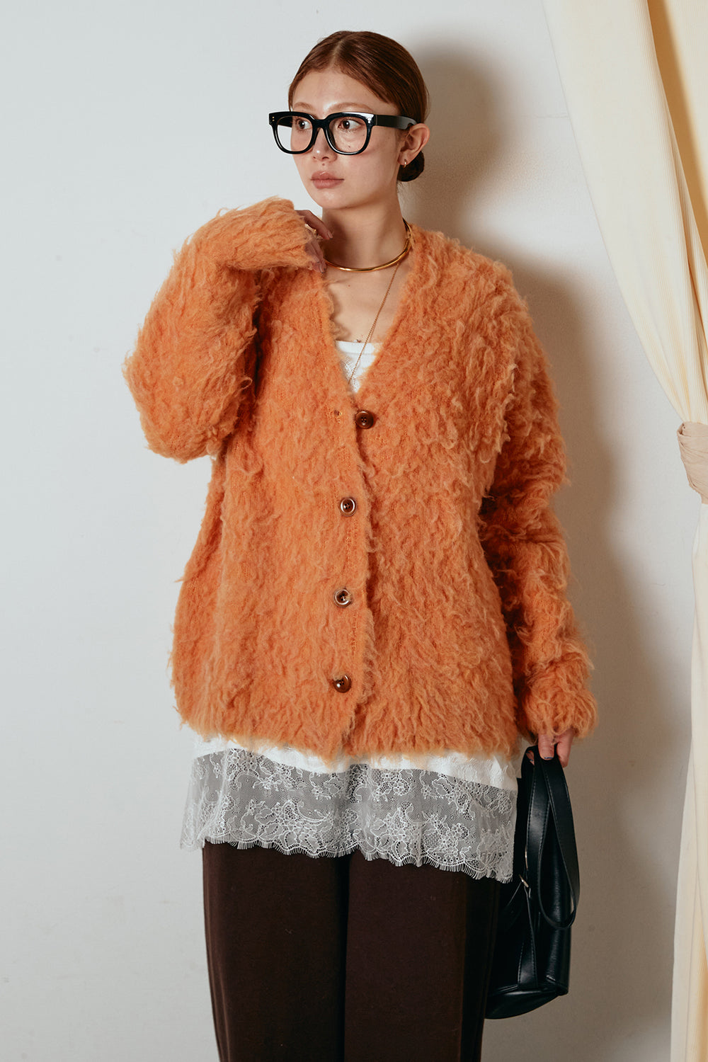 [SET]ルーズシャギーニットカーディガン+レース切り替えキャミソール(2set)