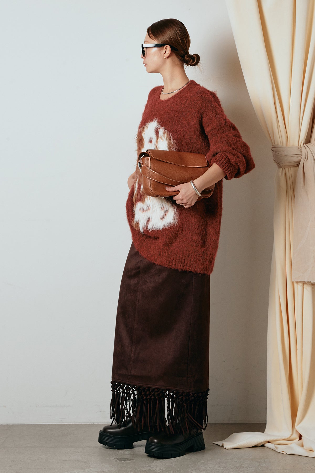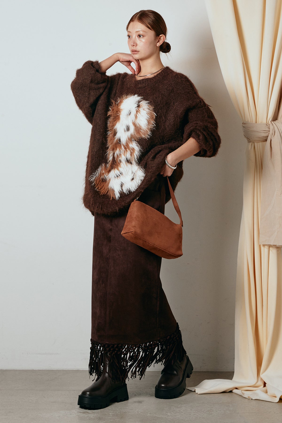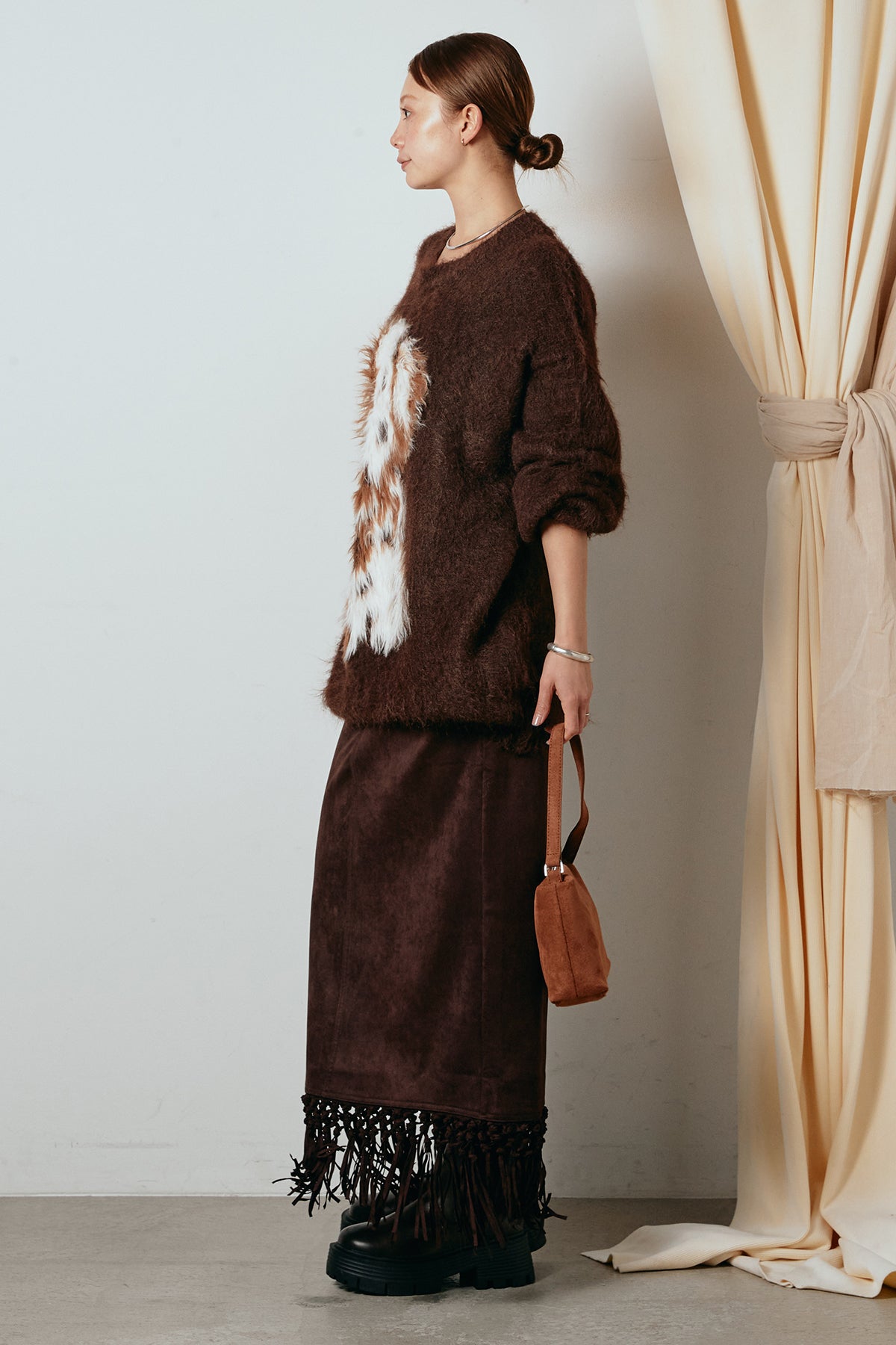 スウェードライク裾フリンジスカートの他のセットページはこちら
