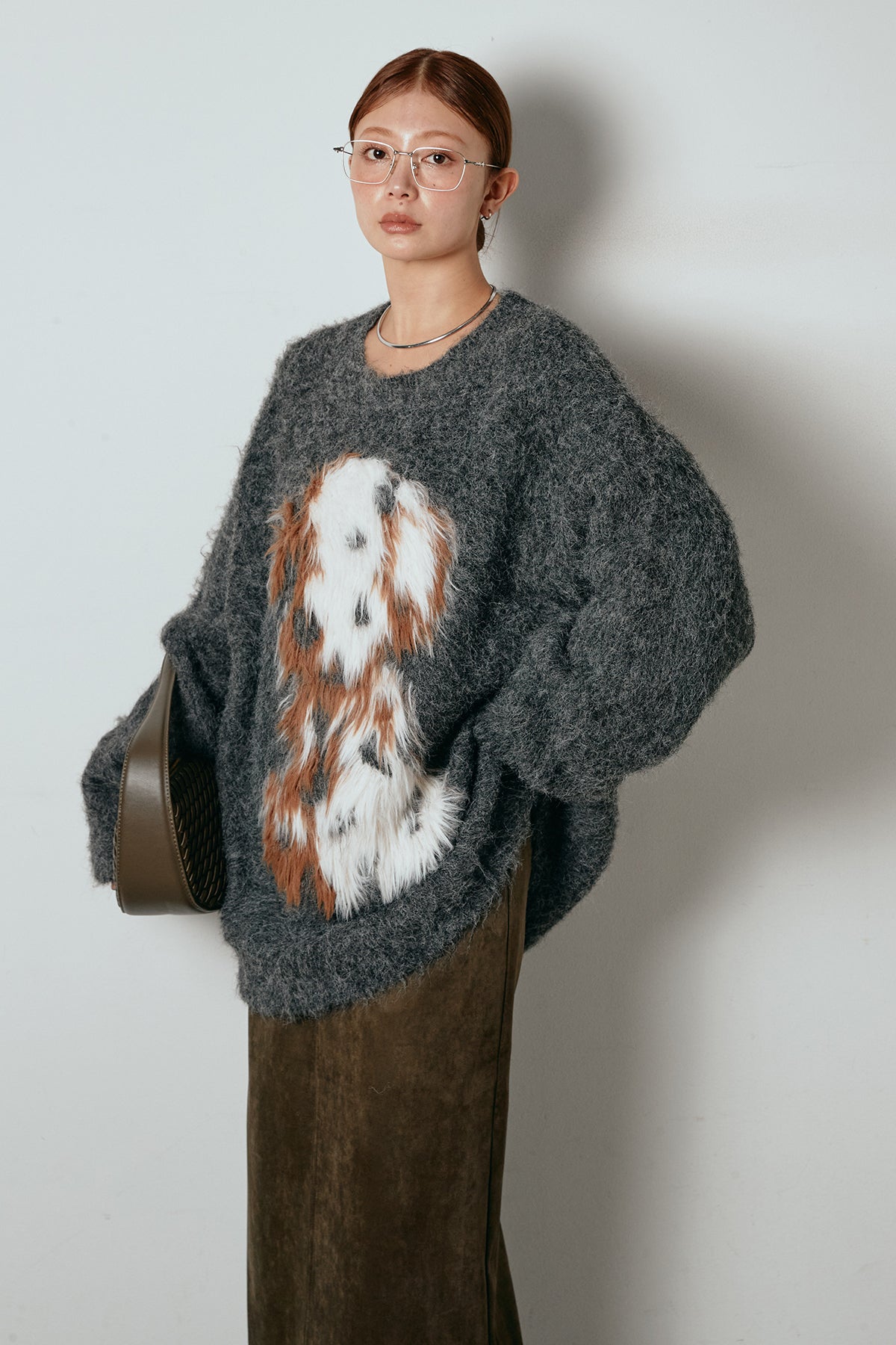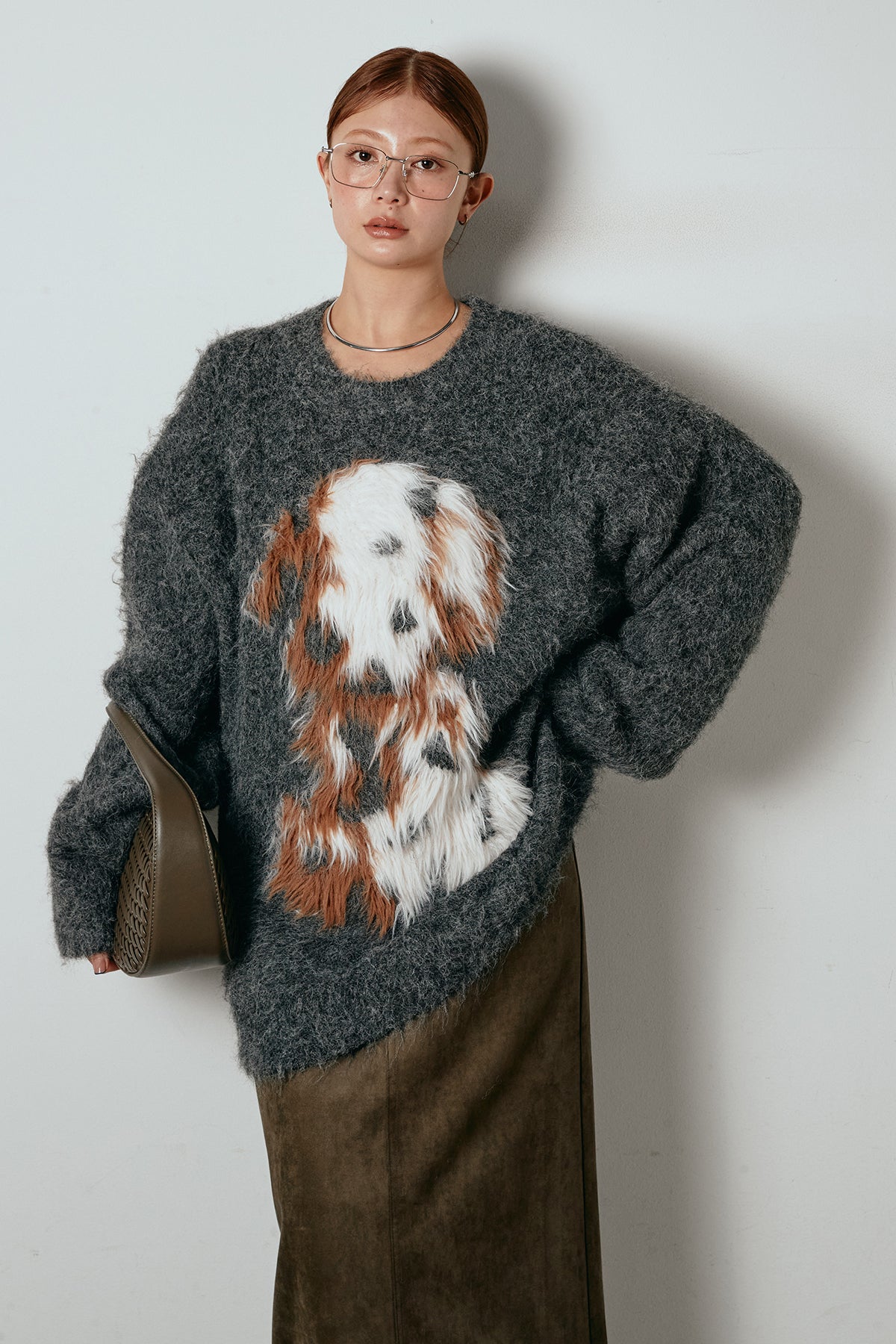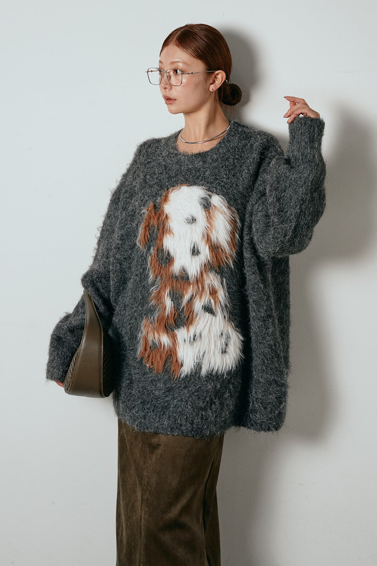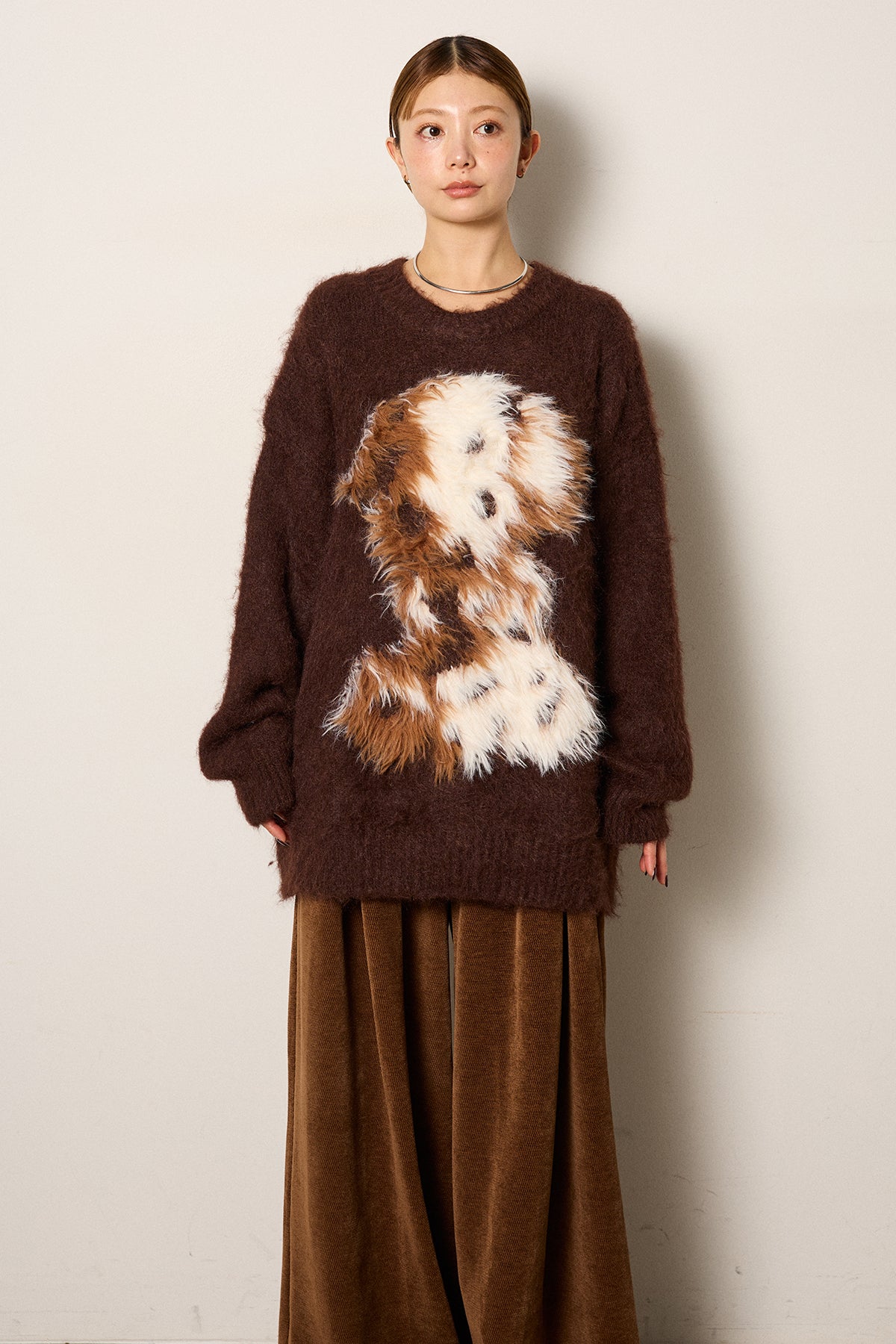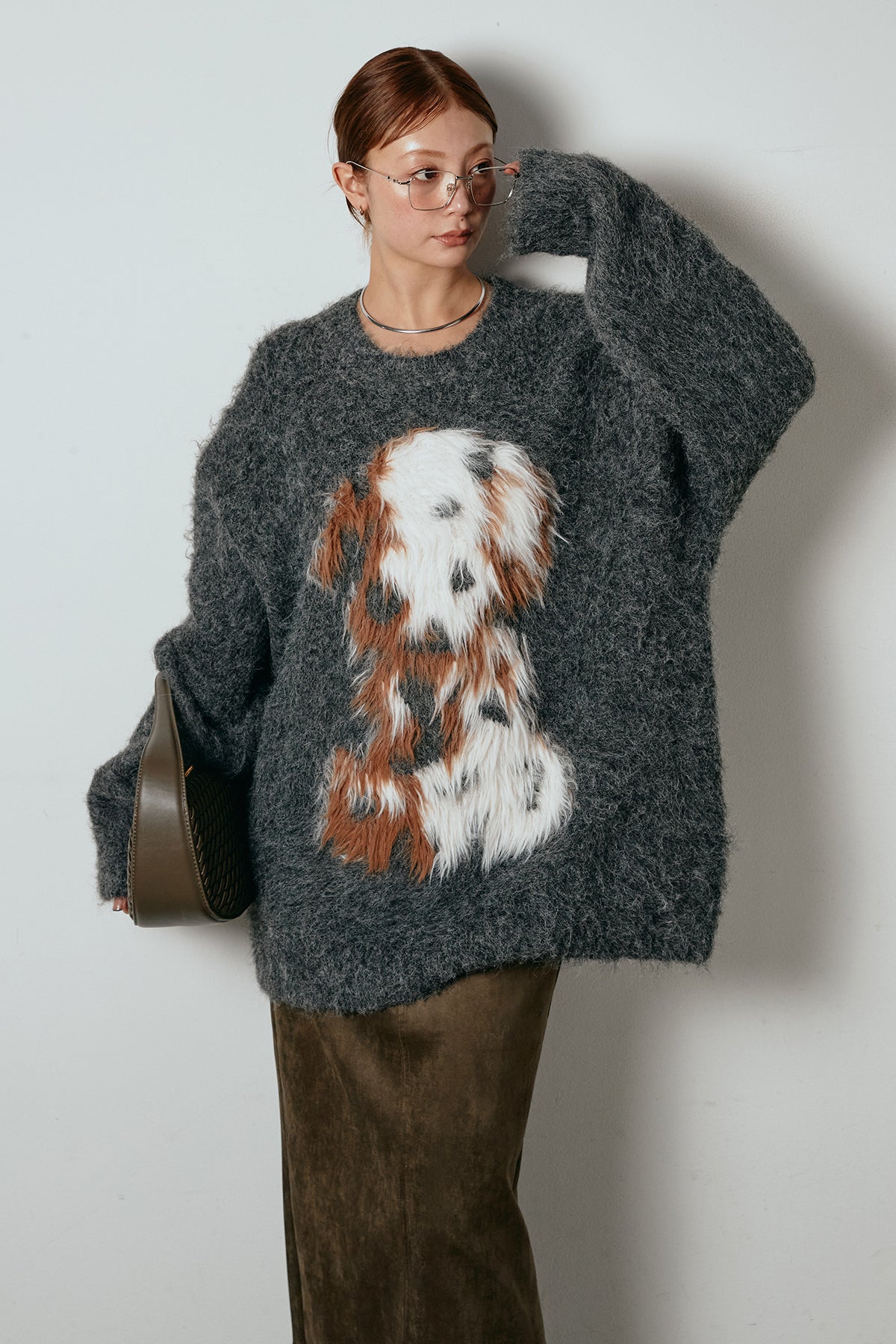 ふわふわとした質感が目を惹く、シャギー素材のアニマルモチーフニット。立体感のあるニュアンス柄が、遊び心のあるアクセントになりながらも大人っぽい雰囲気で着られる一枚。ゆるめのシルエットでラフに着こなせ、ロング丈がバランス良く体型をカバーします。シンプルなボトムに合わせるだけでスタイリングが完成する存在感のあるアイテムです。