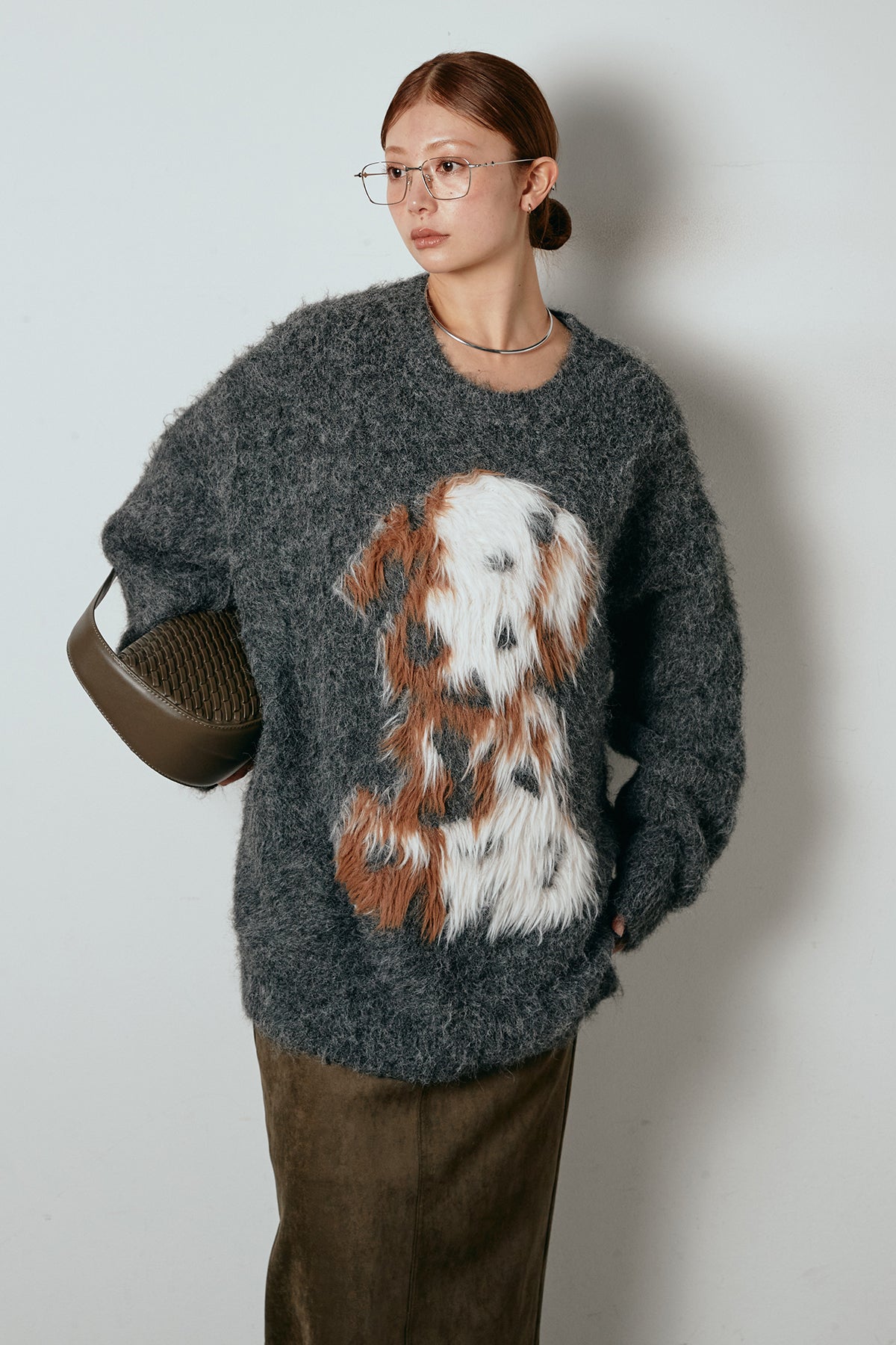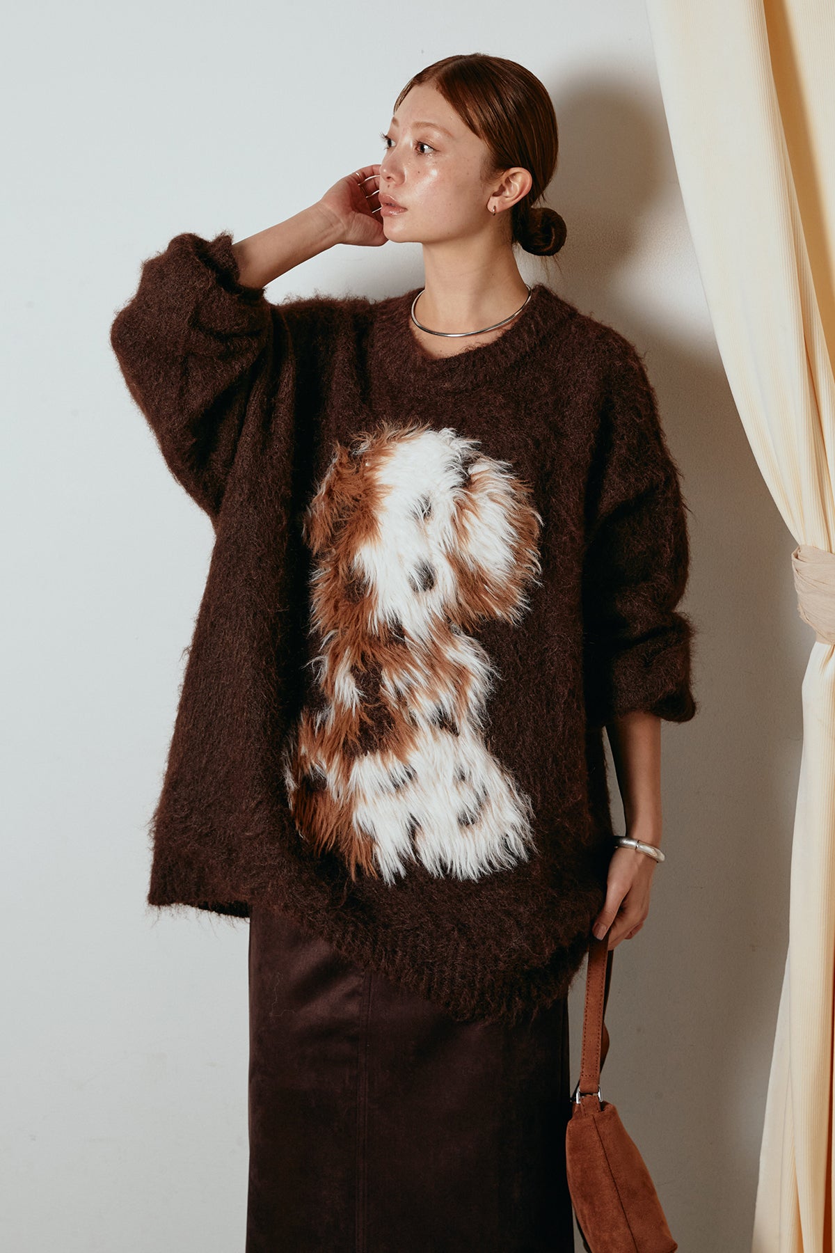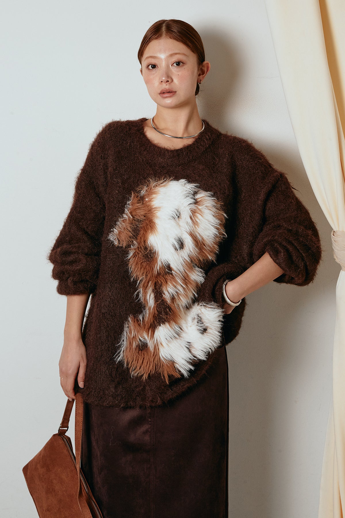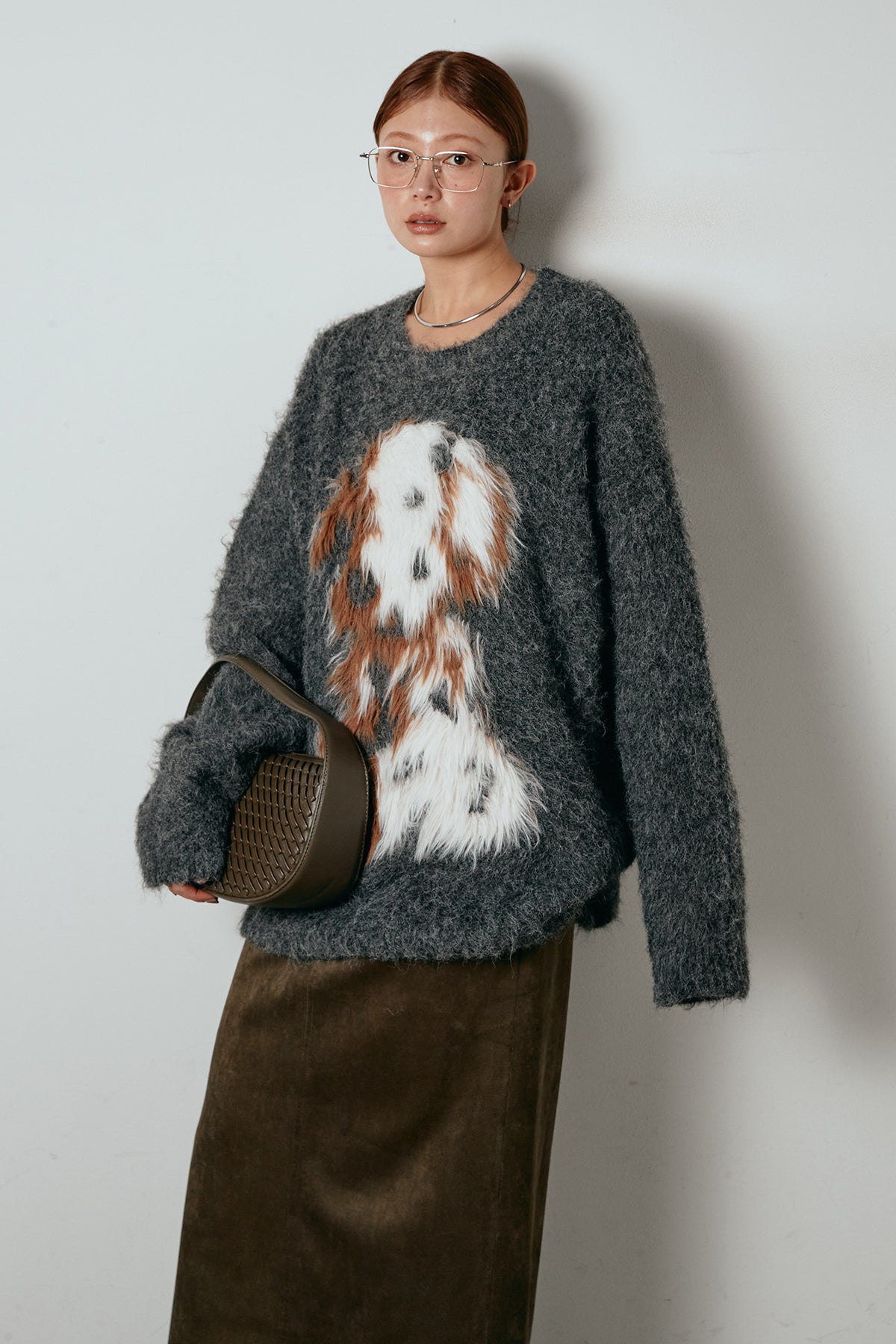 ふわふわとした質感が目を惹く、シャギー素材のアニマルモチーフニット。立体感のあるニュアンス柄が、遊び心のあるアクセントになりながらも大人っぽい雰囲気で着られる一枚。ゆるめのシルエットでラフに着こなせ、ロング丈がバランス良く体型をカバーします。シンプルなボトムに合わせるだけでスタイリングが完成する存在感のあるアイテムです。