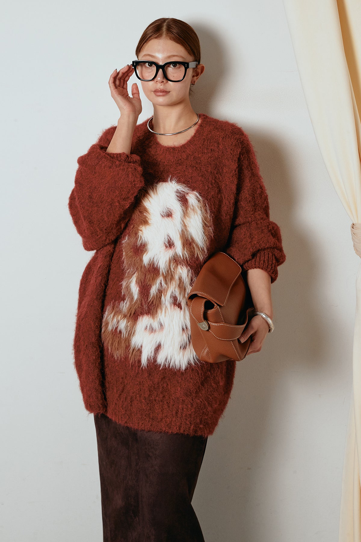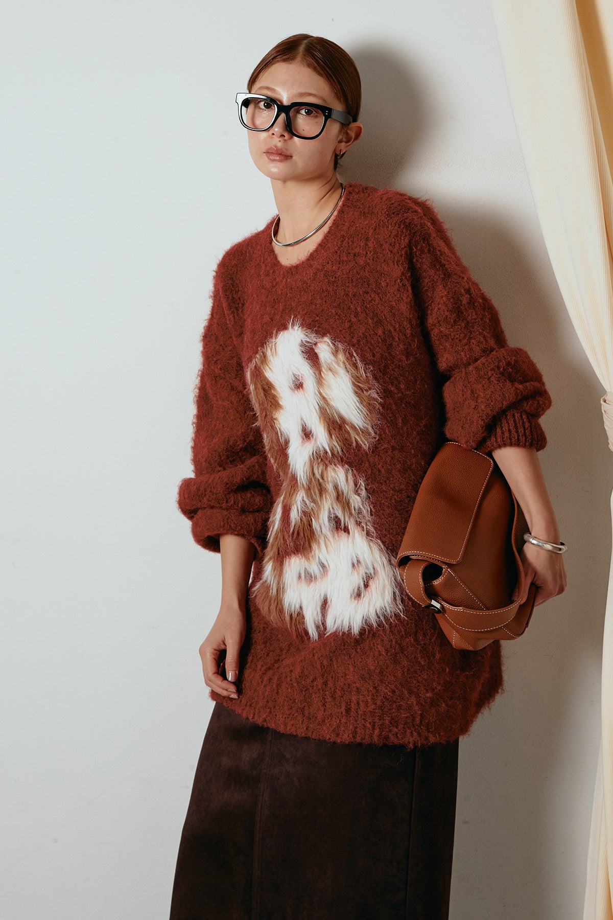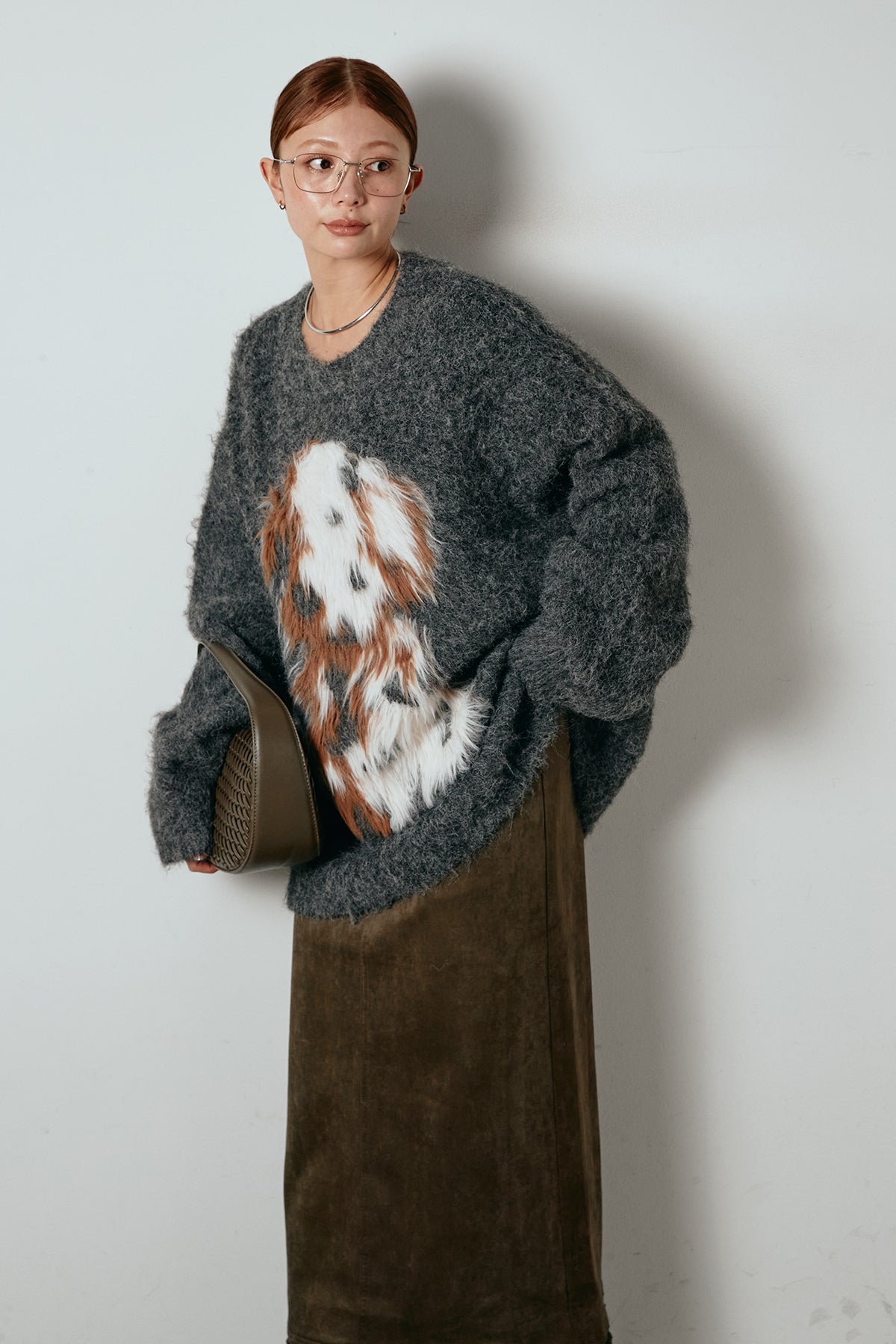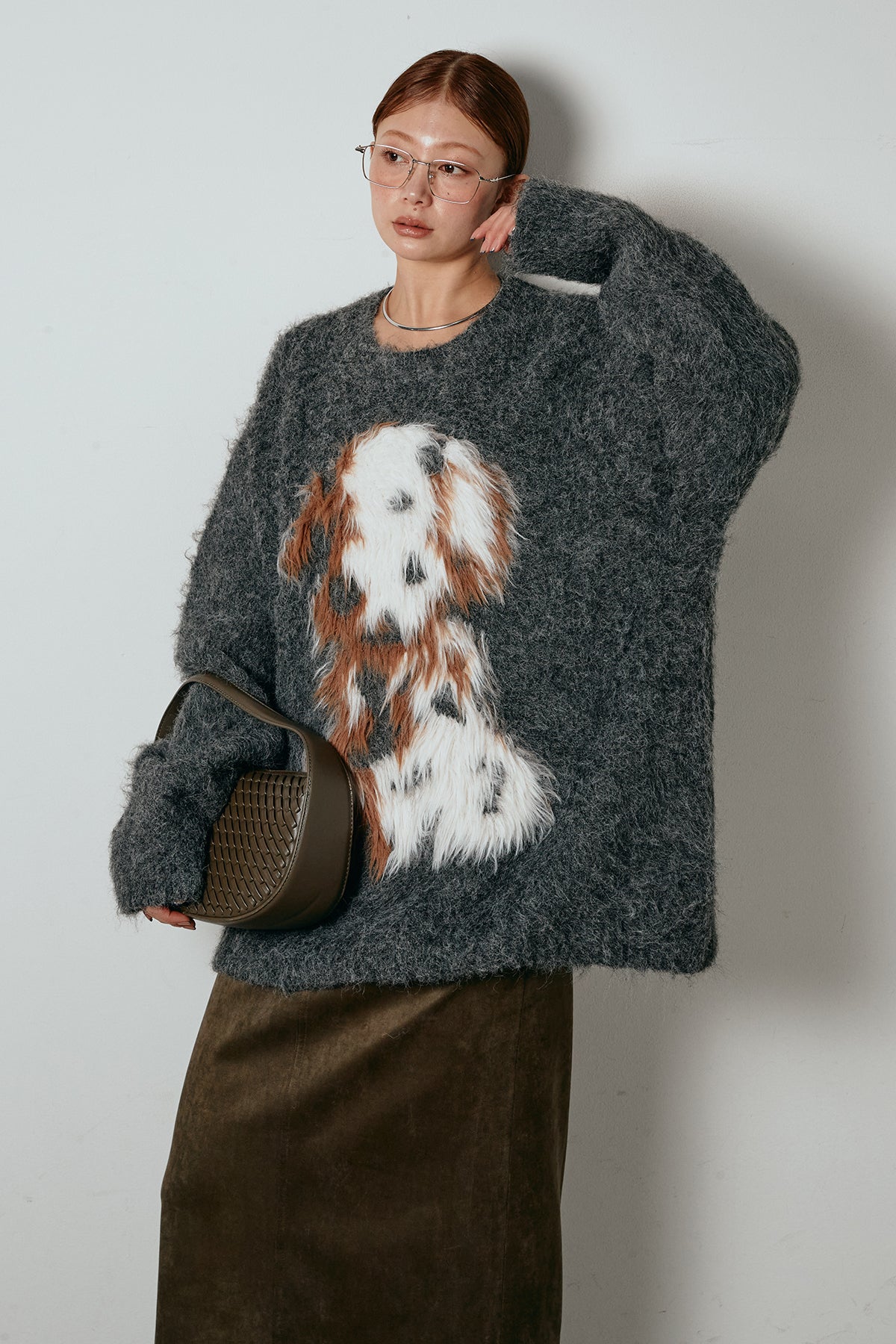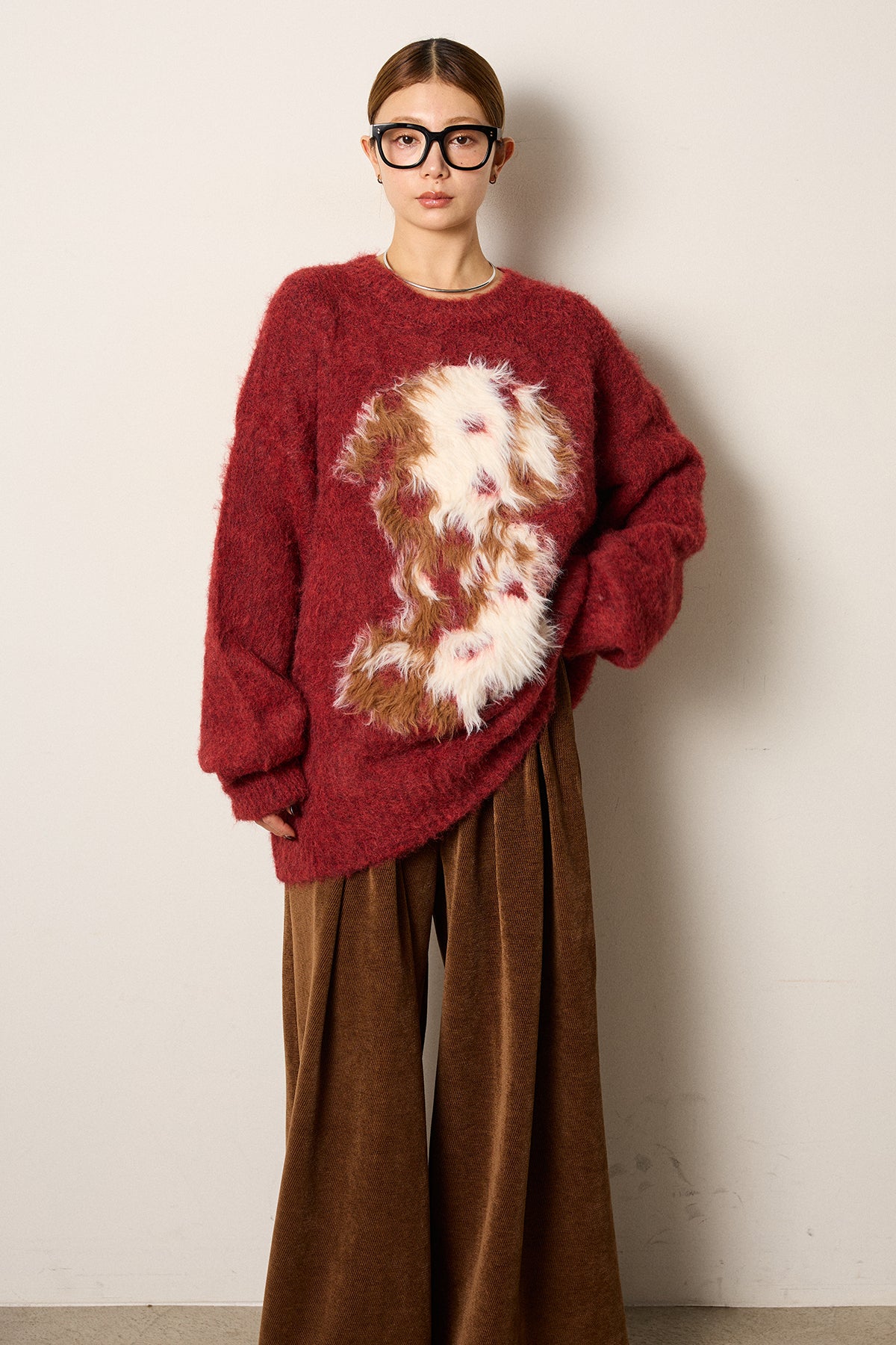 ふわふわとした質感が目を惹く、シャギー素材のアニマルモチーフニット。立体感のあるニュアンス柄が、遊び心のあるアクセントになりながらも大人っぽい雰囲気で着られる一枚。ゆるめのシルエットでラフに着こなせ、ロング丈がバランス良く体型をカバーします。シンプルなボトムに合わせるだけでスタイリングが完成する存在感のあるアイテムです。