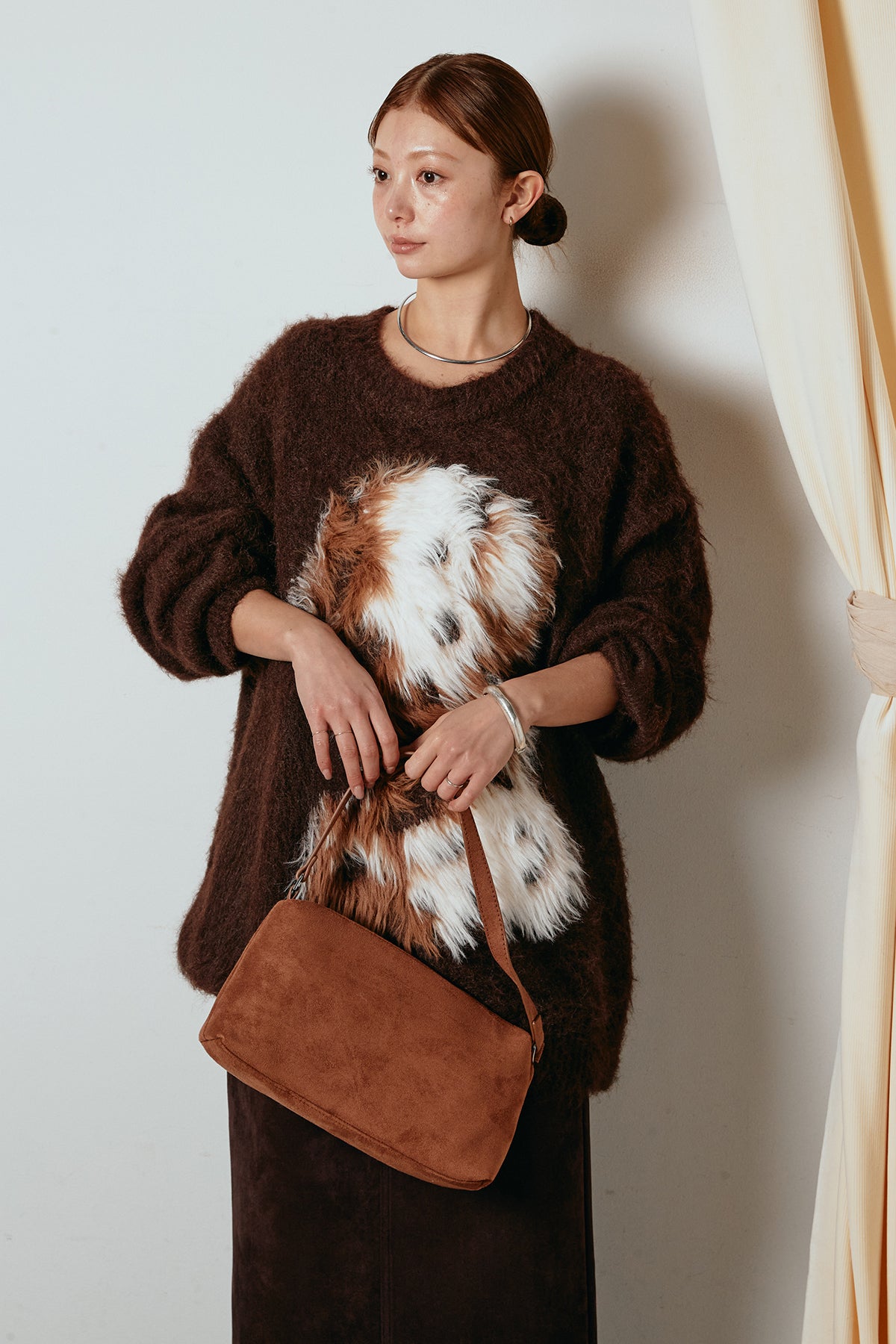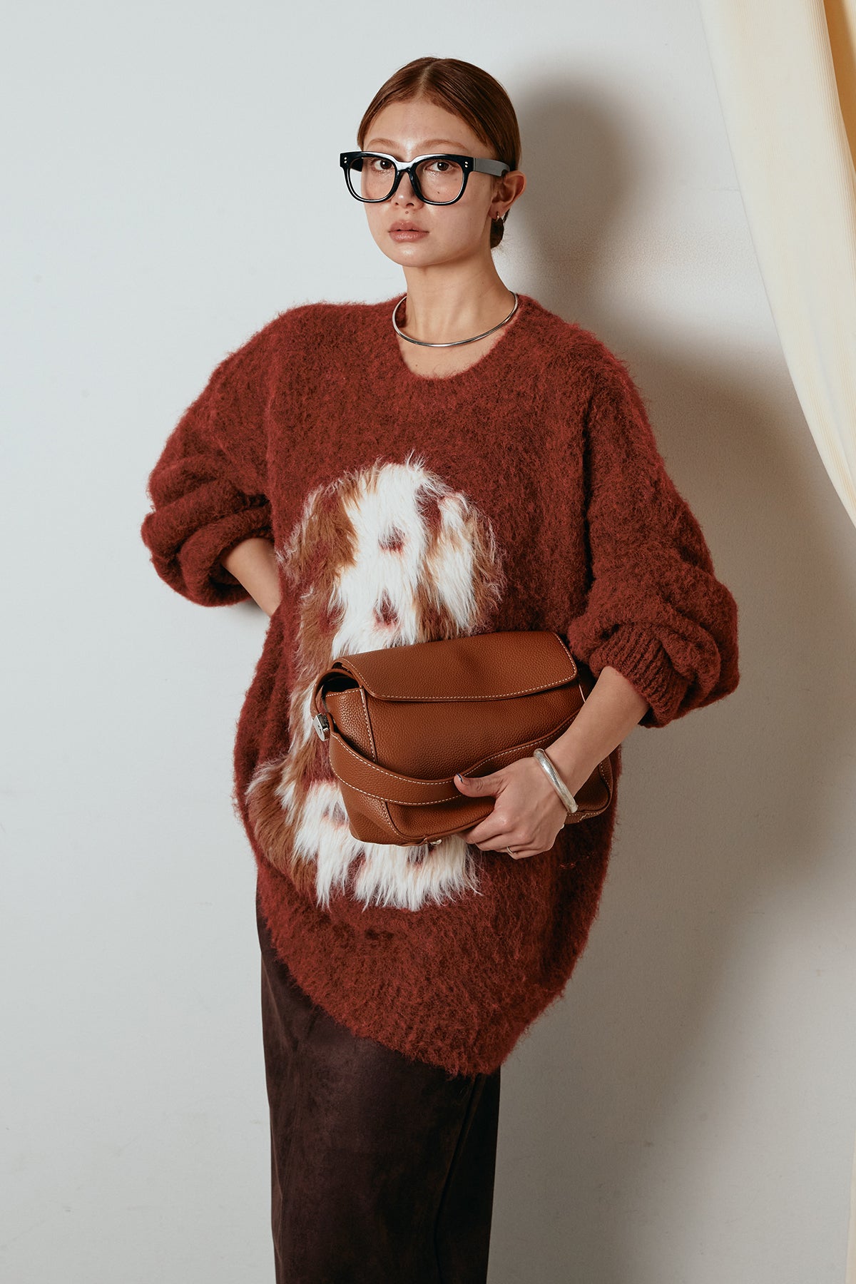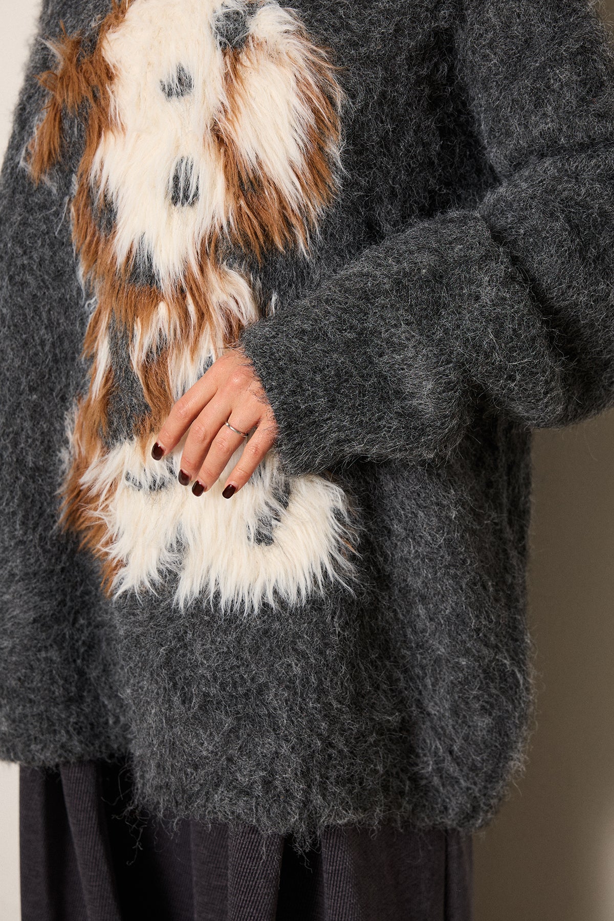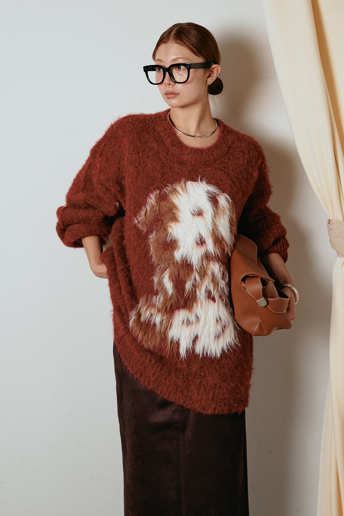 ふわふわとした質感が目を惹く、シャギー素材のアニマルモチーフニット。立体感のあるニュアンス柄が、遊び心のあるアクセントになりながらも大人っぽい雰囲気で着られる一枚。ゆるめのシルエットでラフに着こなせ、ロング丈がバランス良く体型をカバーします。シンプルなボトムに合わせるだけでスタイリングが完成する存在感のあるアイテムです。