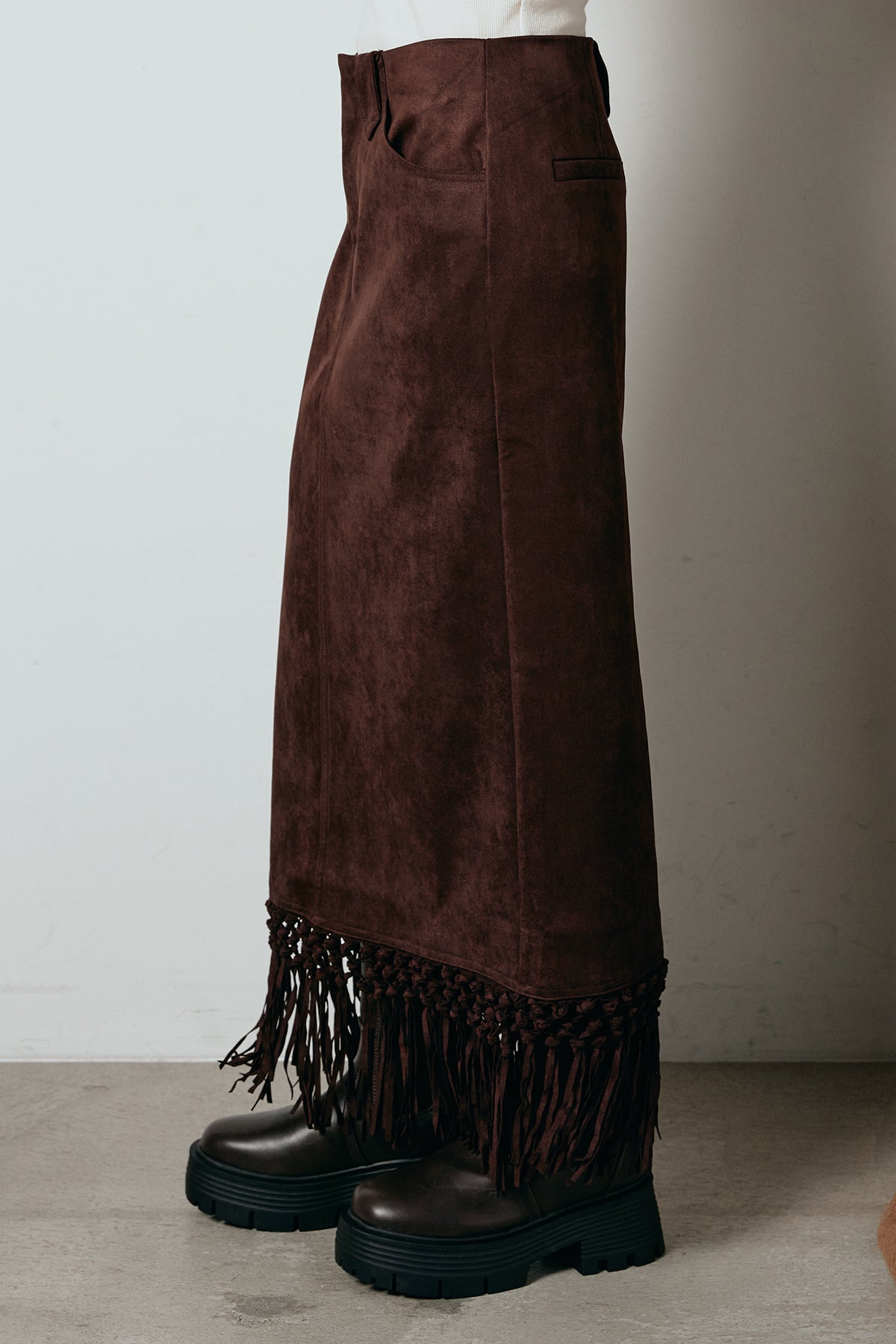 ◆ スウェードライク裾フリンジスカート