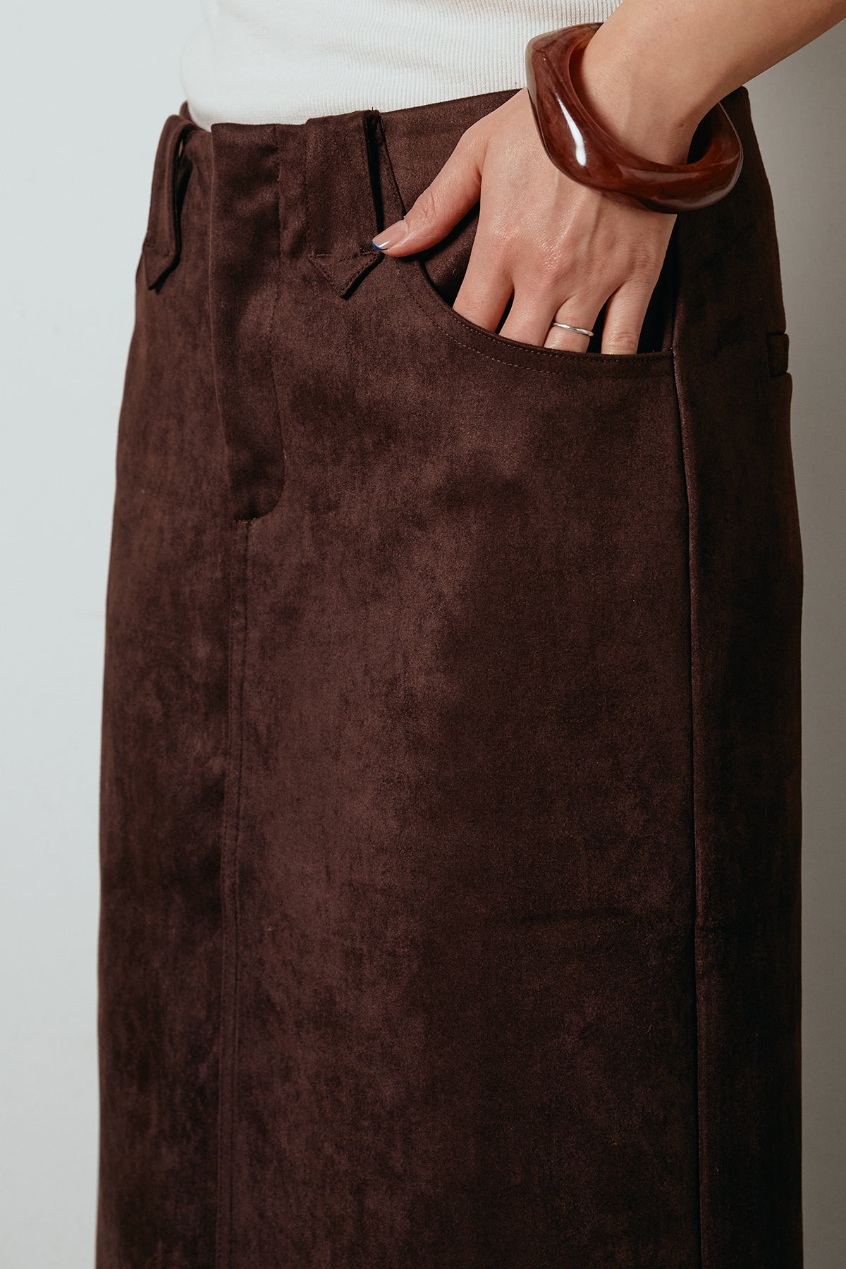 スウェードライク裾フリンジスカート
