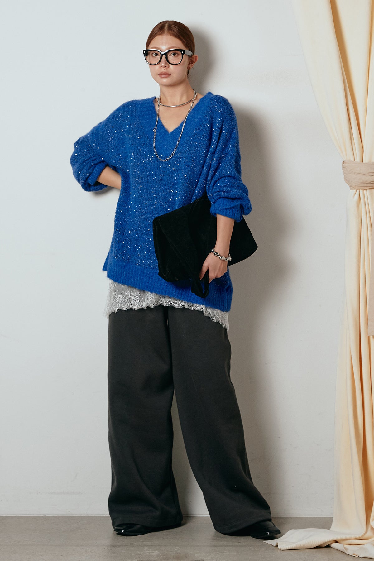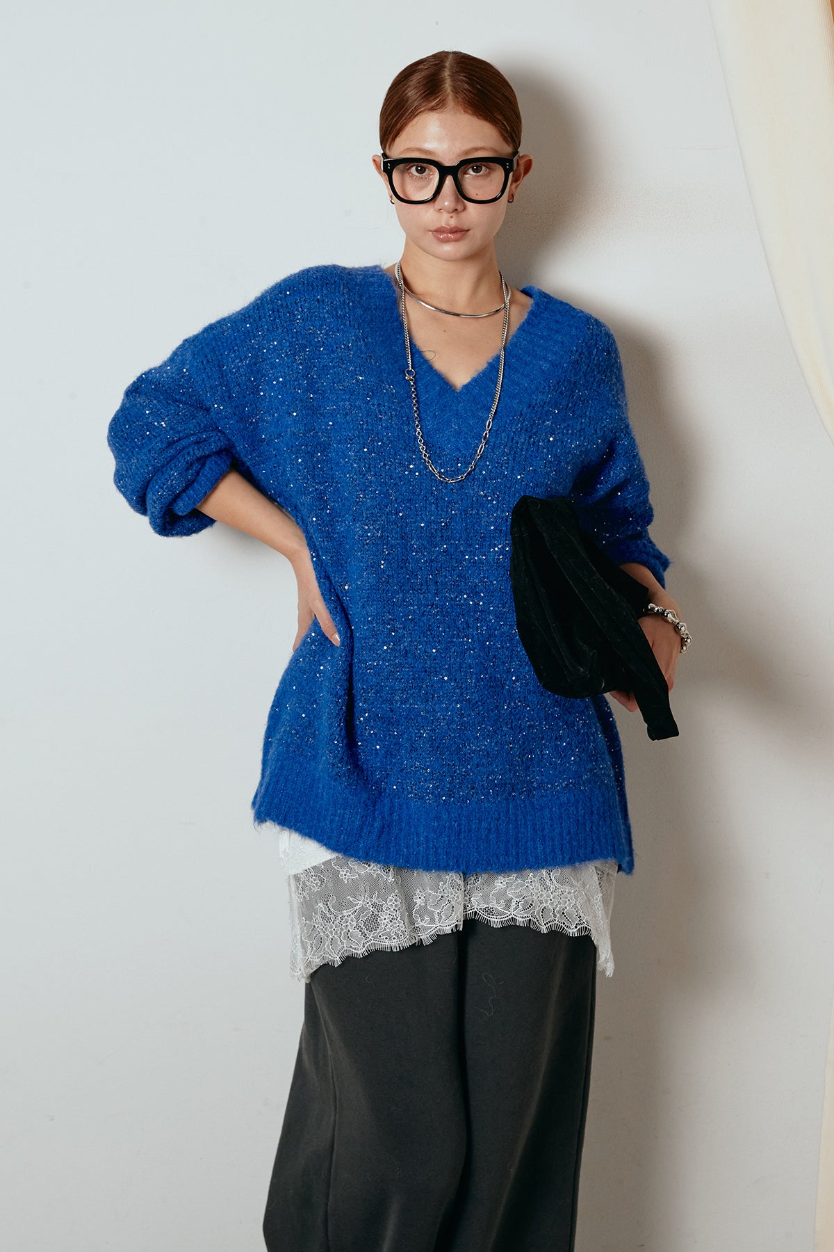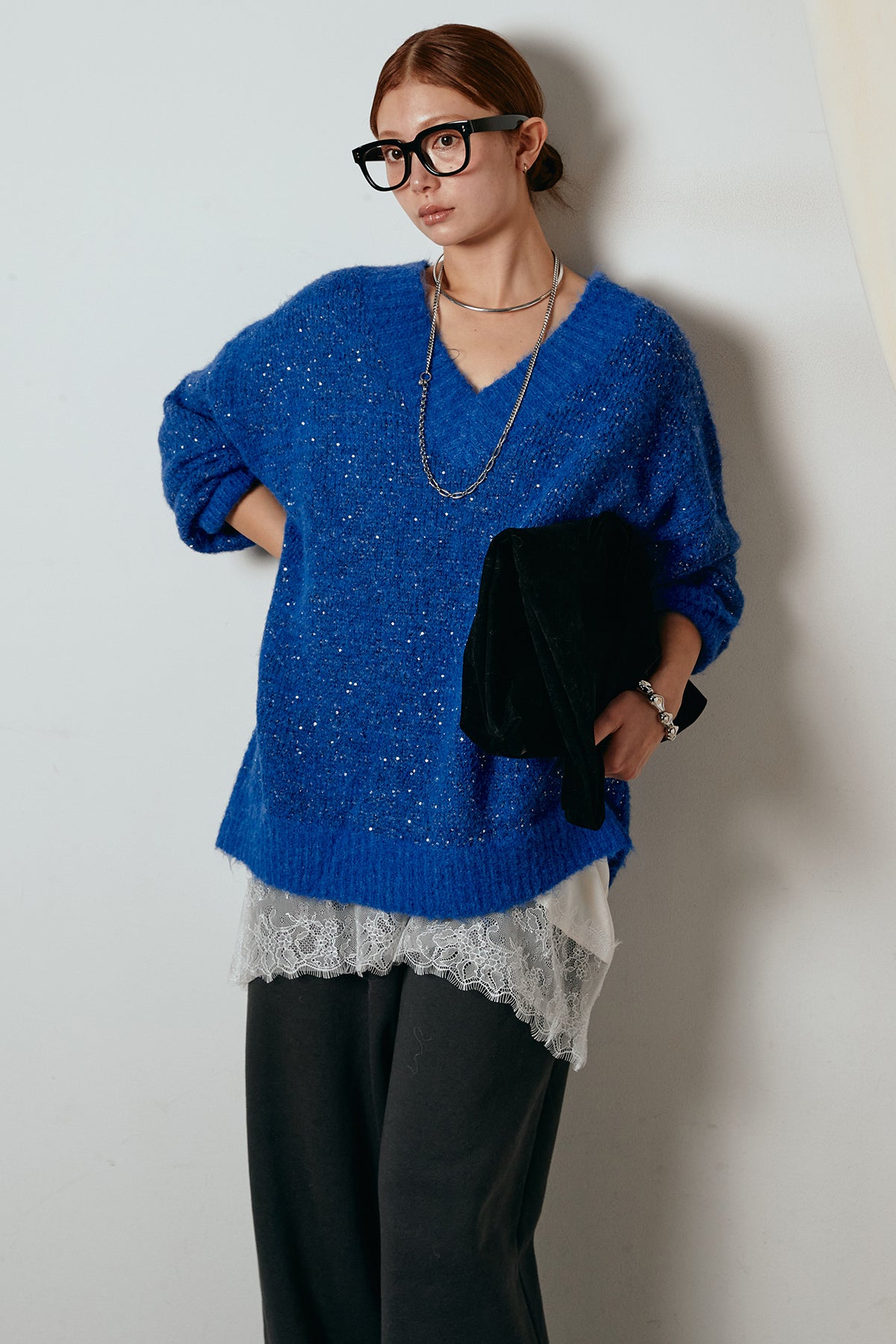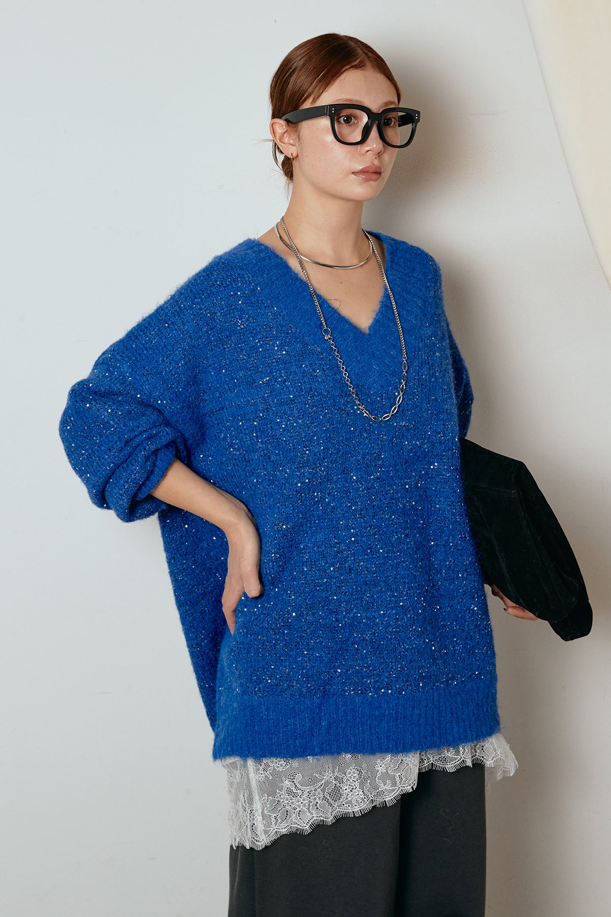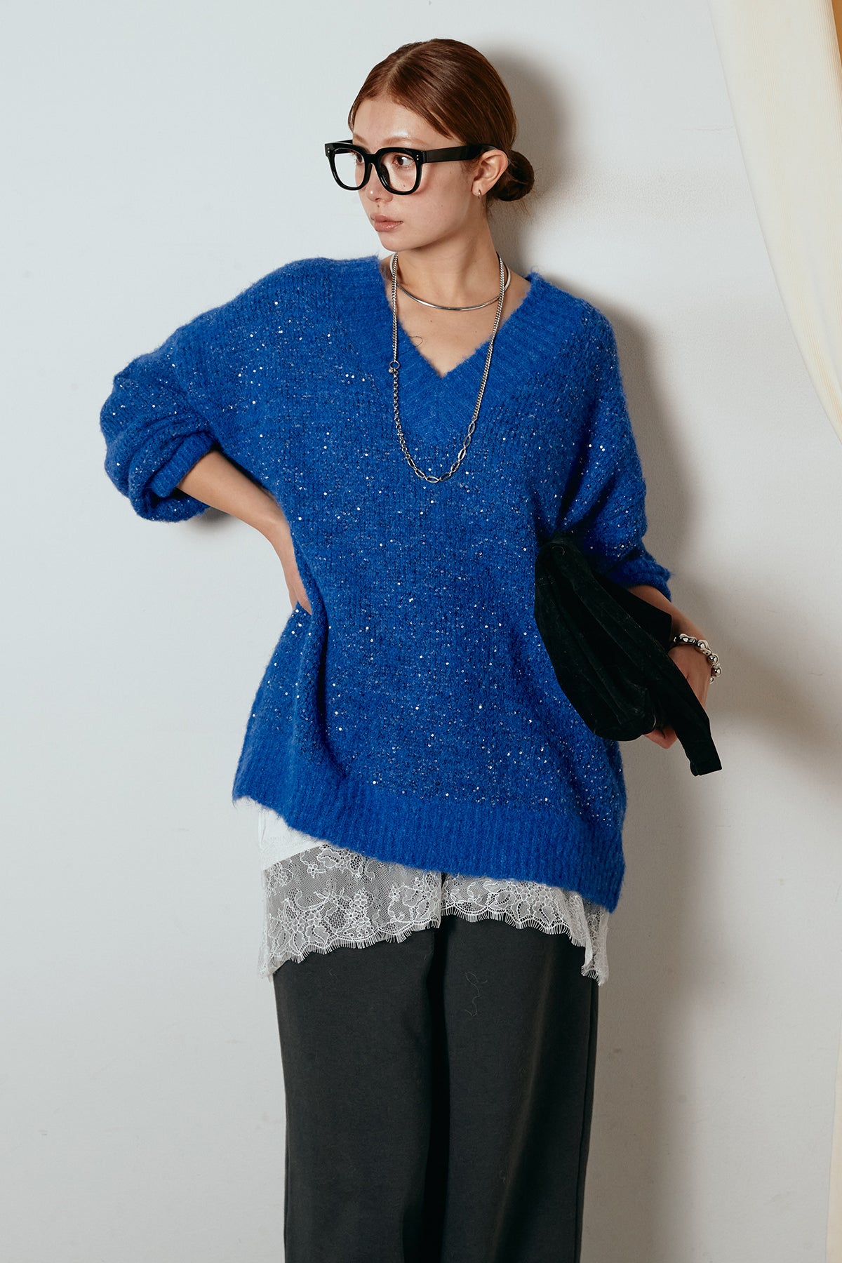Vネックルーズラメニットトップスの他のセットページはこちら