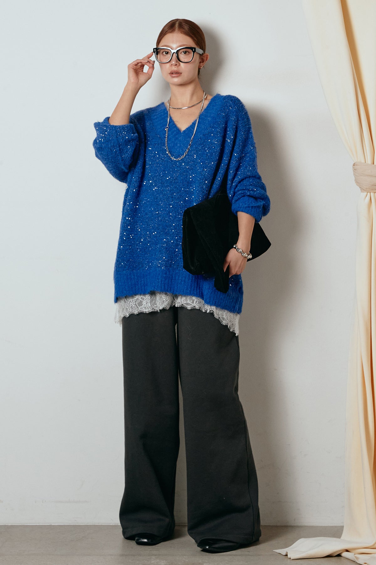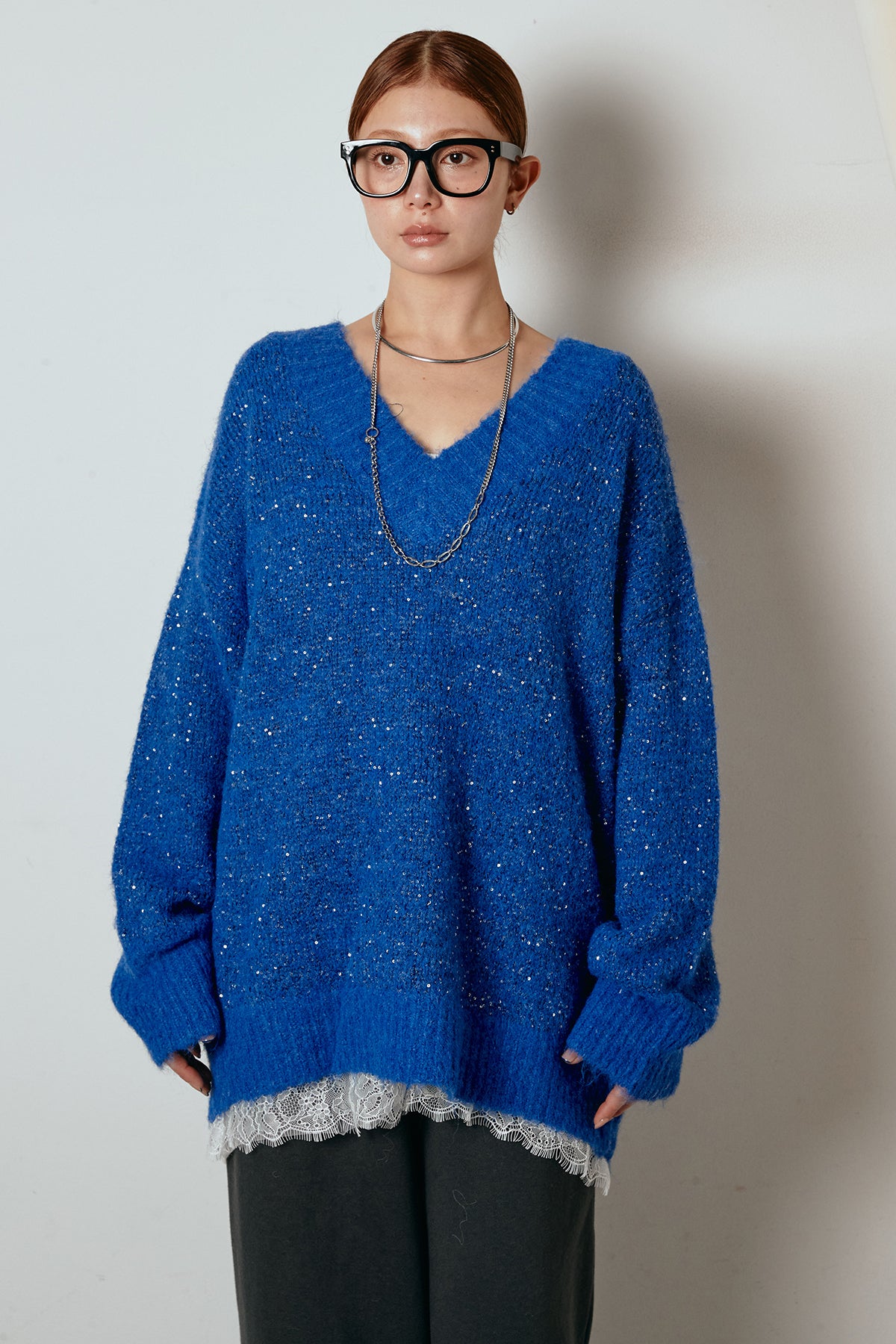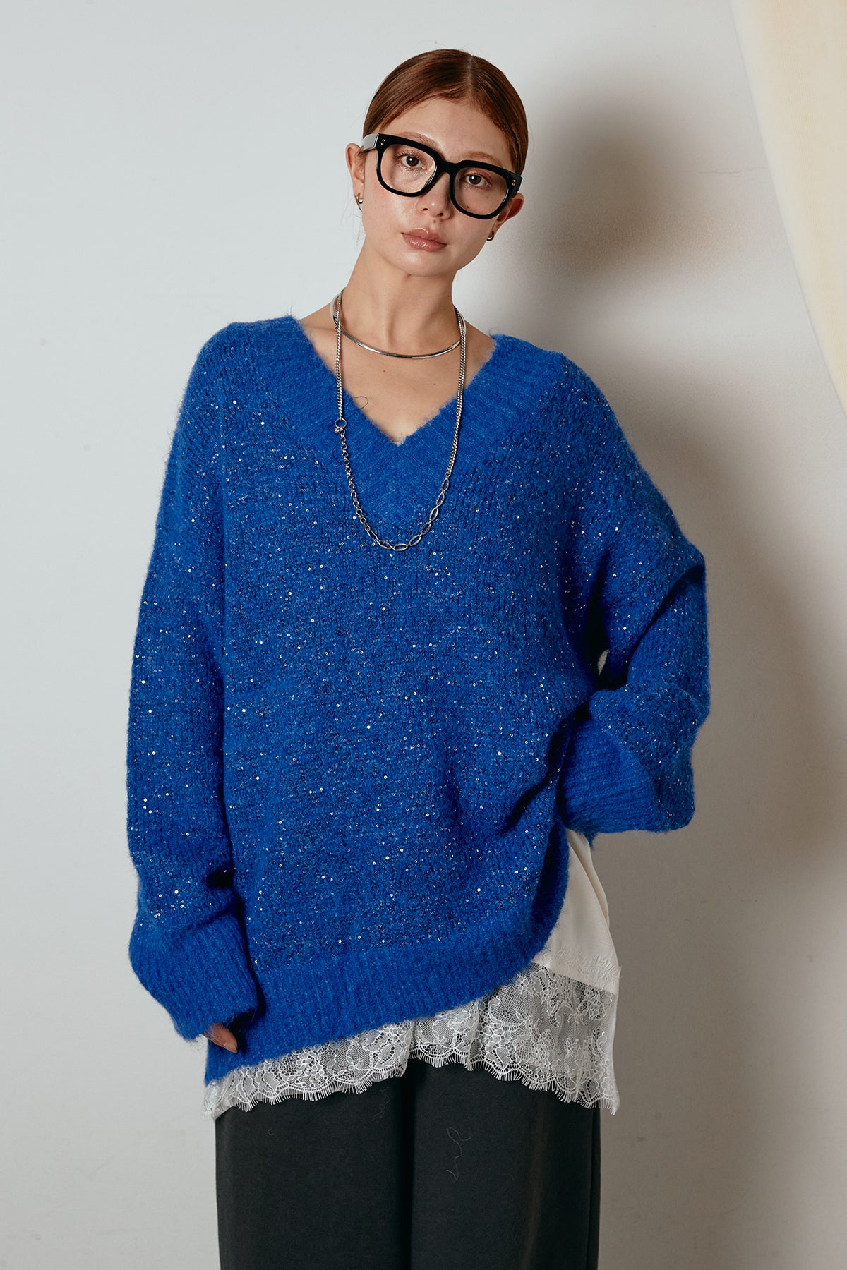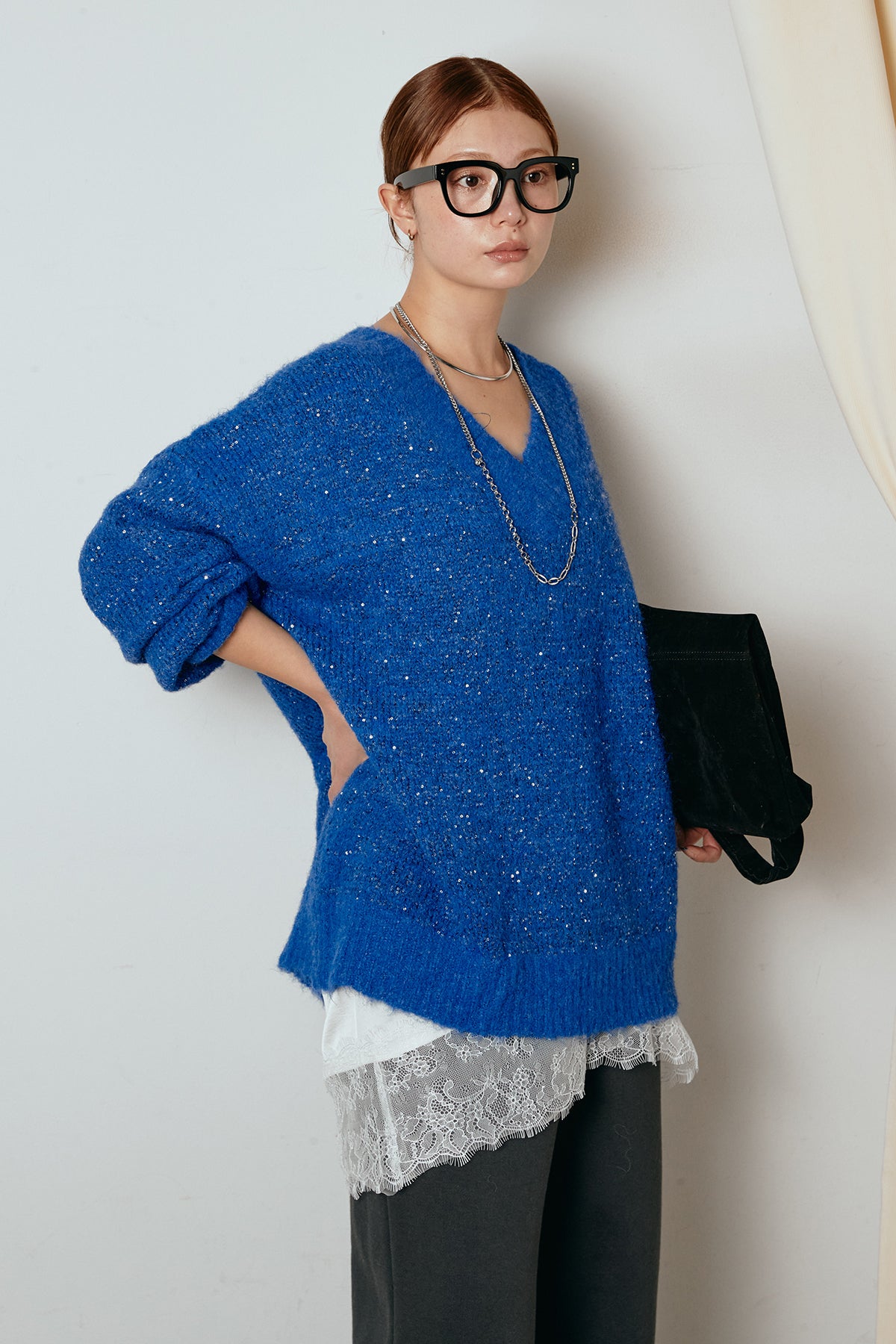 Vネックルーズラメニットトップスの他のセットページはこちら