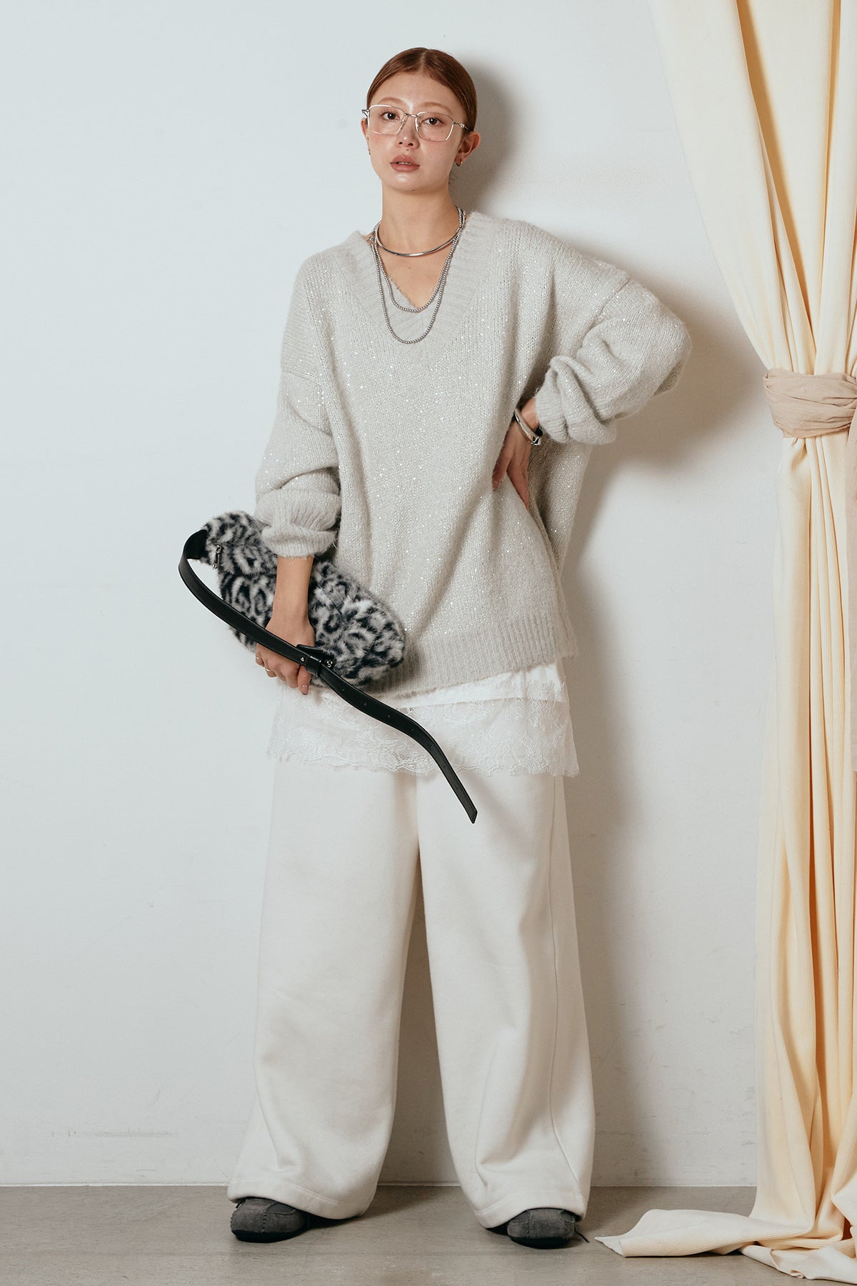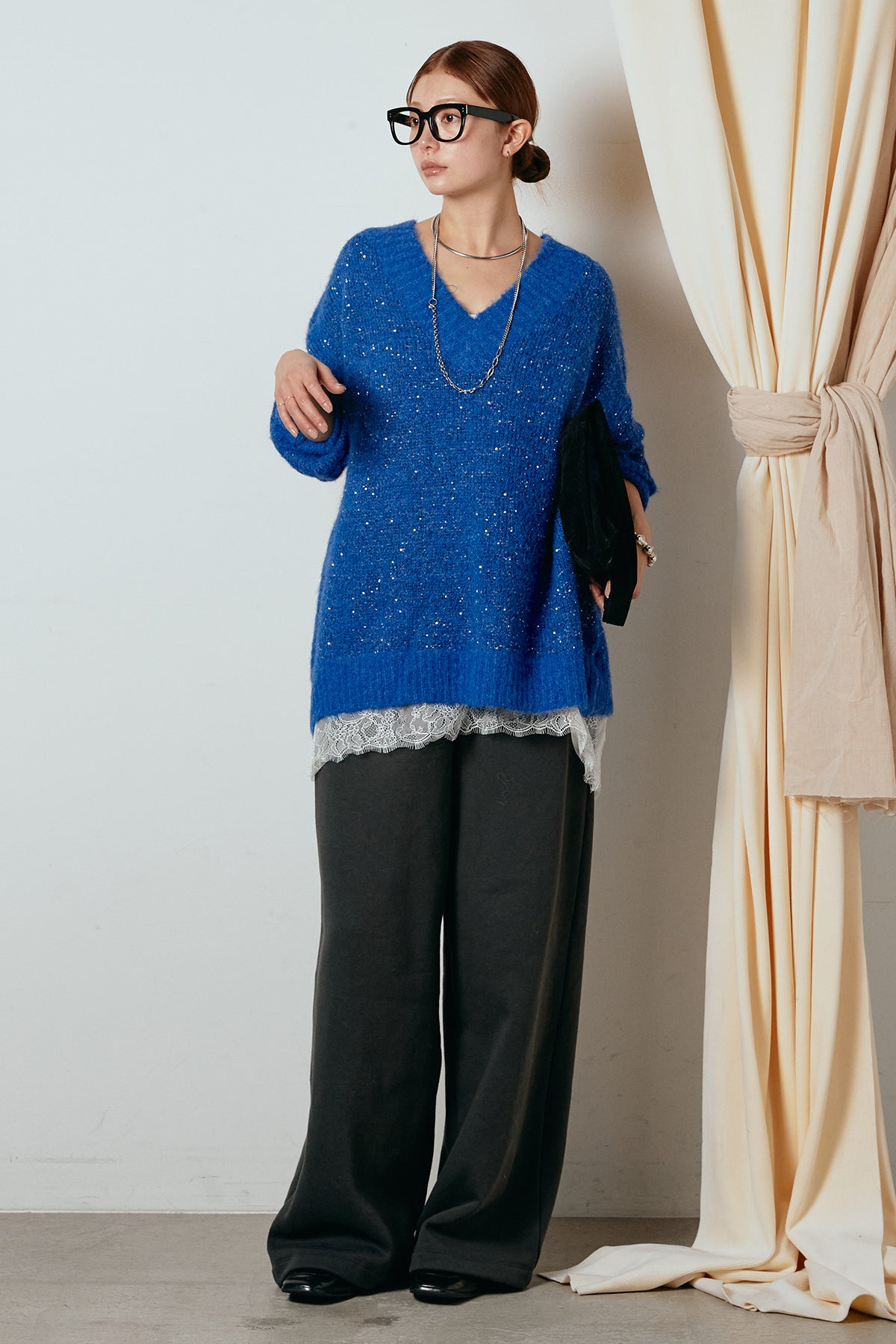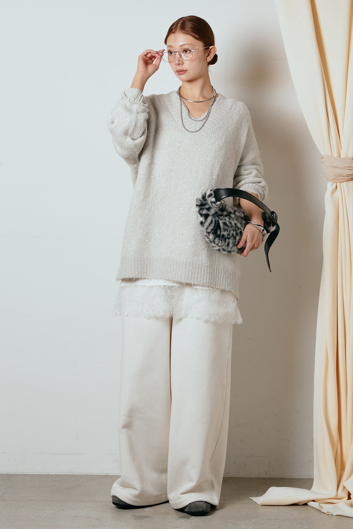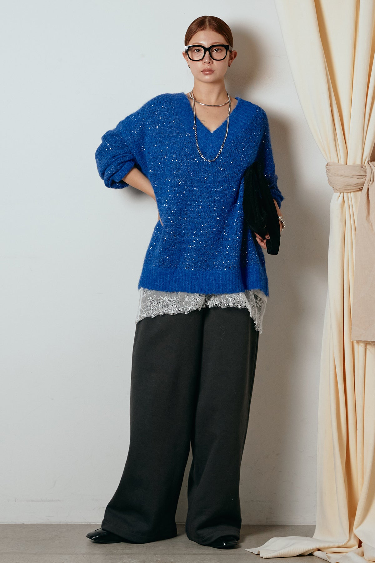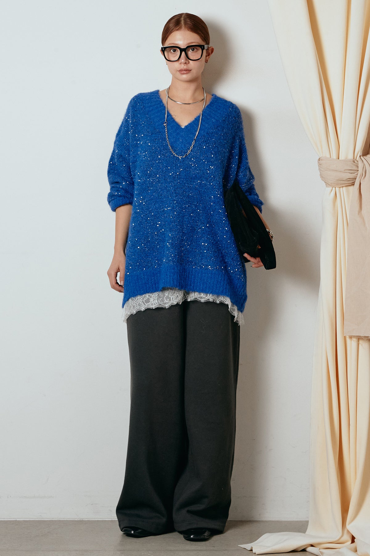 Vネックルーズラメニットトップスの他のセットページはこちら