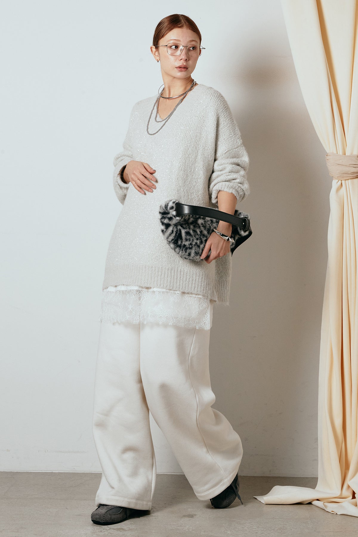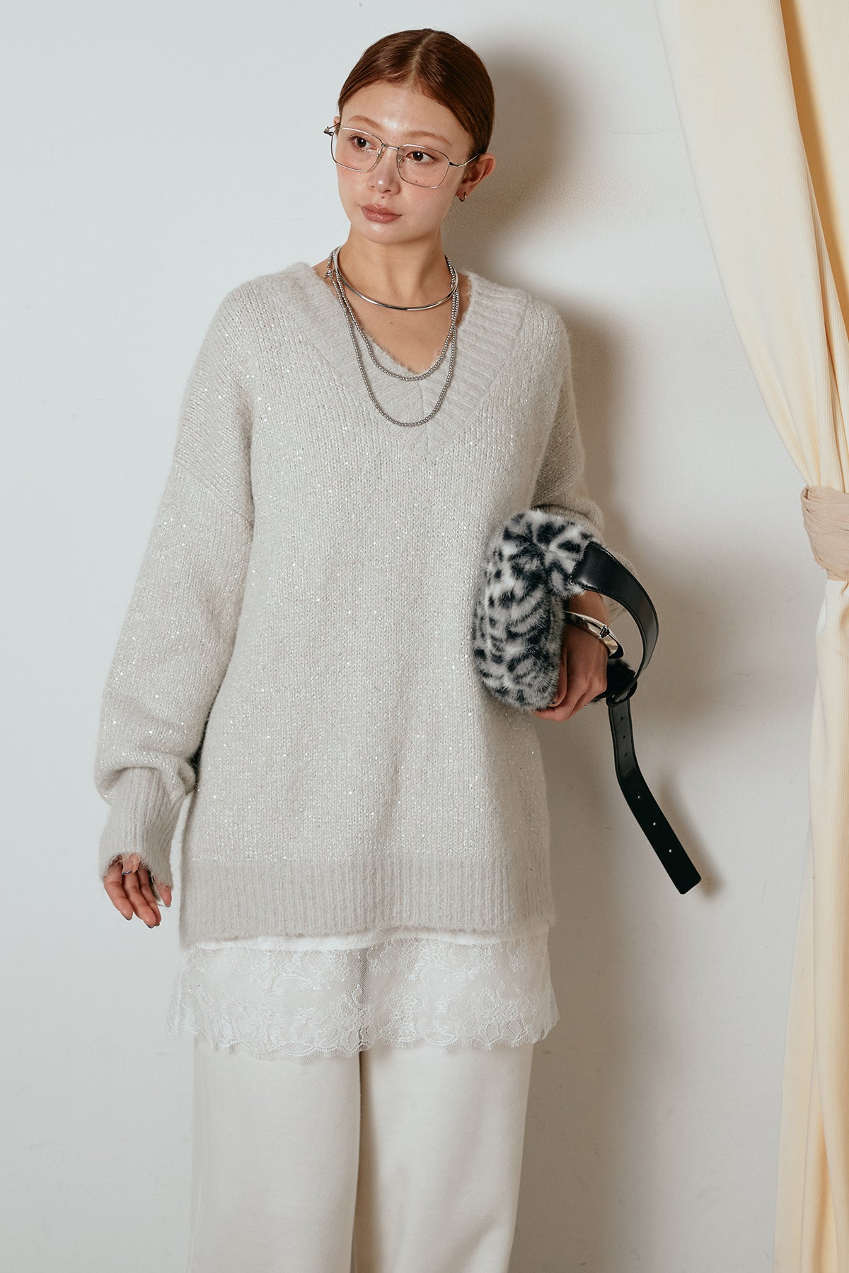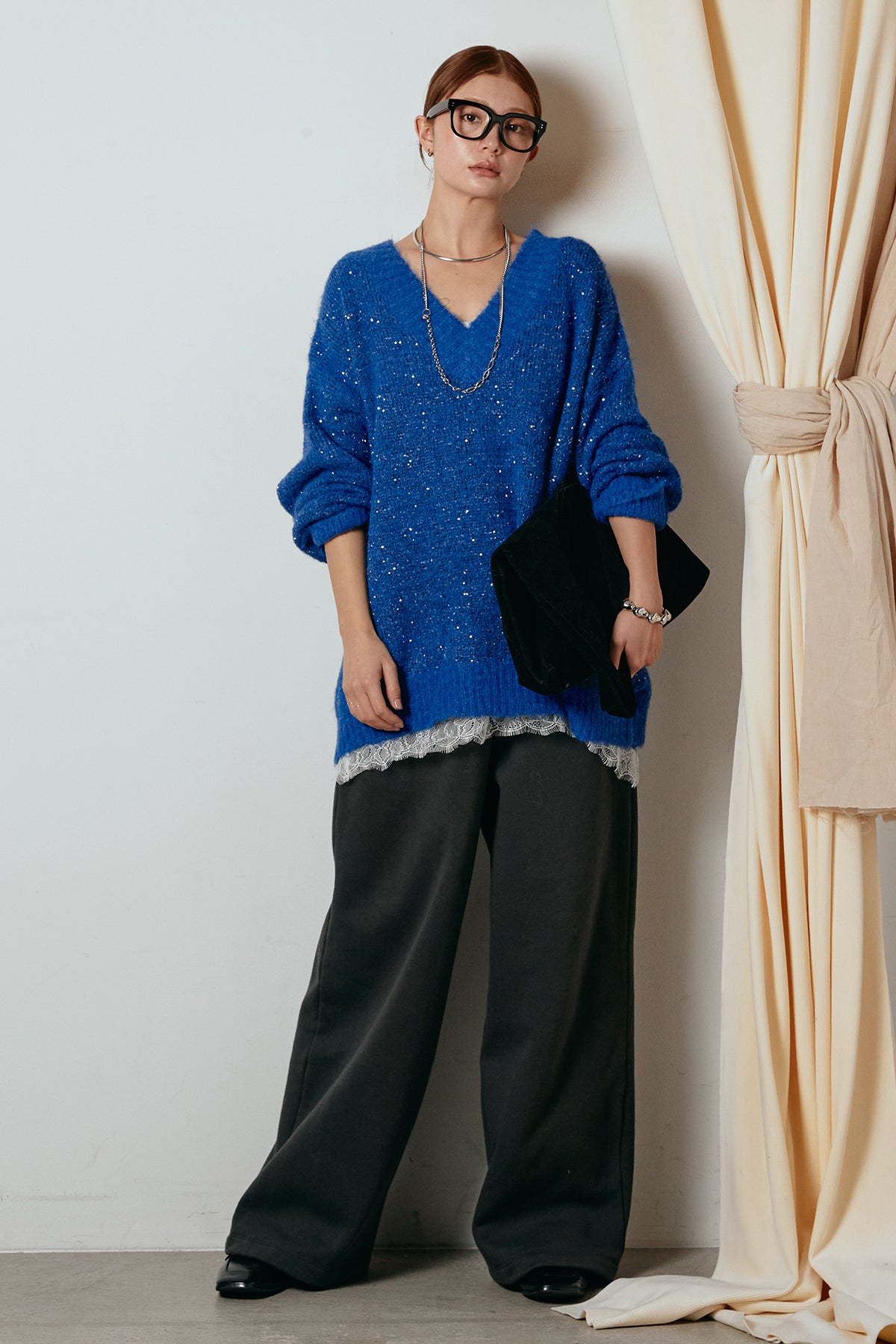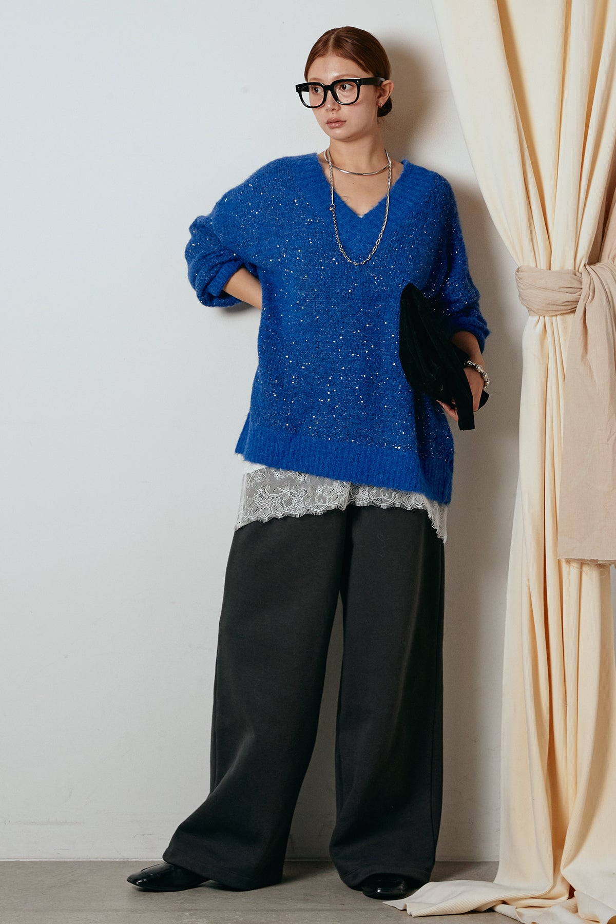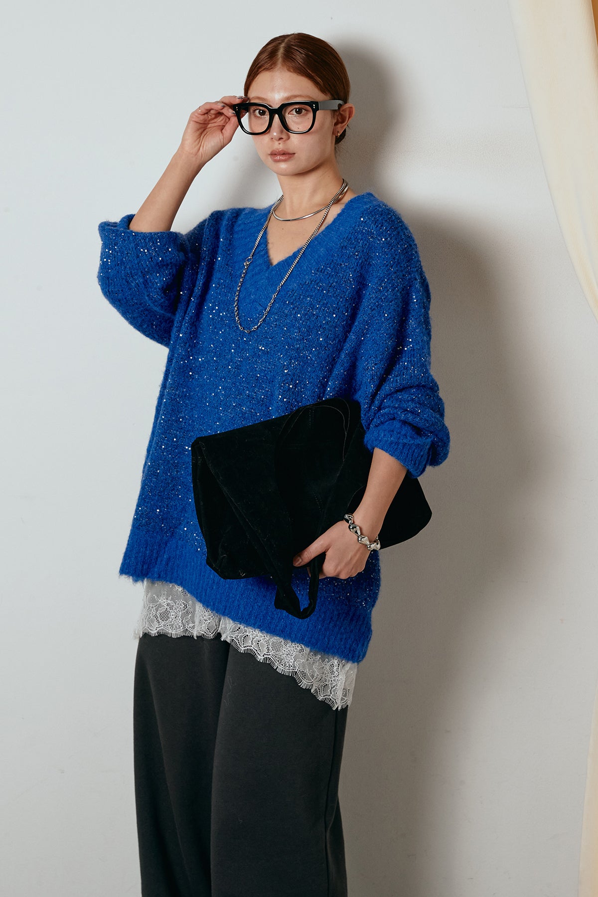 Vネックルーズラメニットトップスの他のセットページはこちら