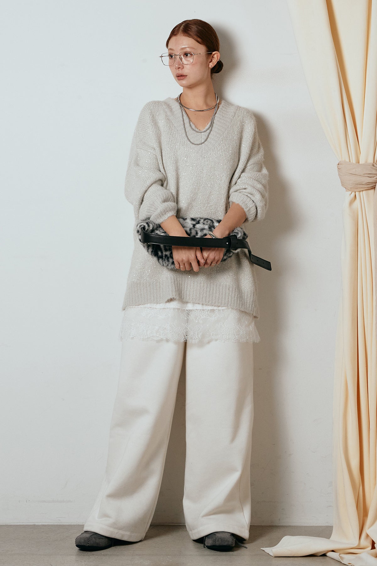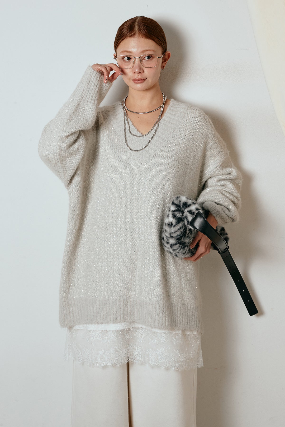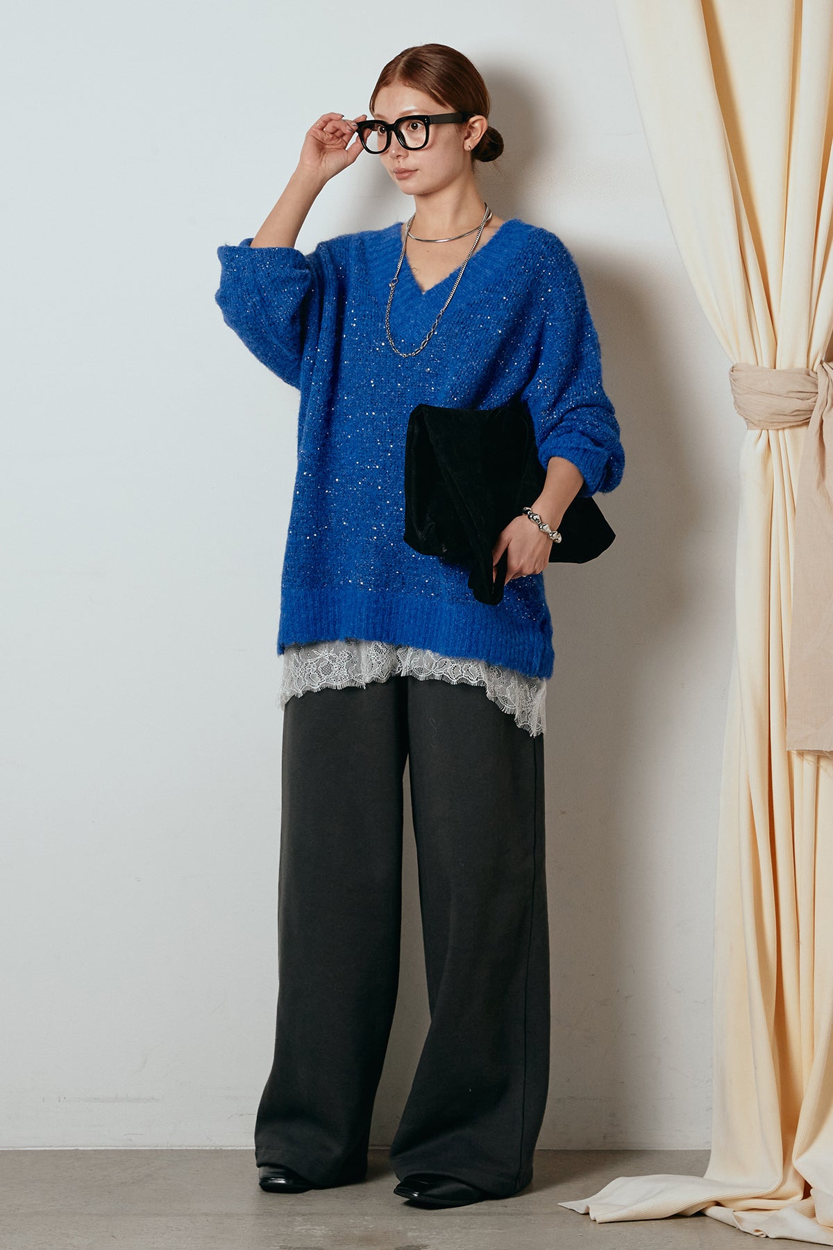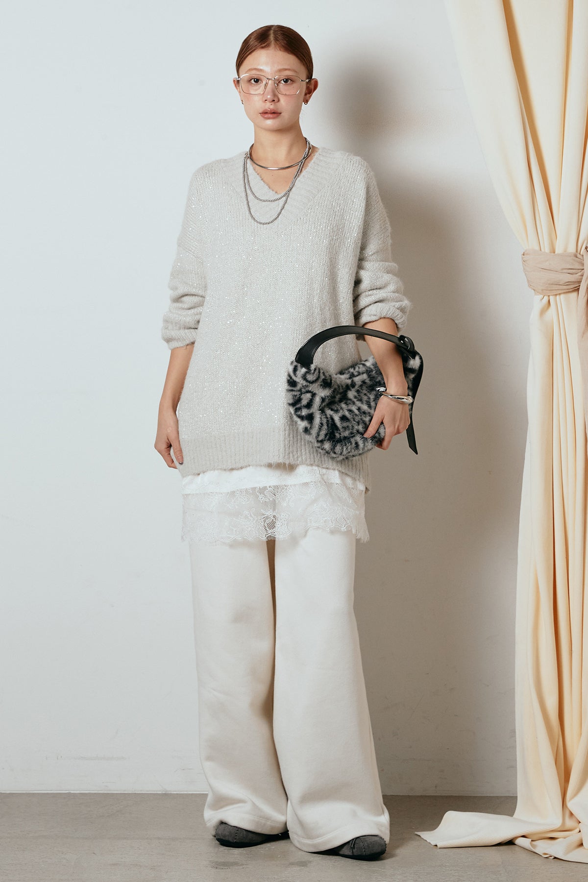Vネックルーズラメニットトップスの他のセットページはこちら