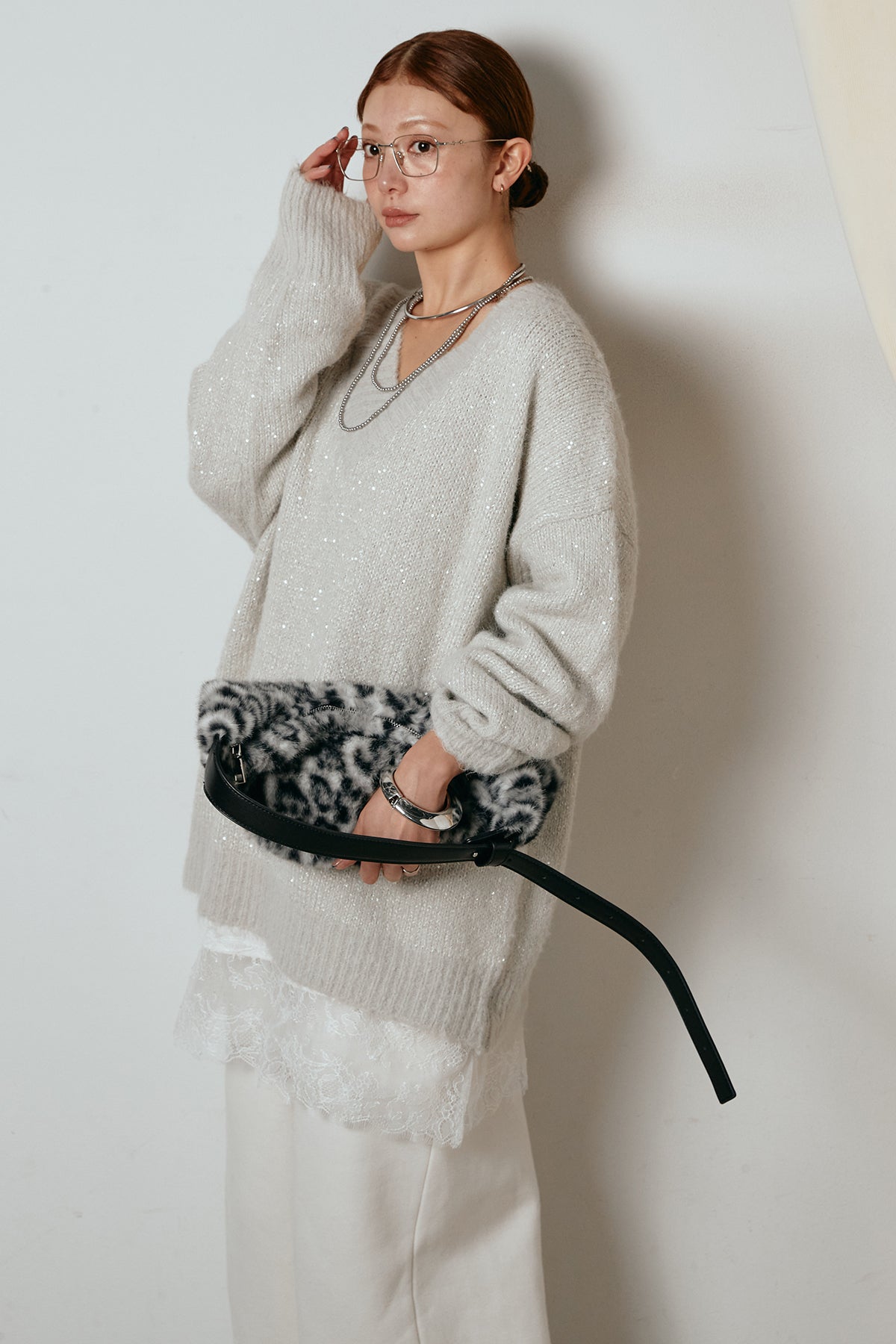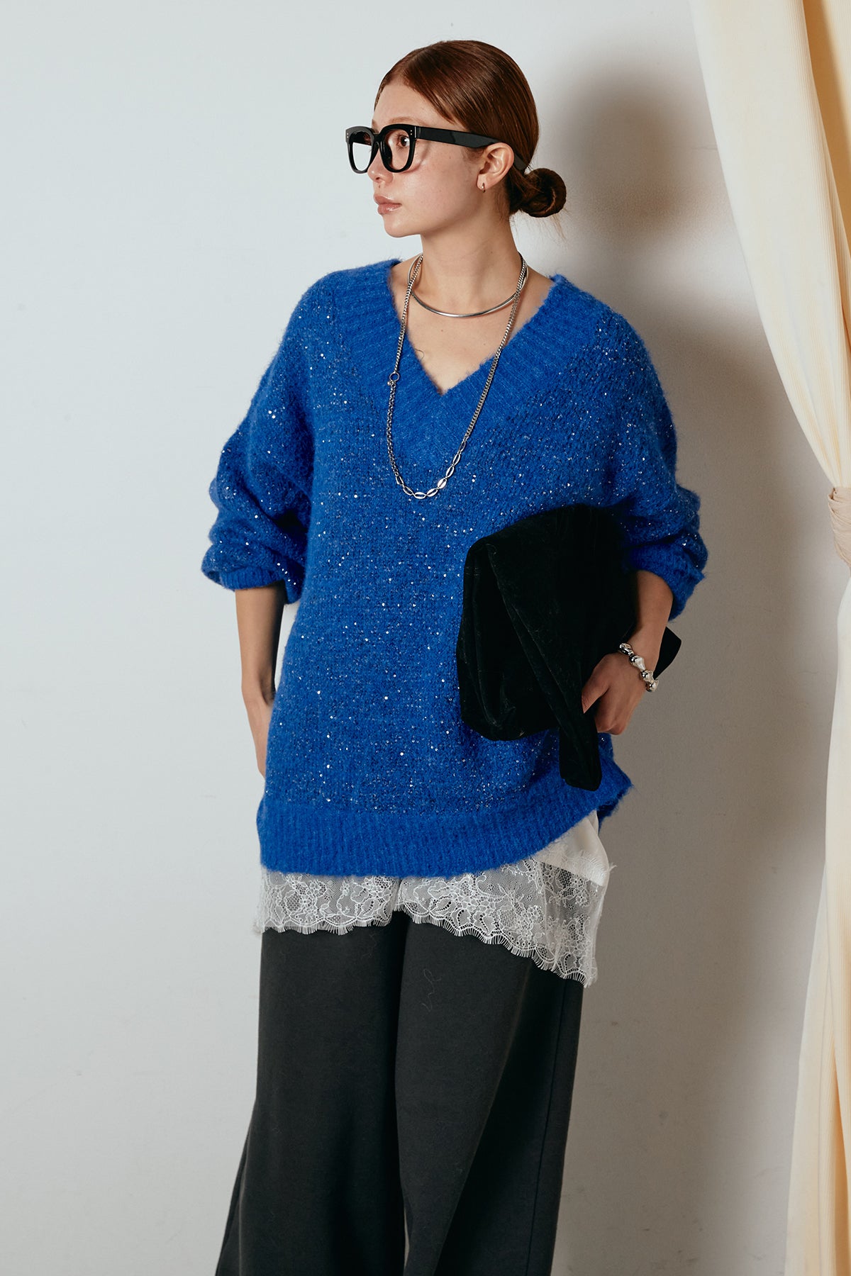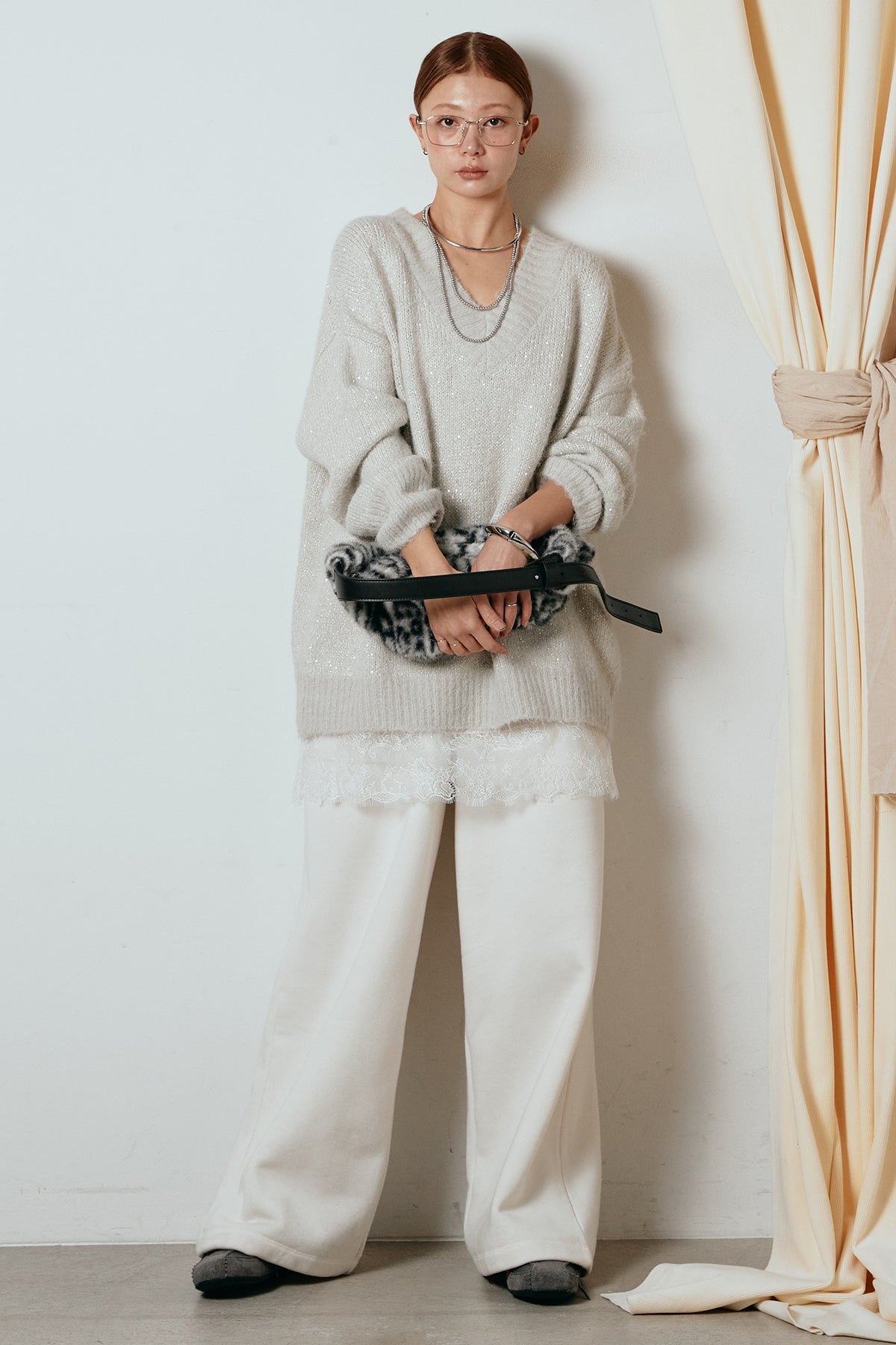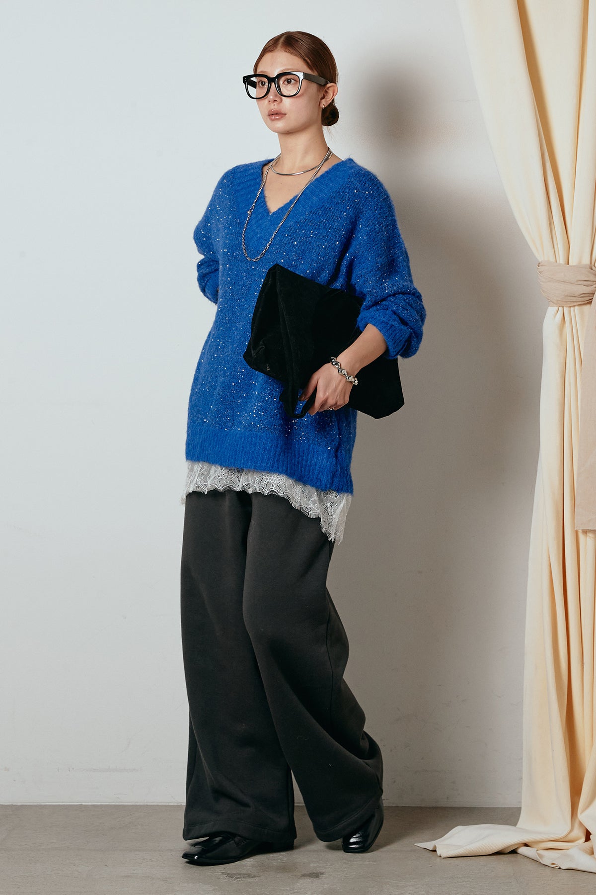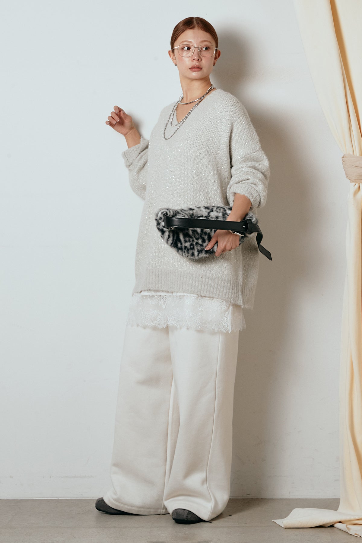 Vネックルーズラメニットトップスの他のセットページはこちら
