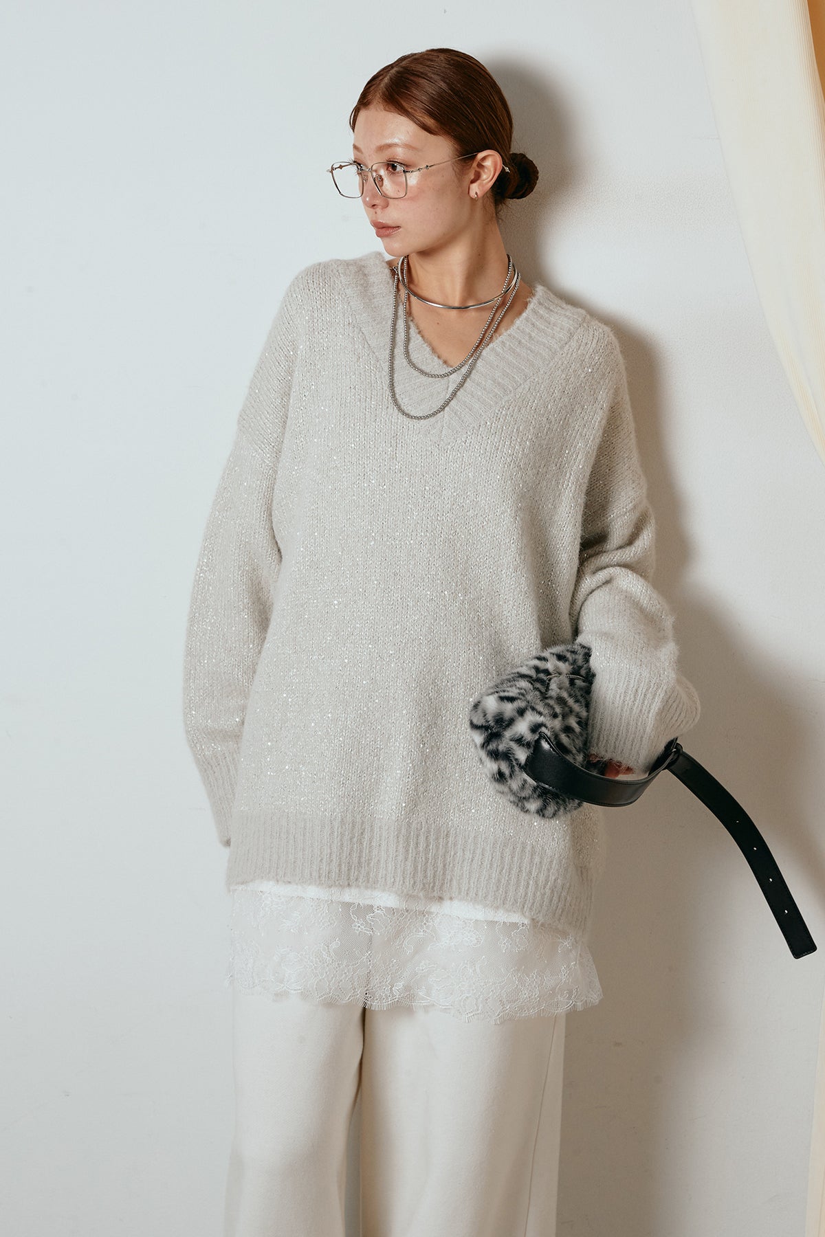 ◆ Vネックルーズラメニットトップス