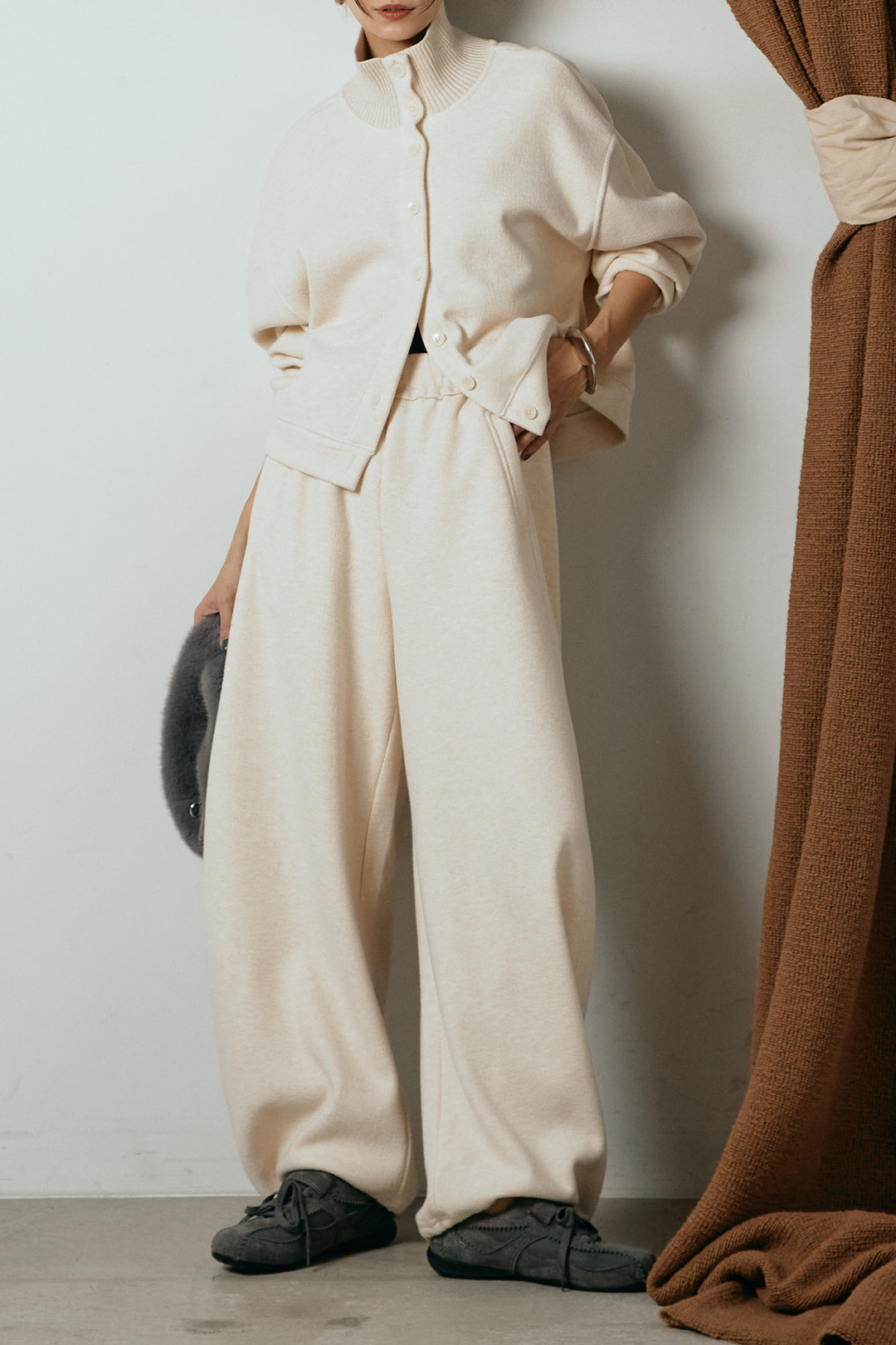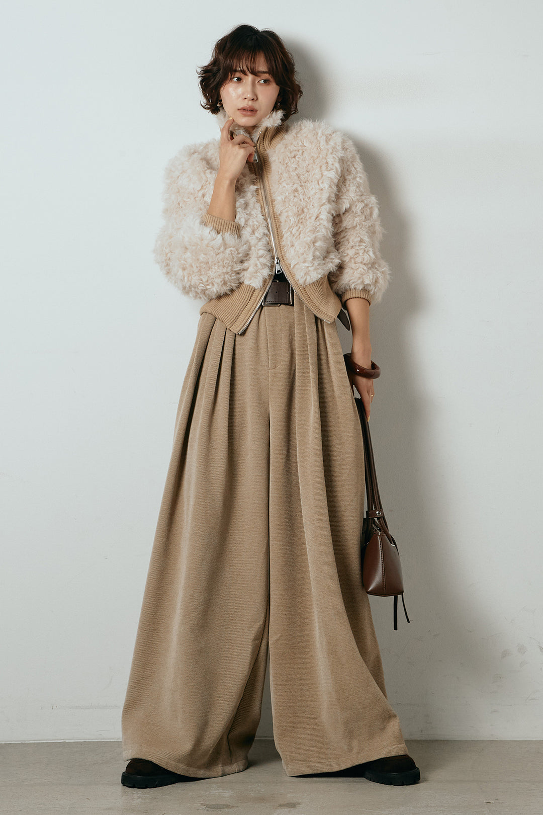 [SET]ハイネックショート丈ボアジップブルゾン+ベルトループコーデュロイワイドパンツ(2set)