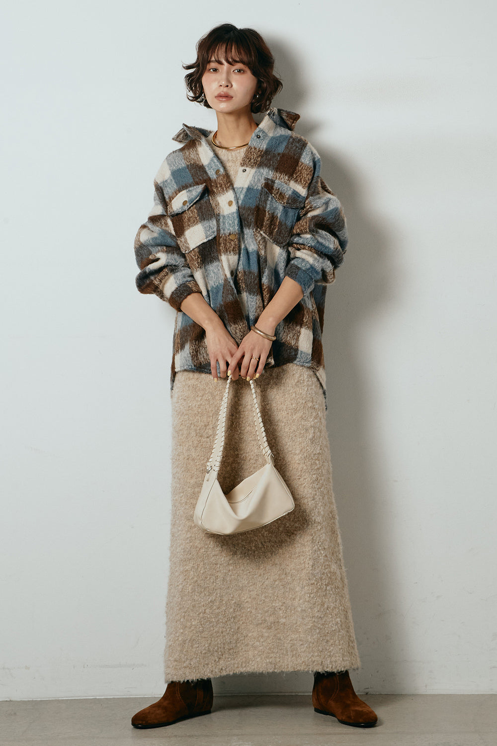 [SET]起毛チェック柄ポケットアウター+ストレッチエコレザーバミューダパンツ(2set)