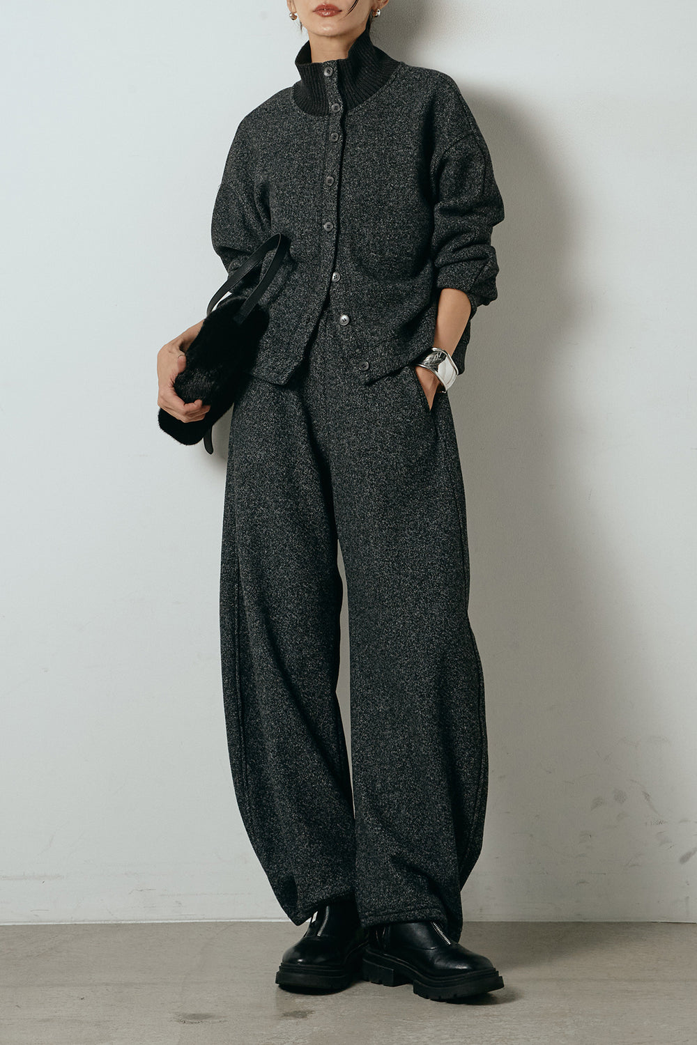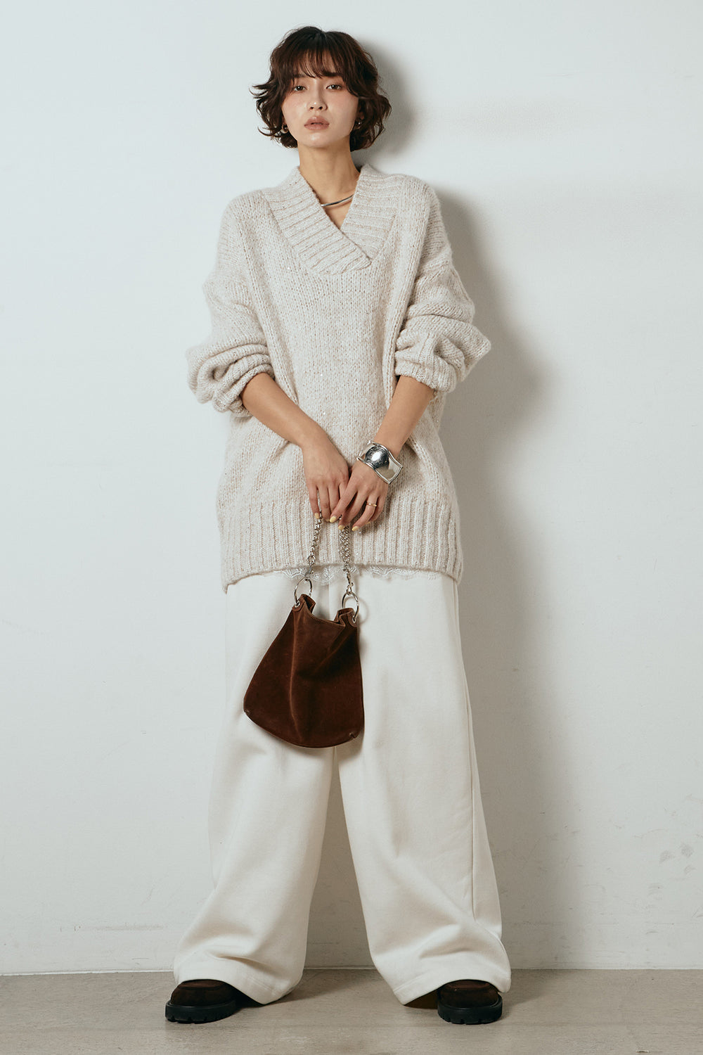 [SET]Vネックラメニットトップス+裏起毛スウェットワイドパンツ(2set)