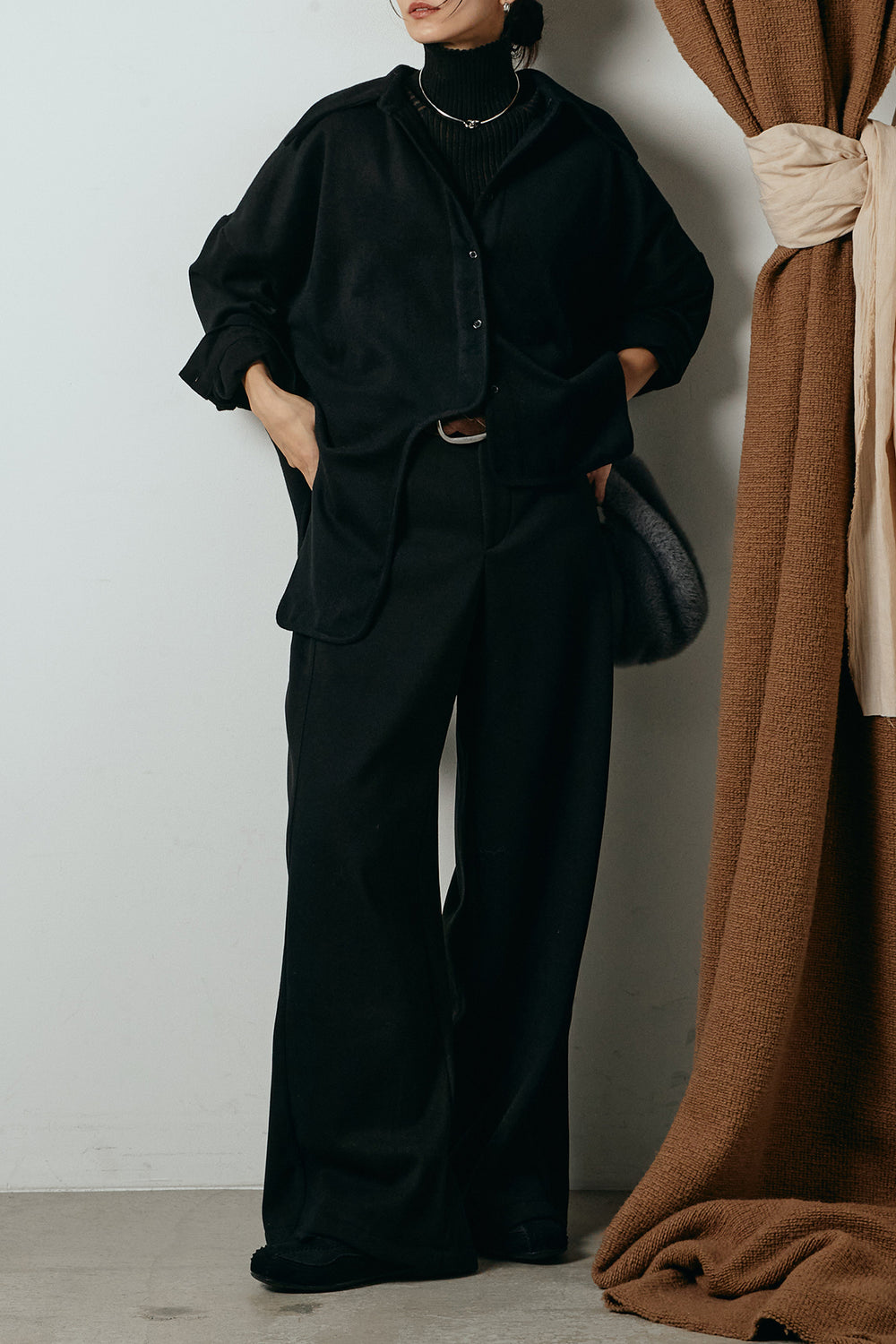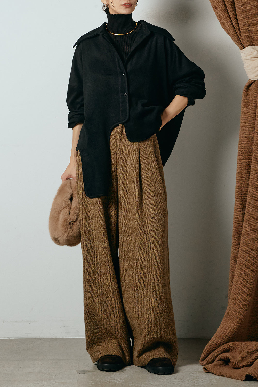[SET]裾アシンメトリーデザインシャツ+タックツイードワイドパンツ+リブニットシームレスタートルプルオーバー(3set)