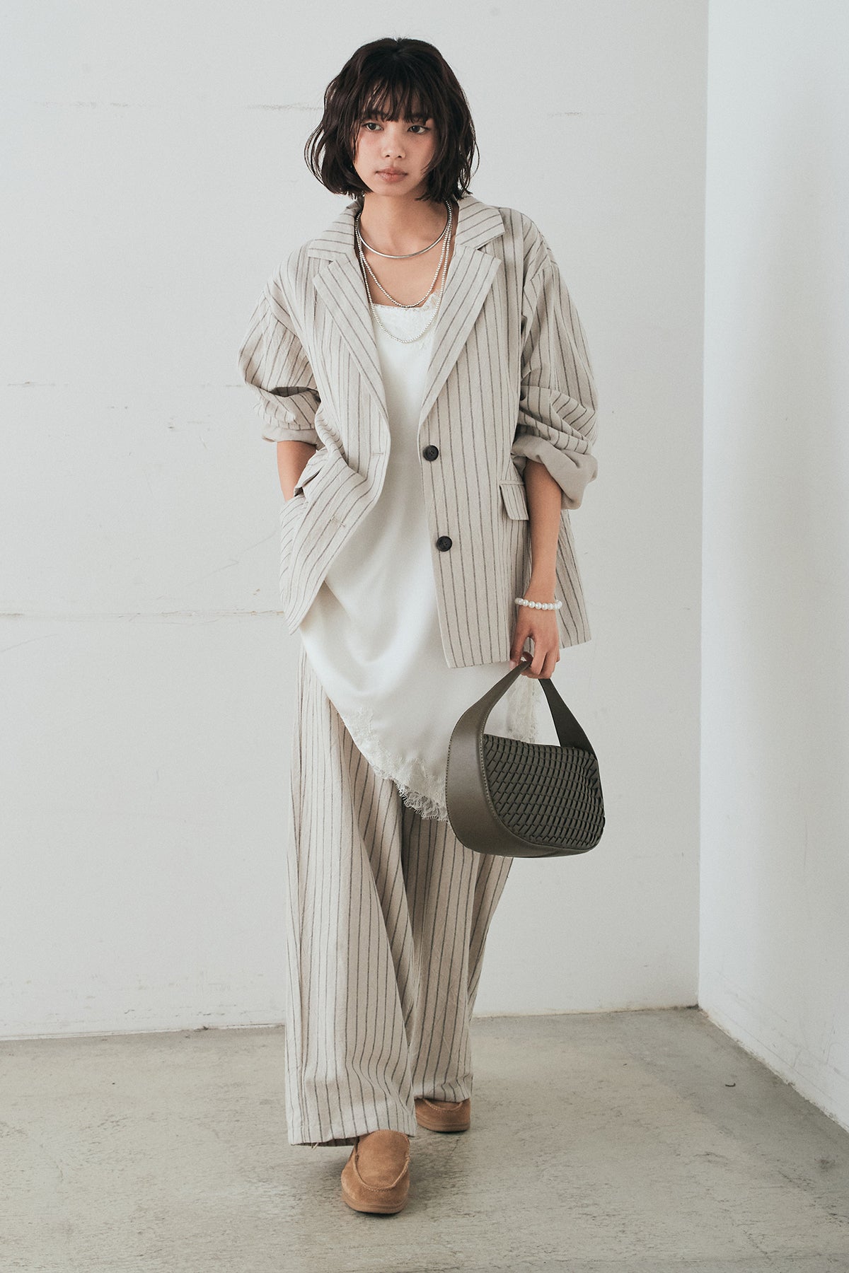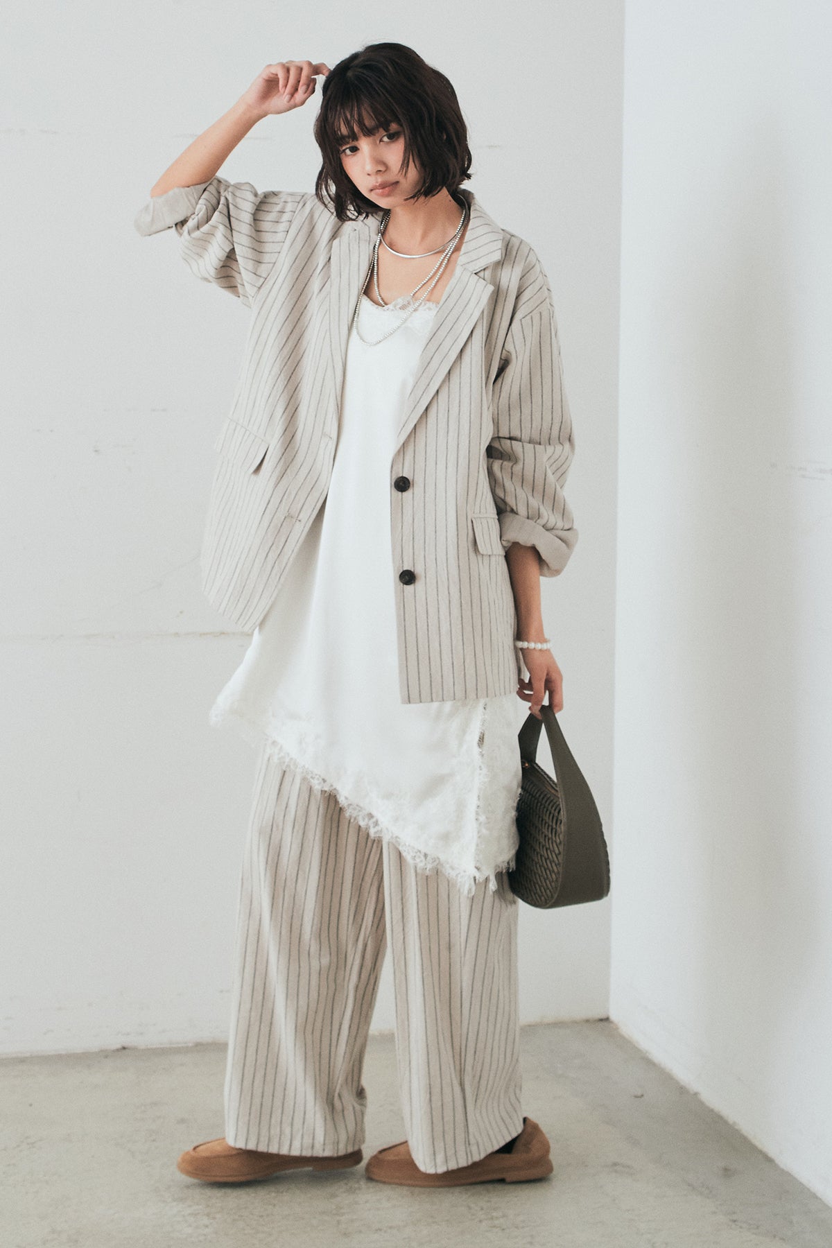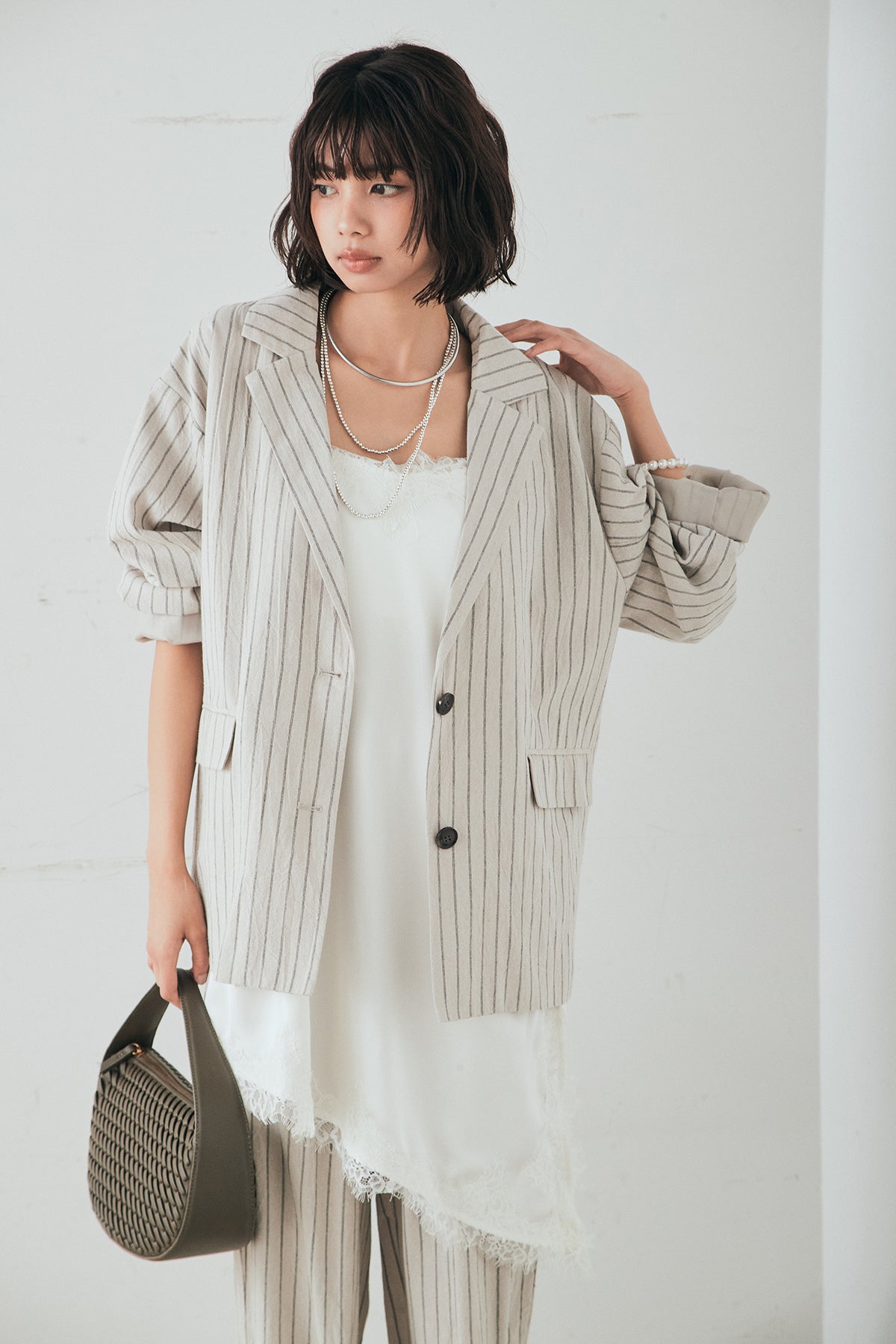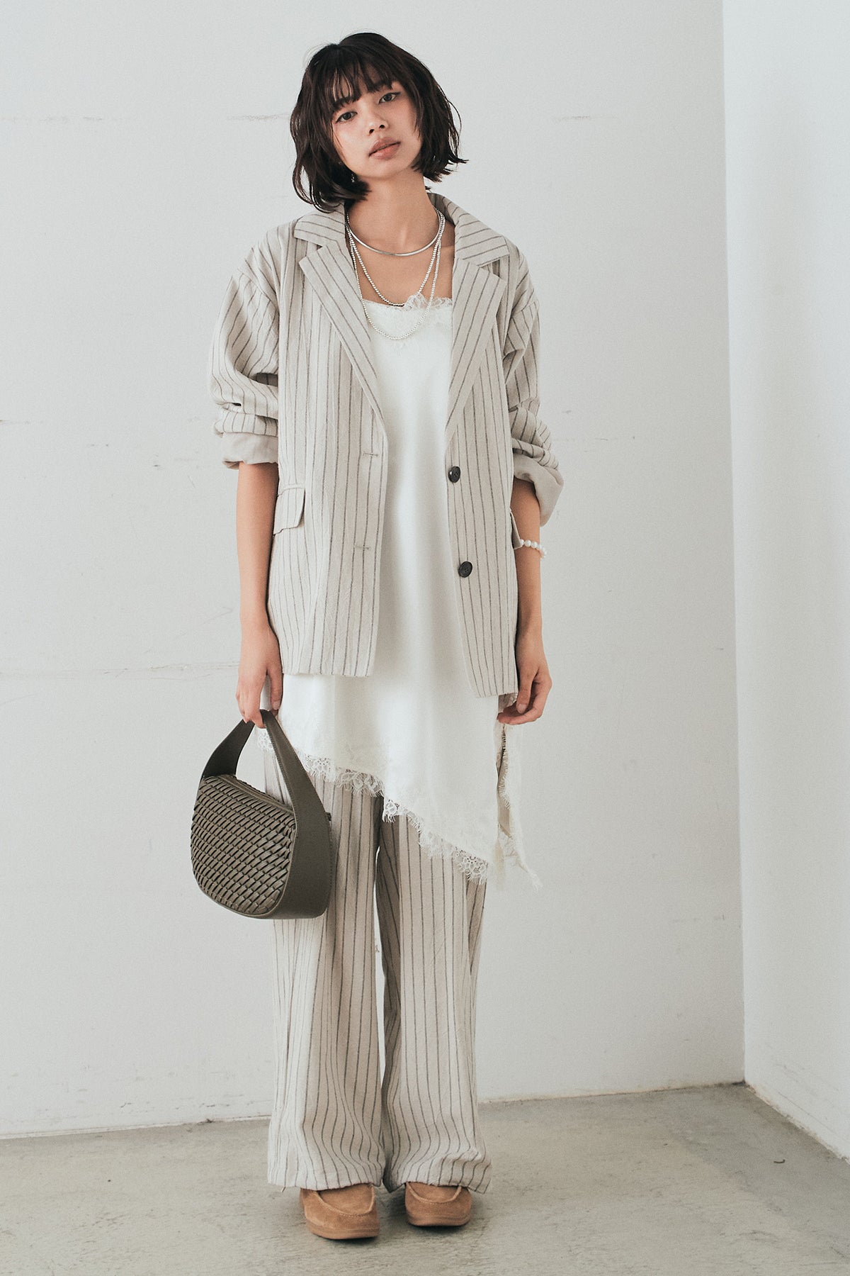 リネンライクストライプテーラードジャケットの他のセットページはこちら