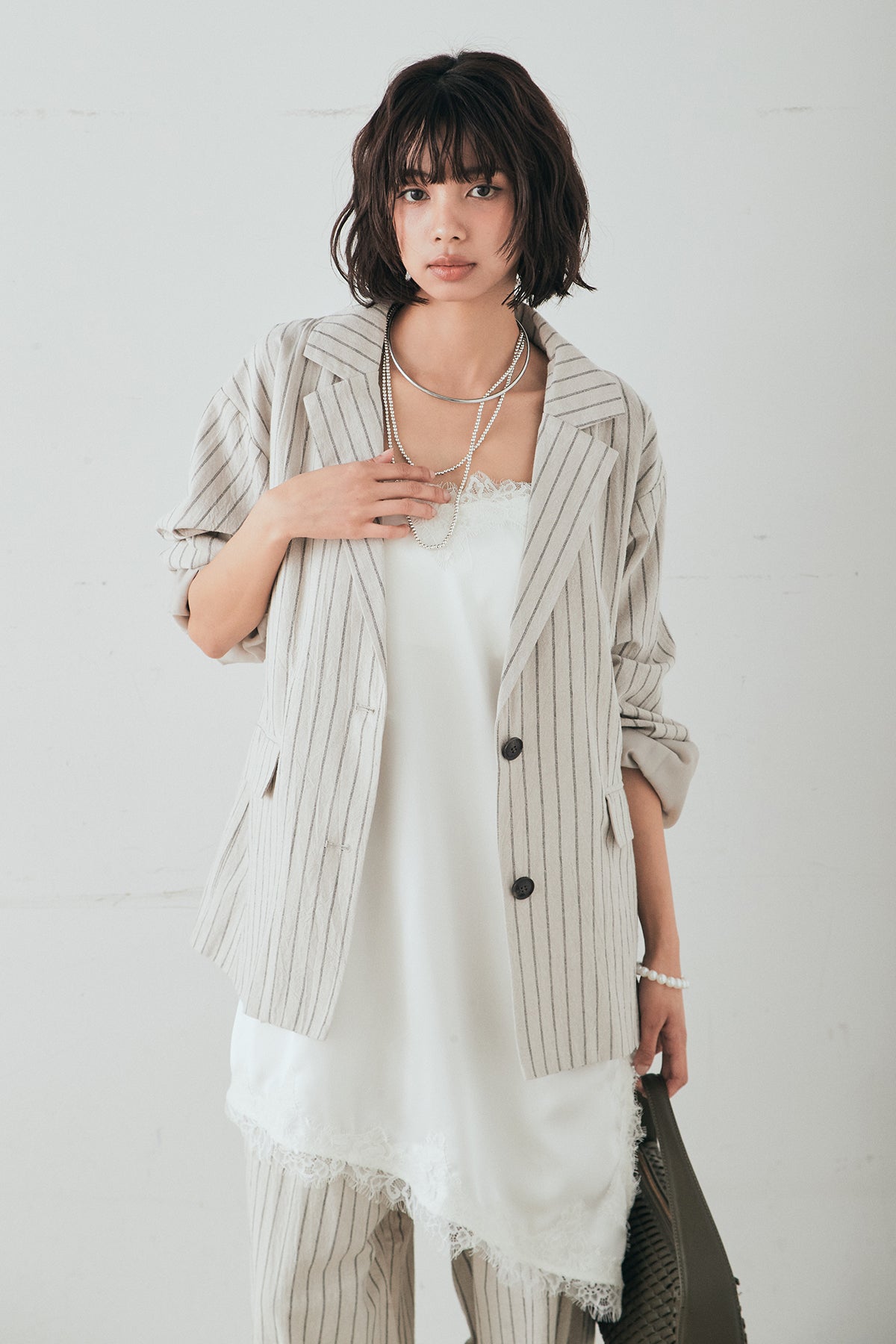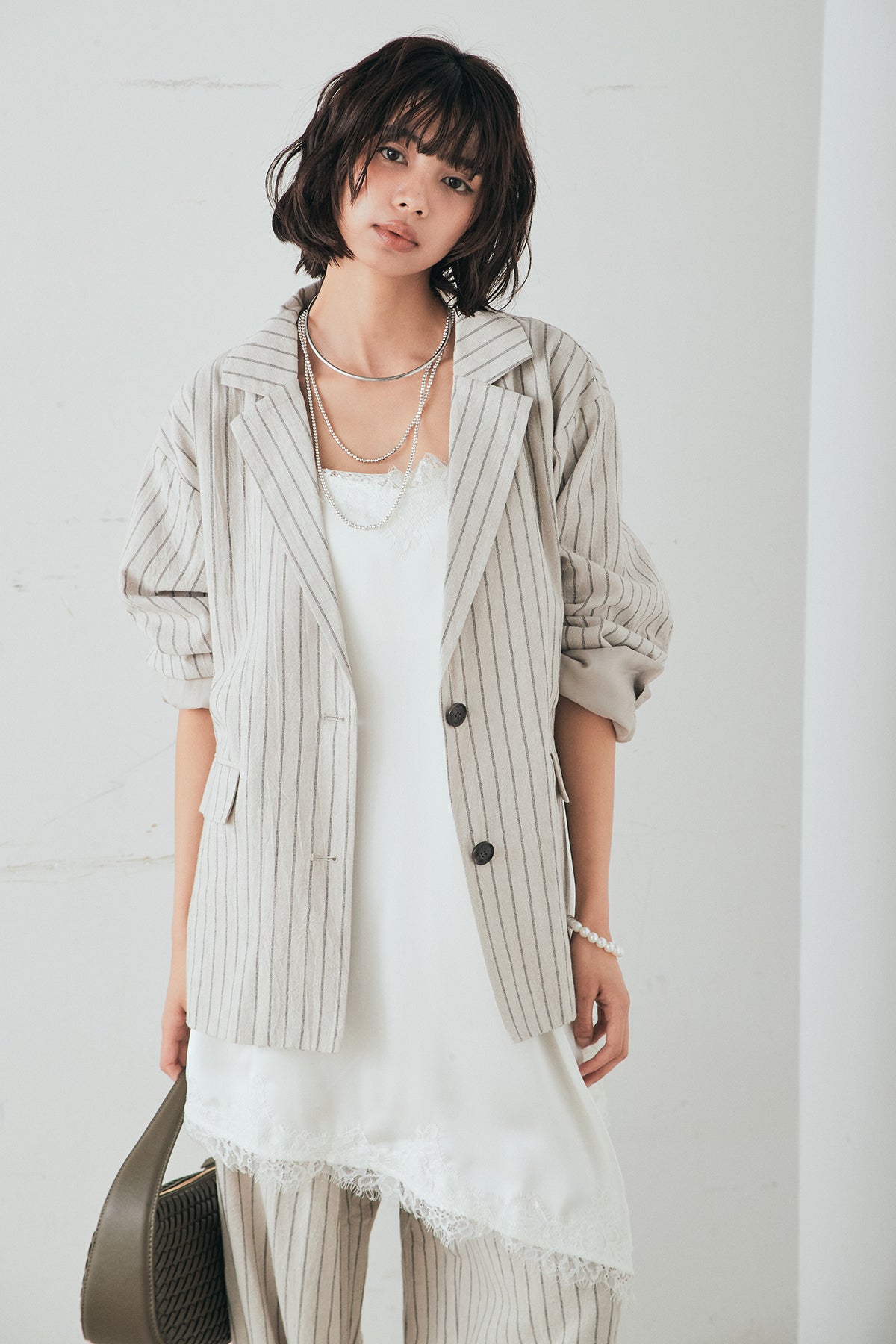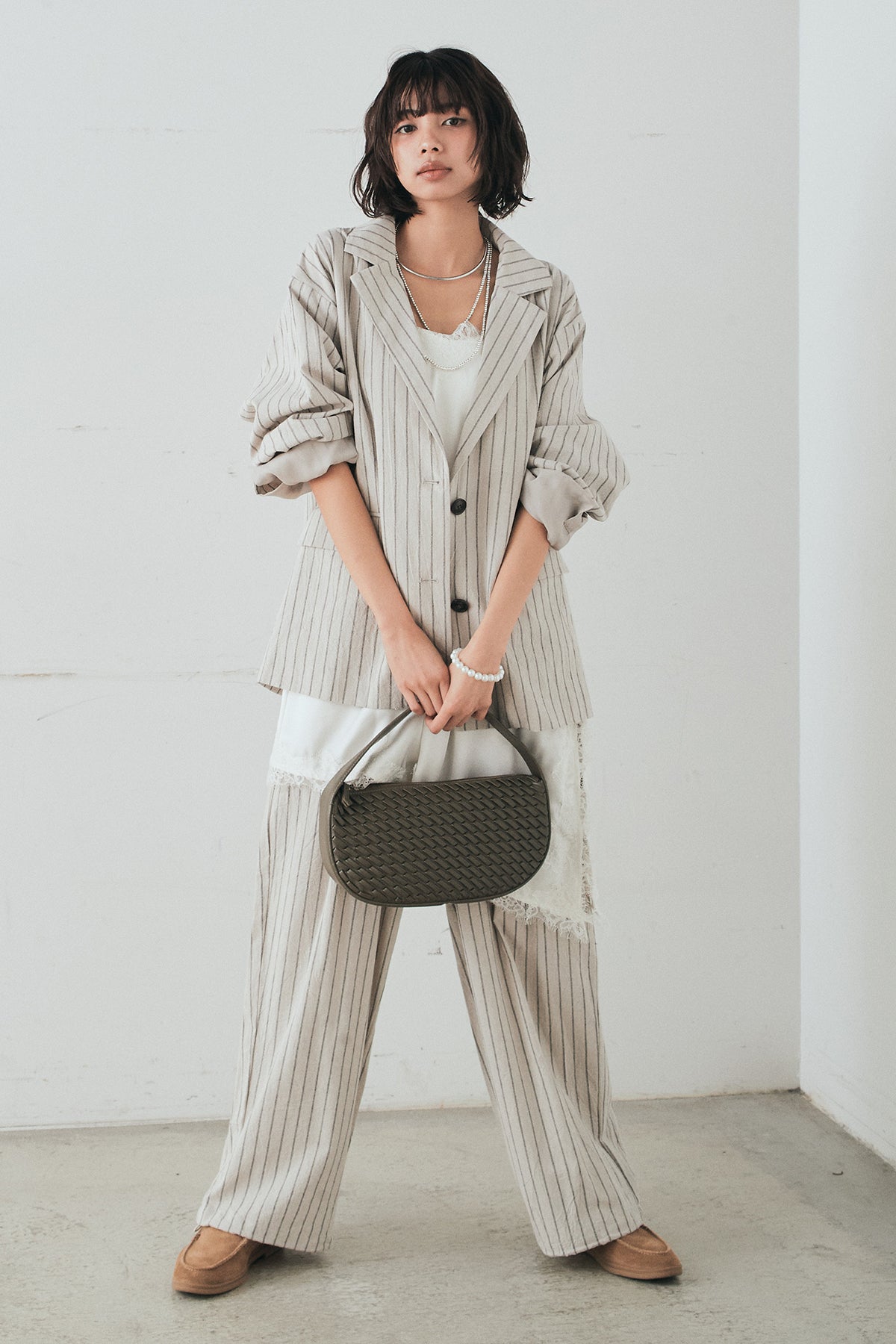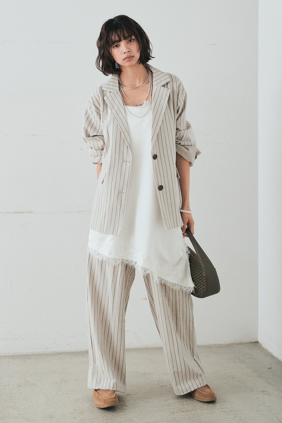リネンライクストライプテーラードジャケットの他のセットページはこちら