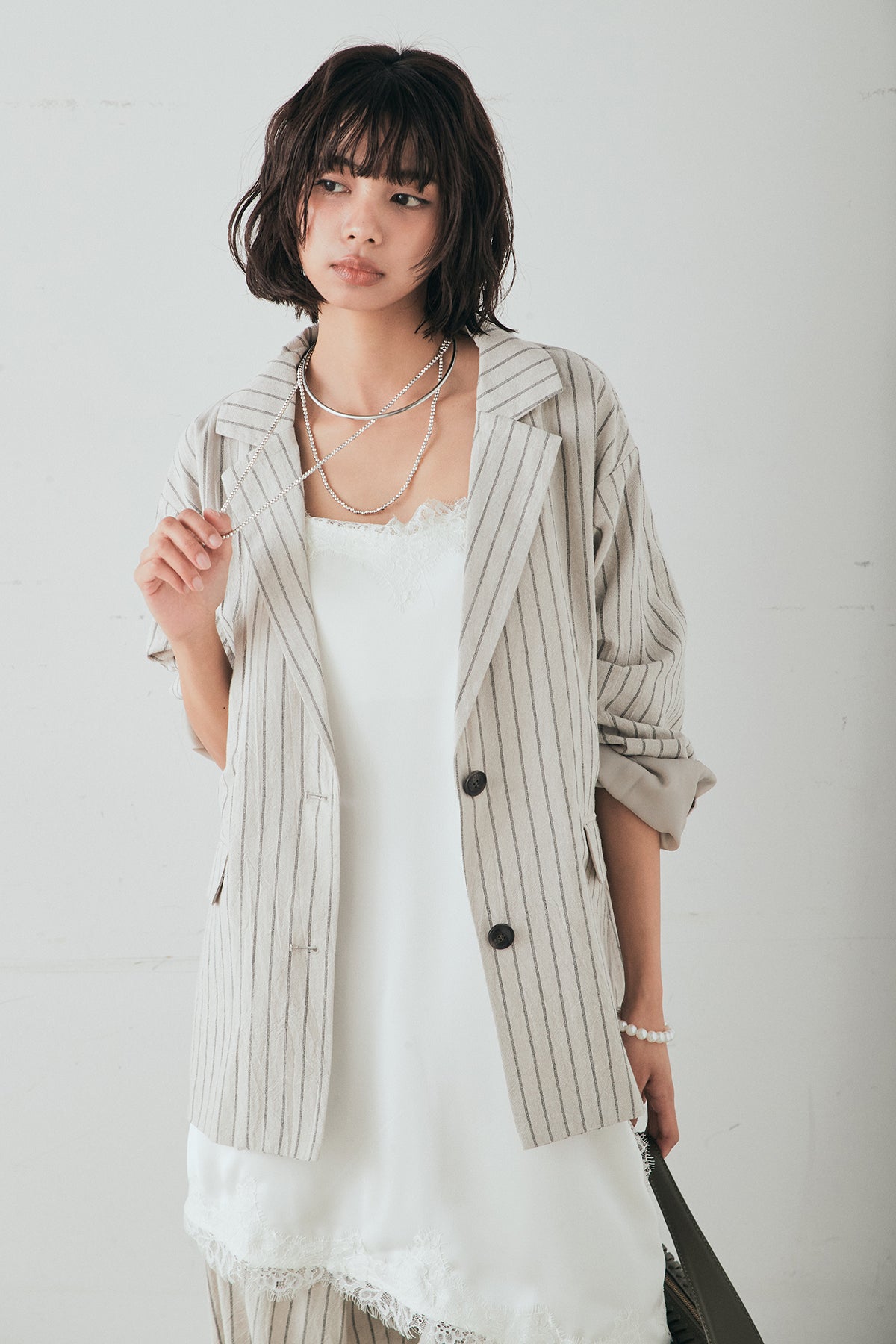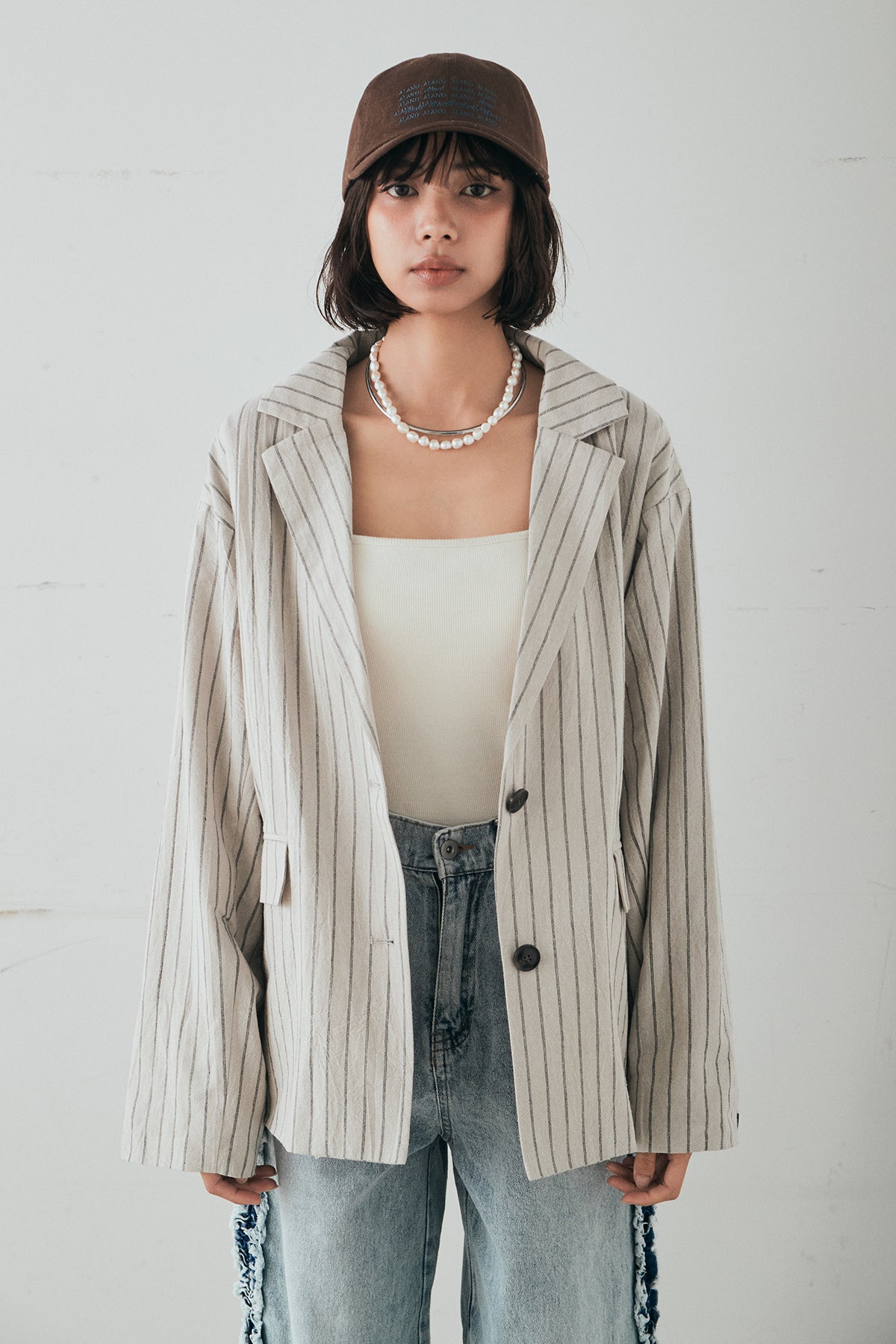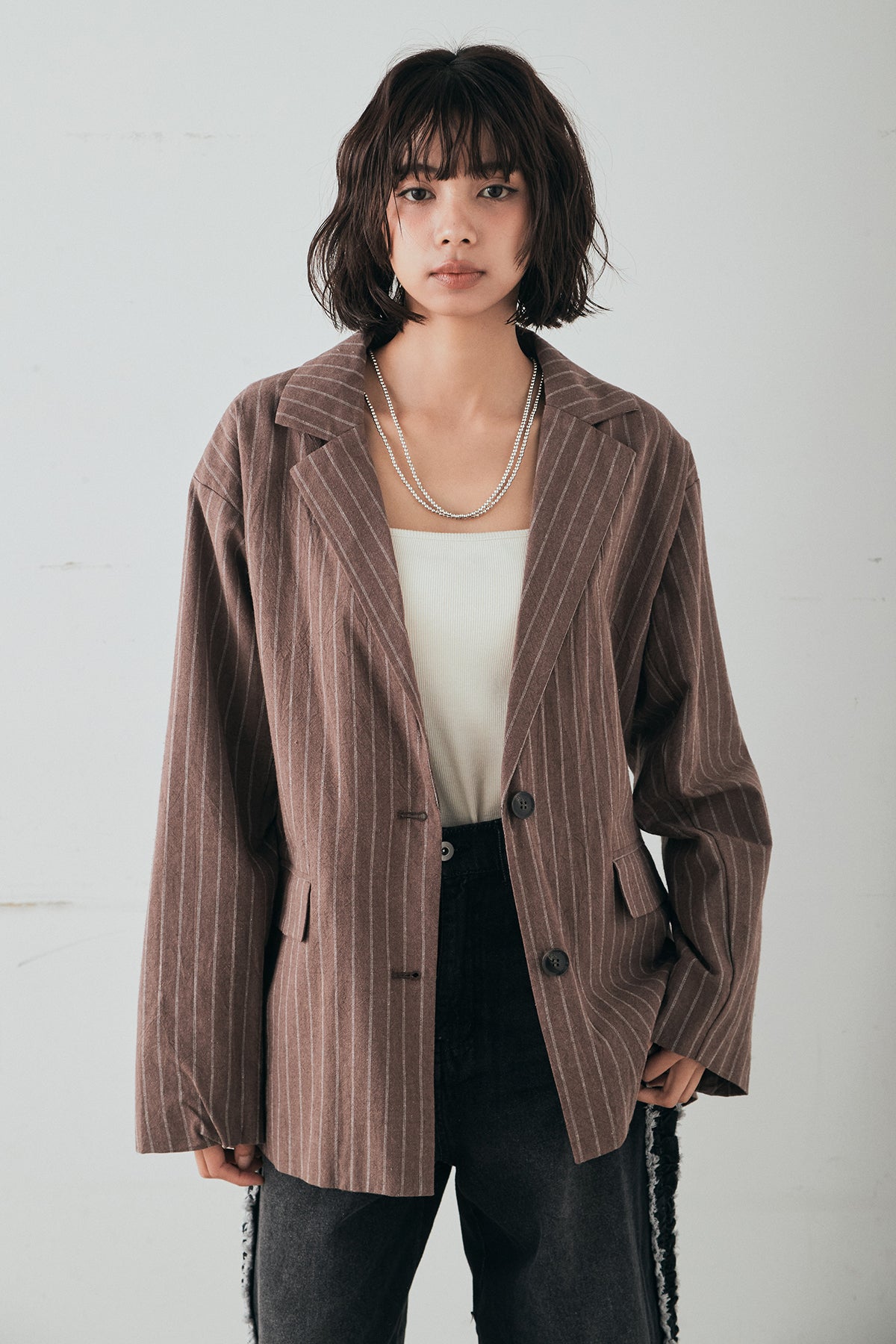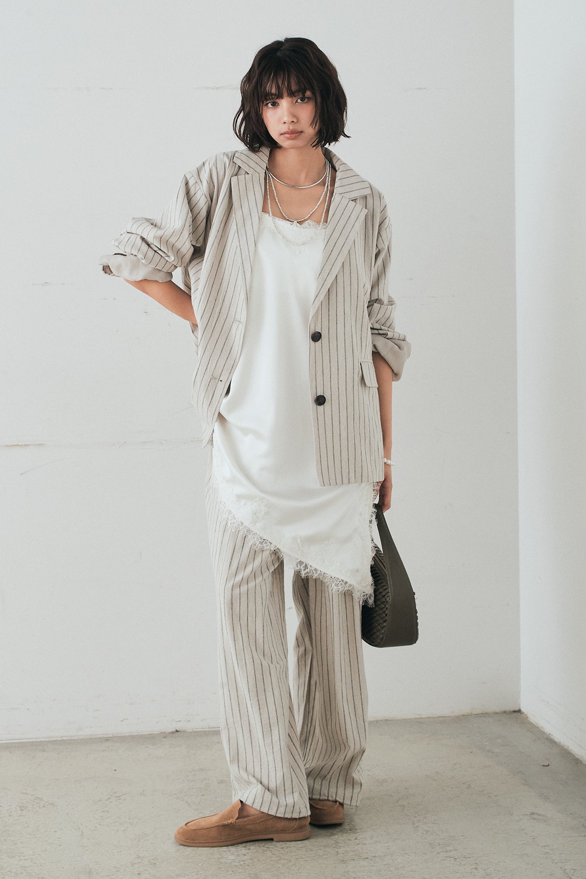 リネンライクストライプテーラードジャケットの他のセットページはこちら