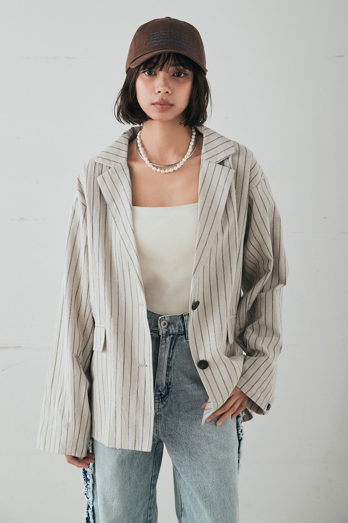 リネンライクストライプテーラードジャケット